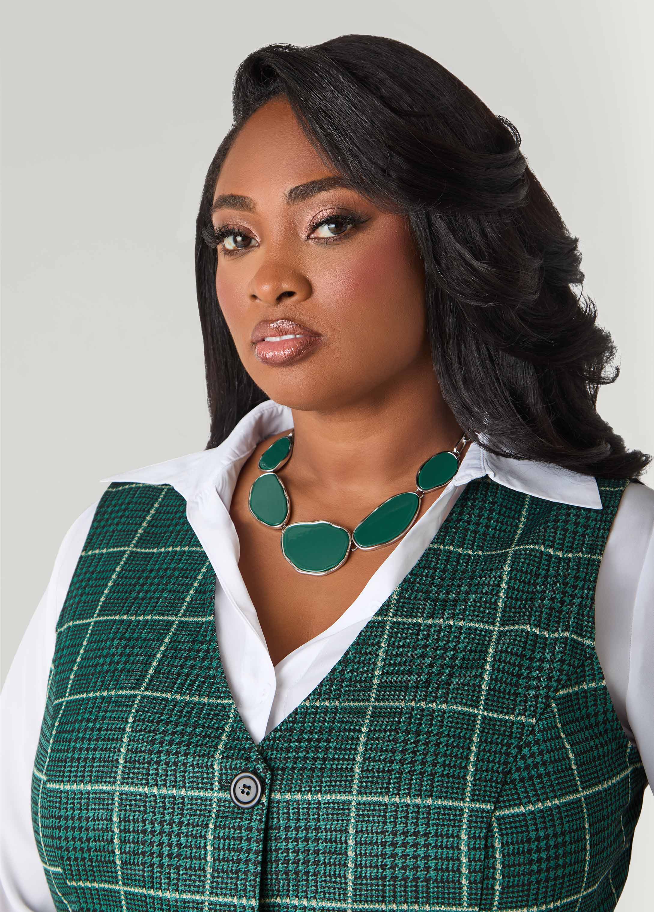 Refresh your accessories with this necklace featuring green pendants set in hammered silver metal paired with matching drop earrings for a pop of color and texture.