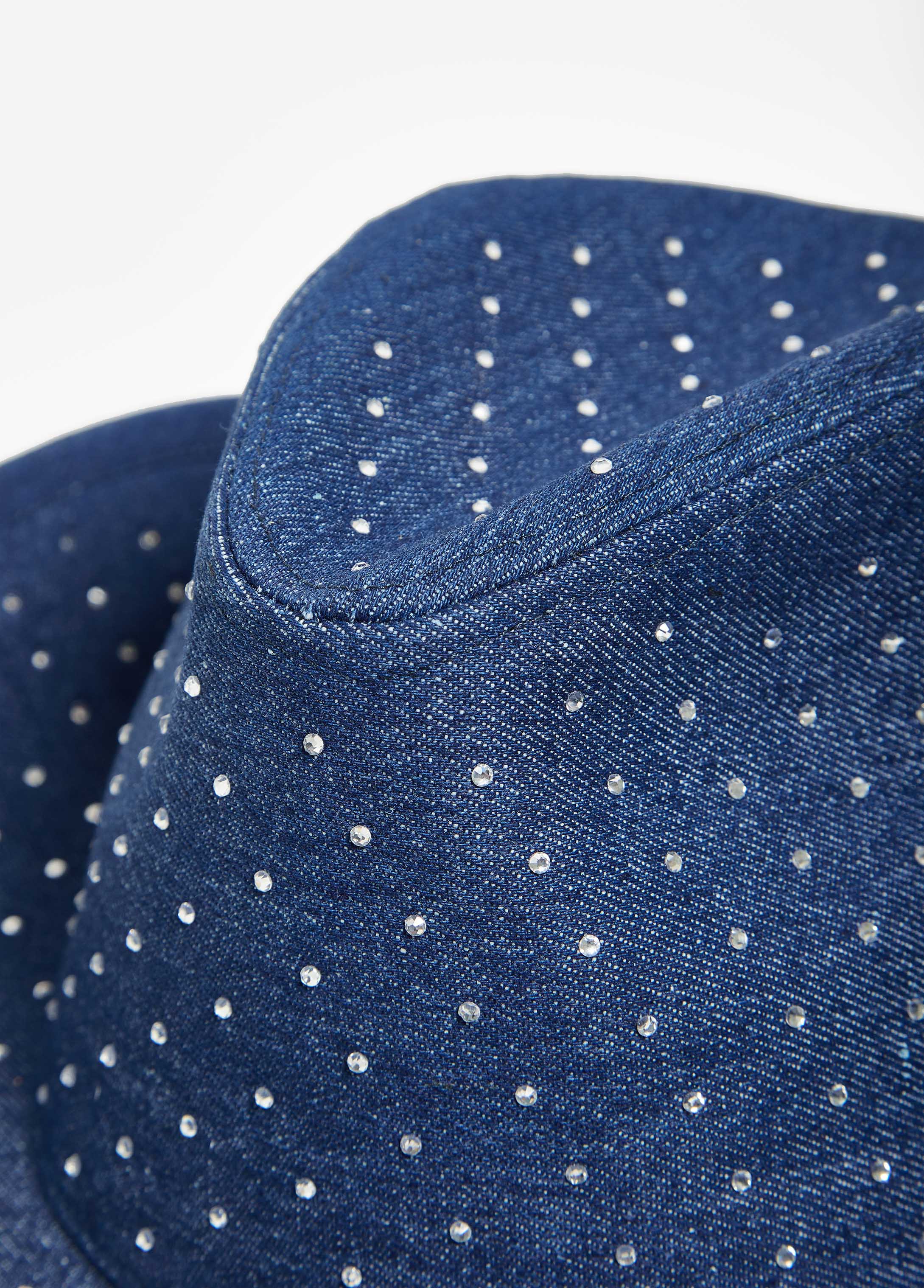 Saddle up in style with this denim cowboy hat, where rugged meets radiant. Adorned with shimmering crystals, it’s the ultimate blend of western charm and modern glam. Whether you’re at a festival or out on the town, this standout piece adds a dazzling twist to your look.