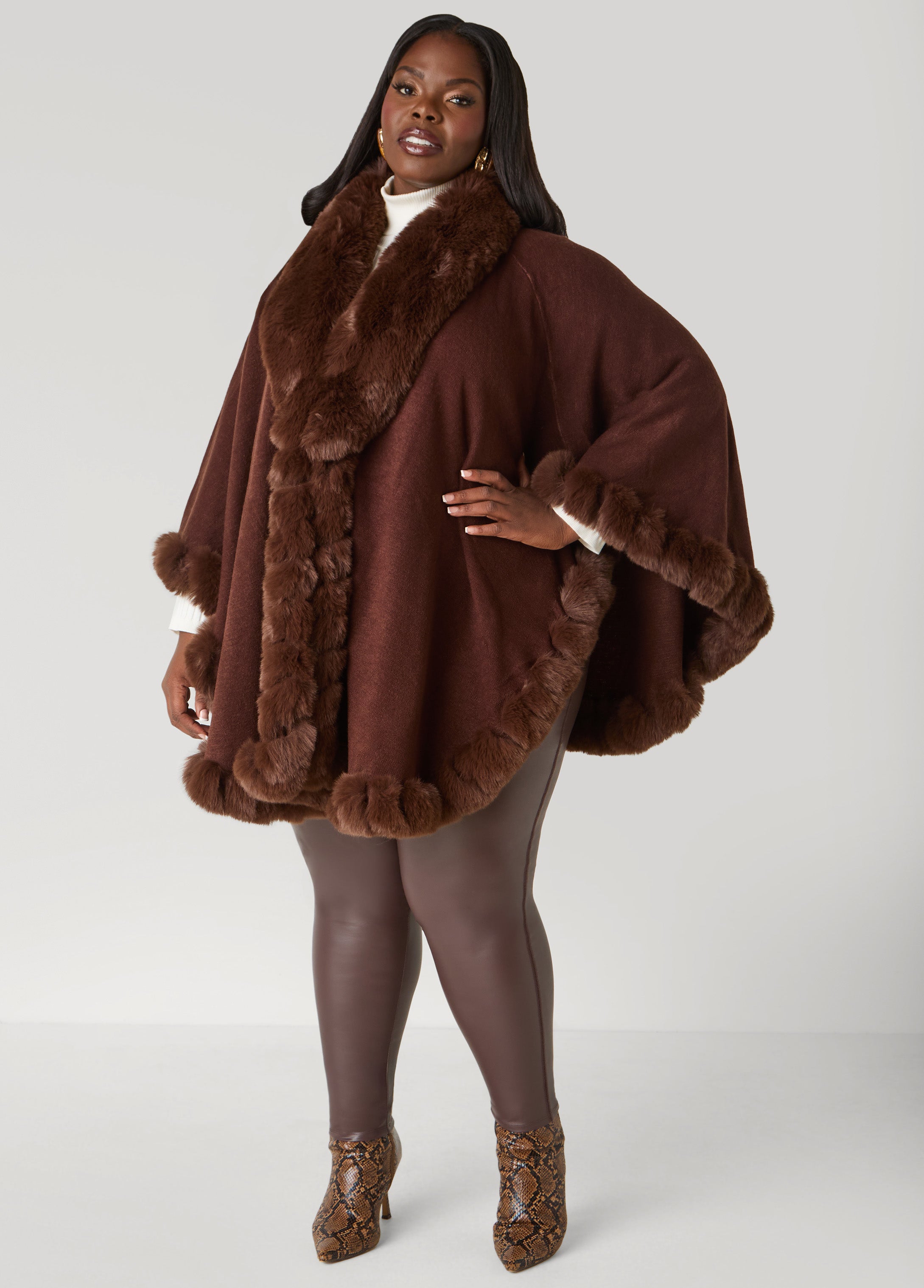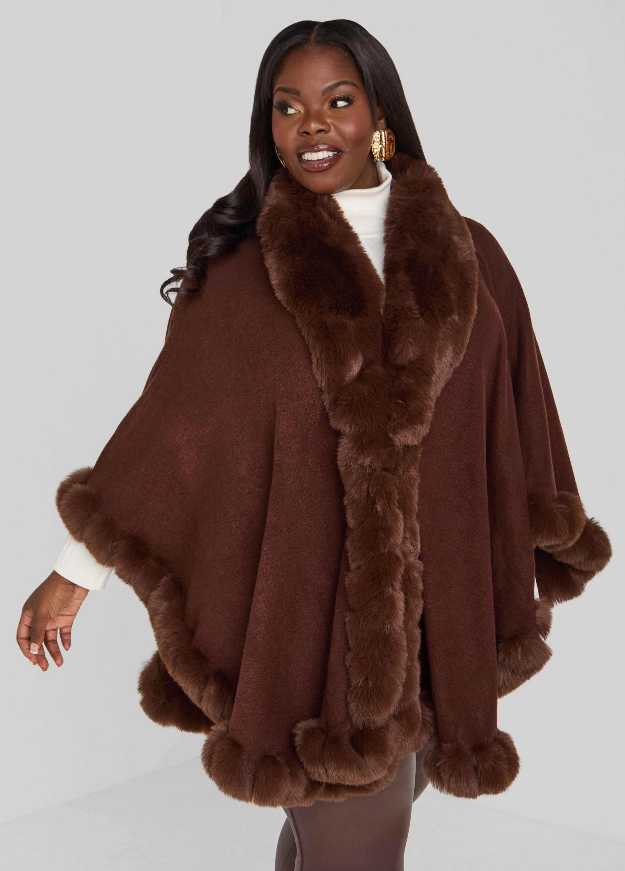 Wrap yourself in indulgent style with the Max Studio knitted ruana. Accented with plush faux fur trims, this piece exudes warmth and elegance. Perfect for layering, it’s a luxurious addition to any cold-weather wardrobe.