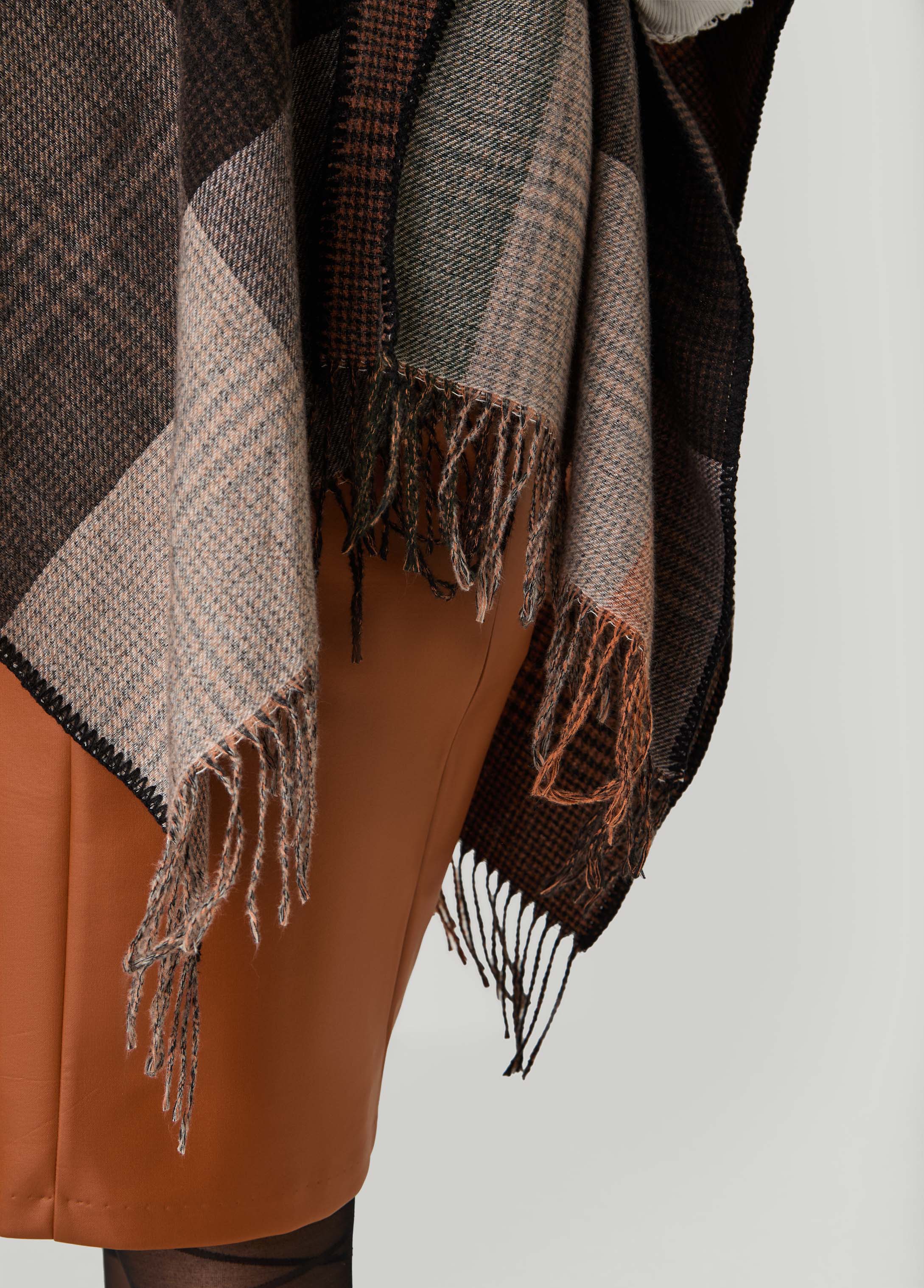 Double the style, double the impact with our reversible plaid brushed knit kimono. This versatile piece features a chic plaid pattern on both sides, offering two distinct looks in one. Crafted from soft, brushed knit fabric, it drapes effortlessly over any outfit, adding a touch of sophistication and warmth.