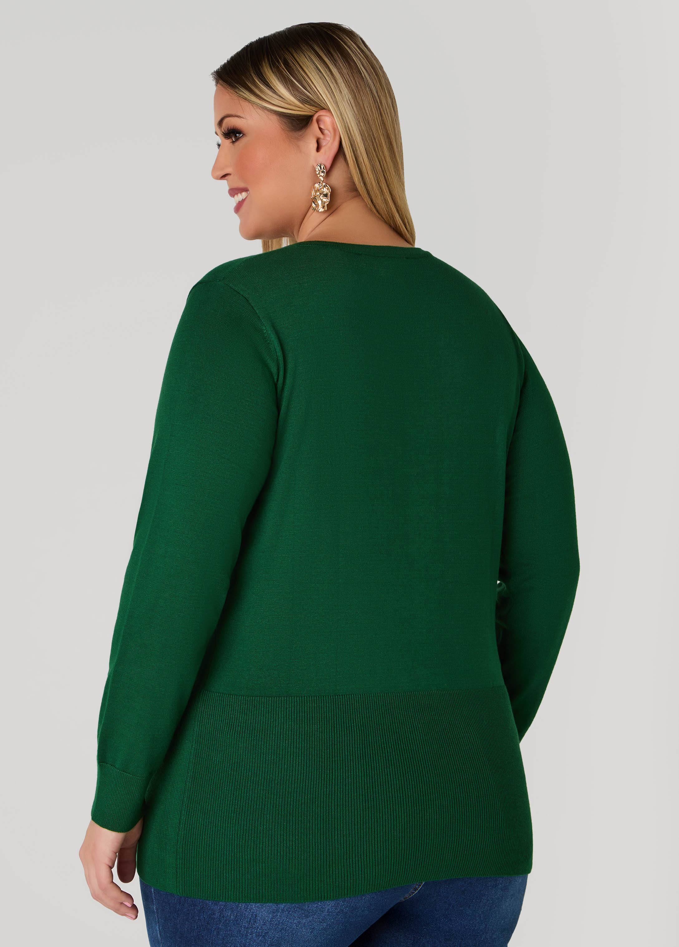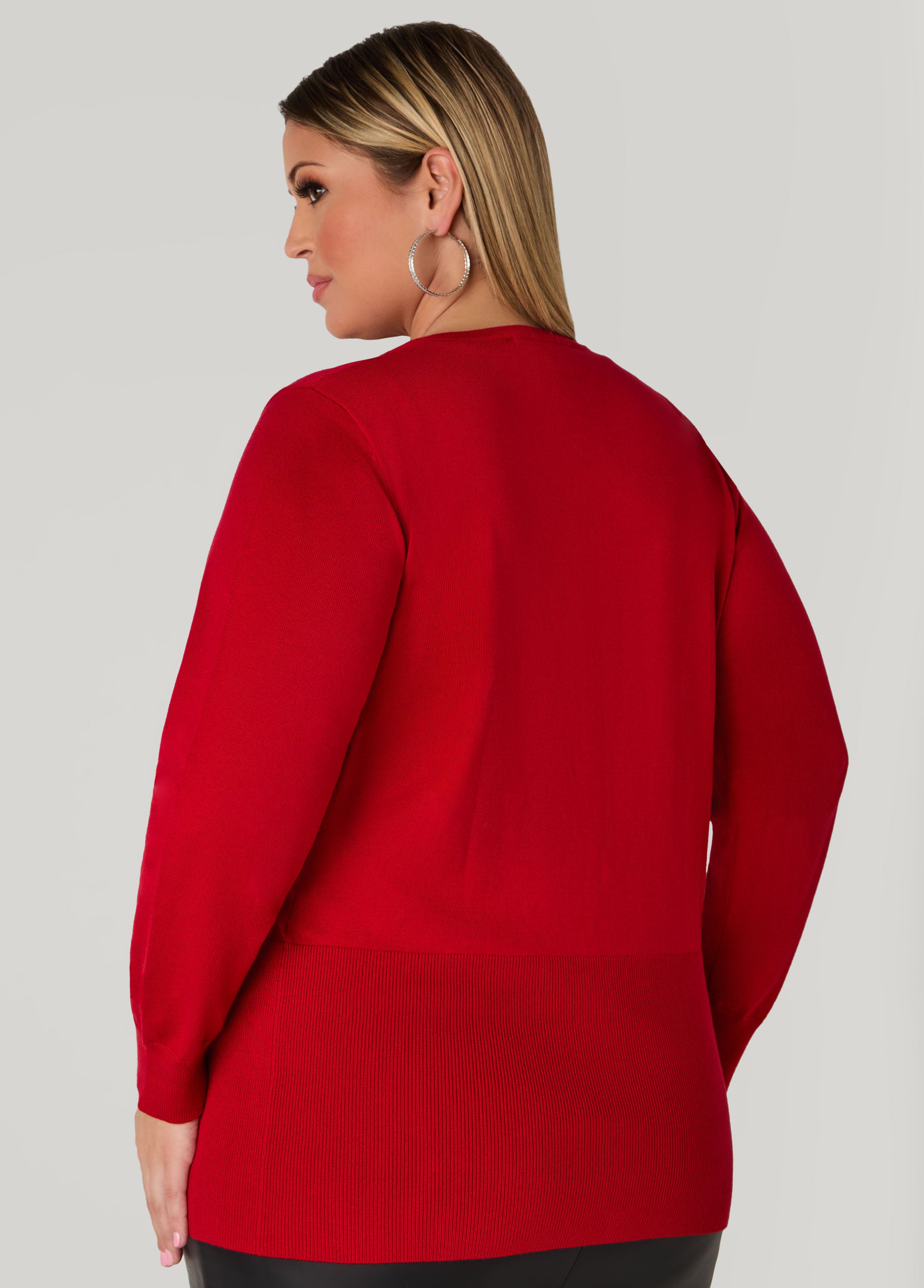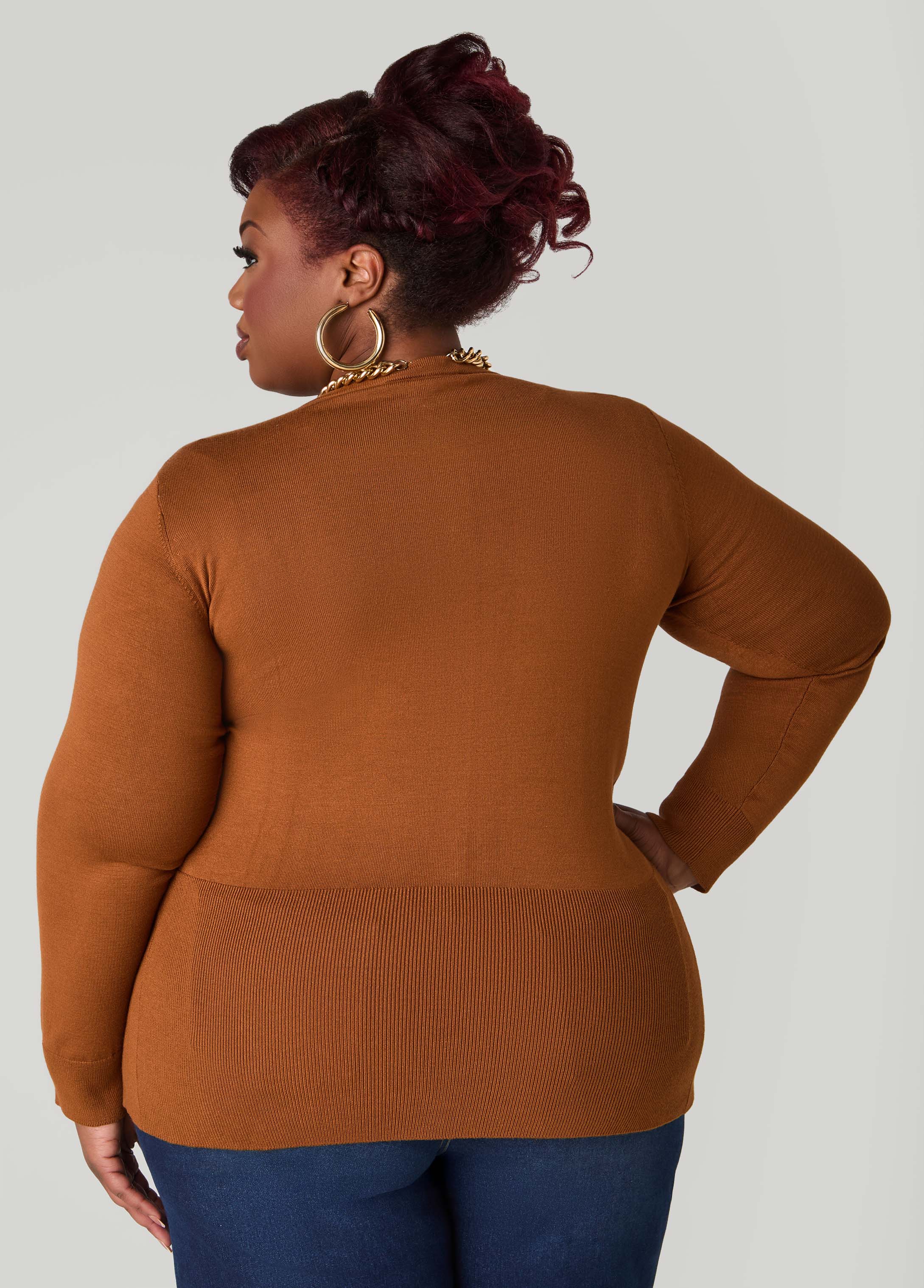 A knitted cardigan with gold button fastenings through the front, ready to pull your whole look together. Just the thing to layer when you want cozy with a little glimmer of glamour.