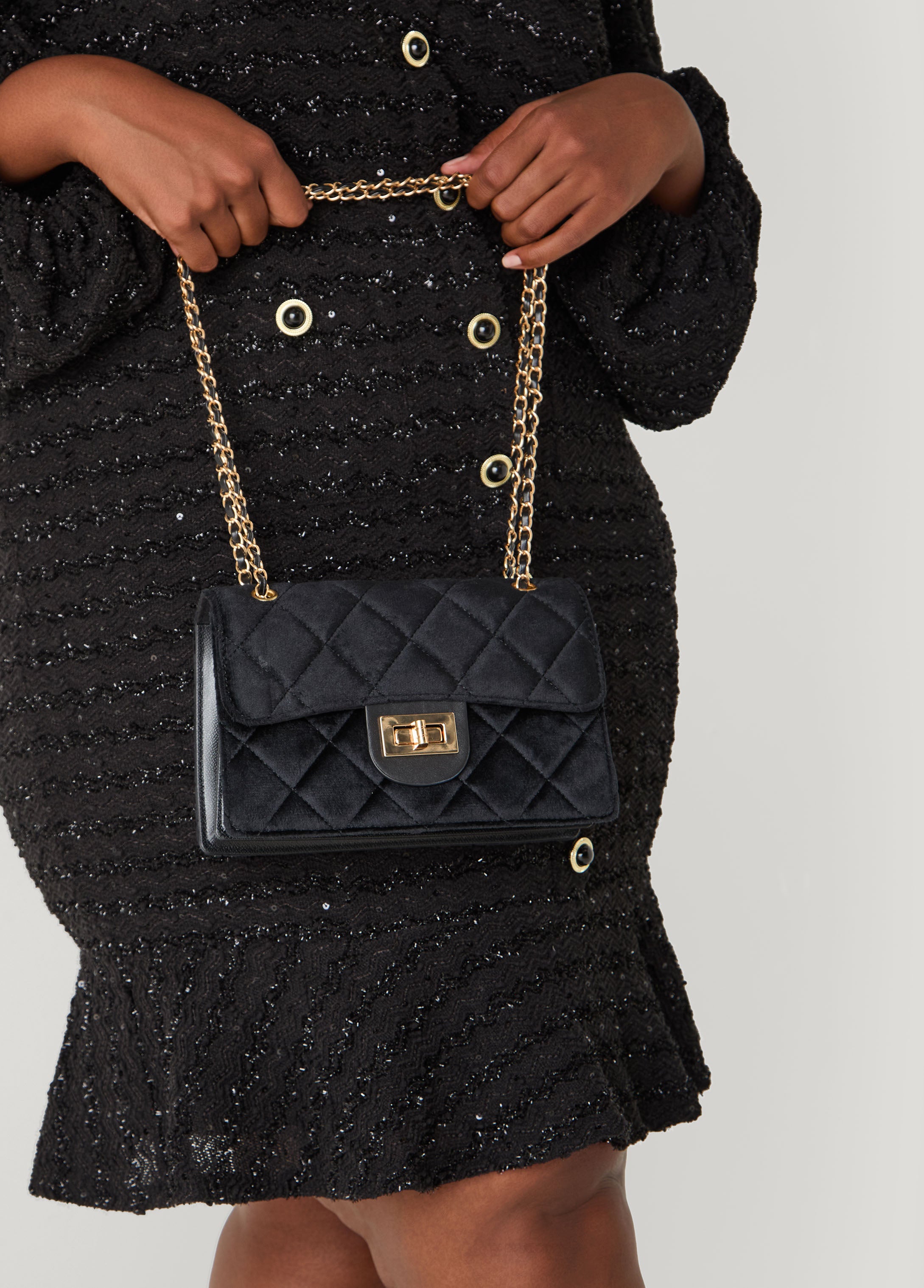Quilited in velvety lusciousness, enjoy the luxe look of our crossbody bag featuring a chain strap & dual compartments to keep your on-the-go goodies organized behind its chic design.
