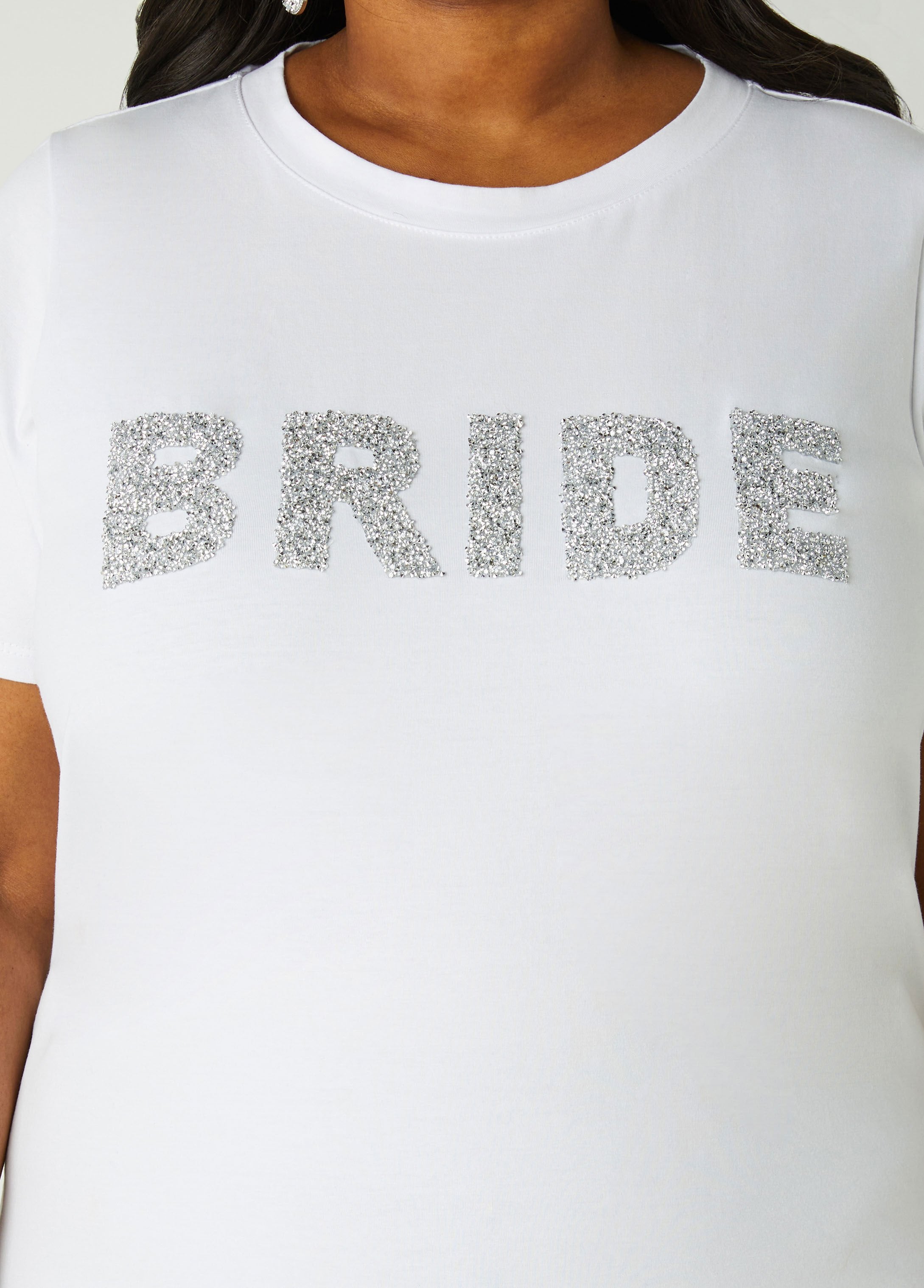 Say "I do" to sparkle with this Bride jersey tee! Featuring "bride" spelled out in dazzling crystals, this top adds the perfect touch of glam to your bridal look. Whether you're lounging before the big day or celebrating with your squad, this tee is all about making memories with a little extra shine.