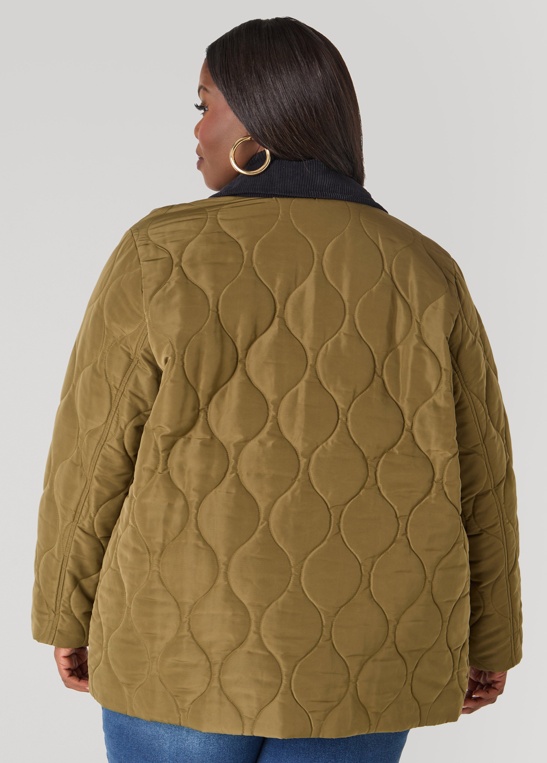 This quilted barn jacket with corduroy collar blends a classic cut with a current, modern vibe.