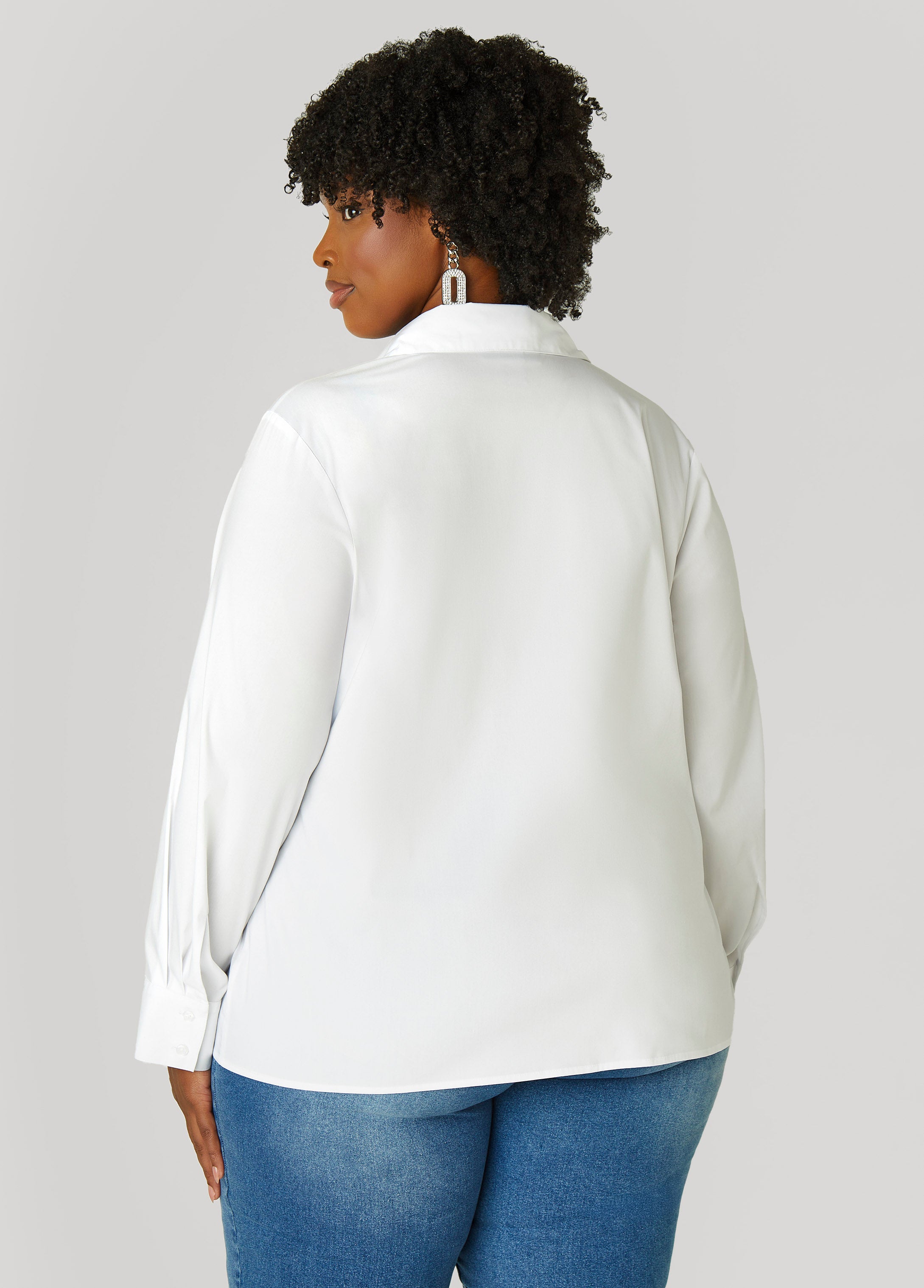 Our poplin shirt "pops" with love and a little sparkle. The crystal heart says flirty business, the patch pocket keeps it casual and the button cuffs pull it all together.