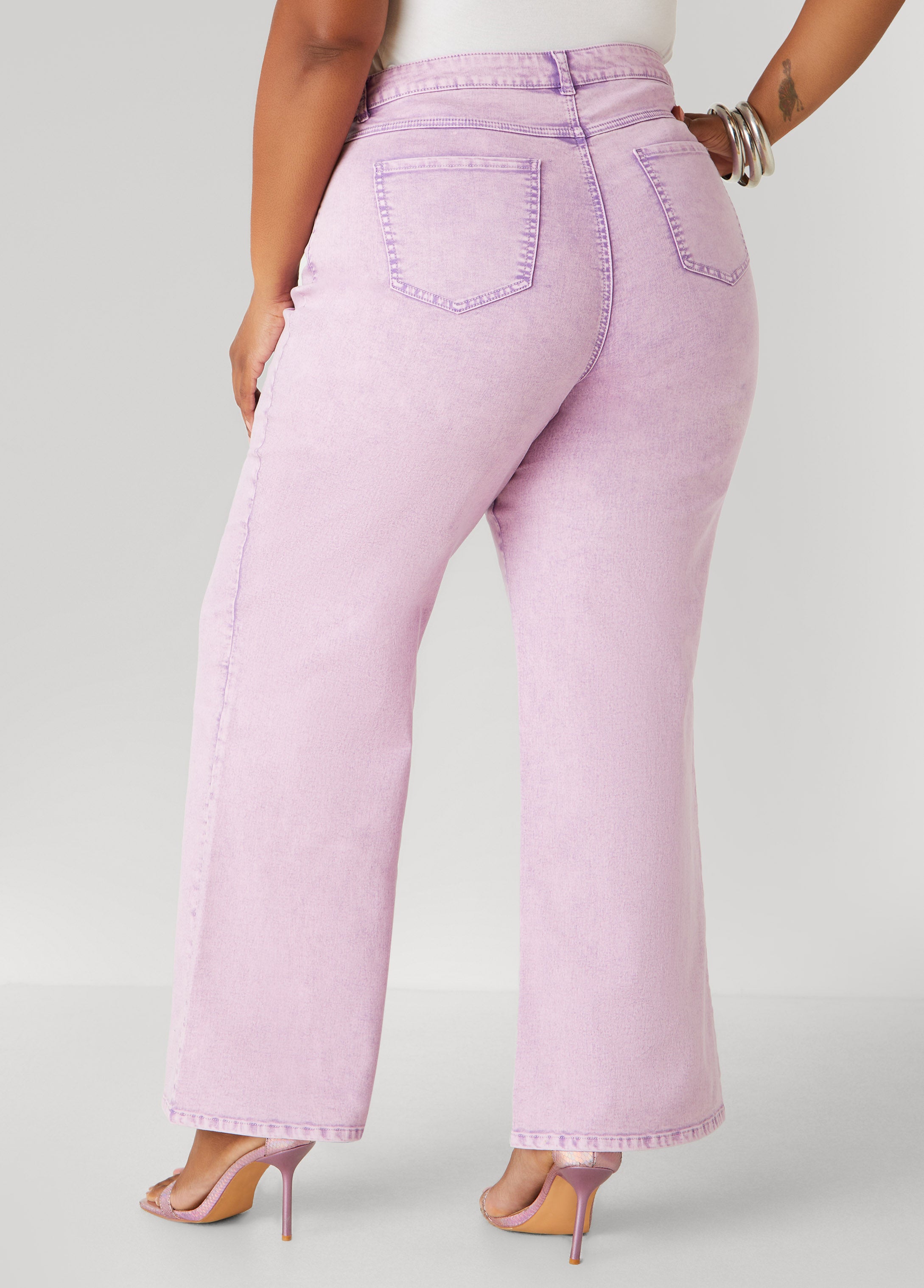 High-rise and stonewashed like they’ve lived a little, these purple wide-leg jeans know how to stir things up. The stretch fit hugs where it counts, then kicks out into a no-nonsense leg that’s ready to strut.