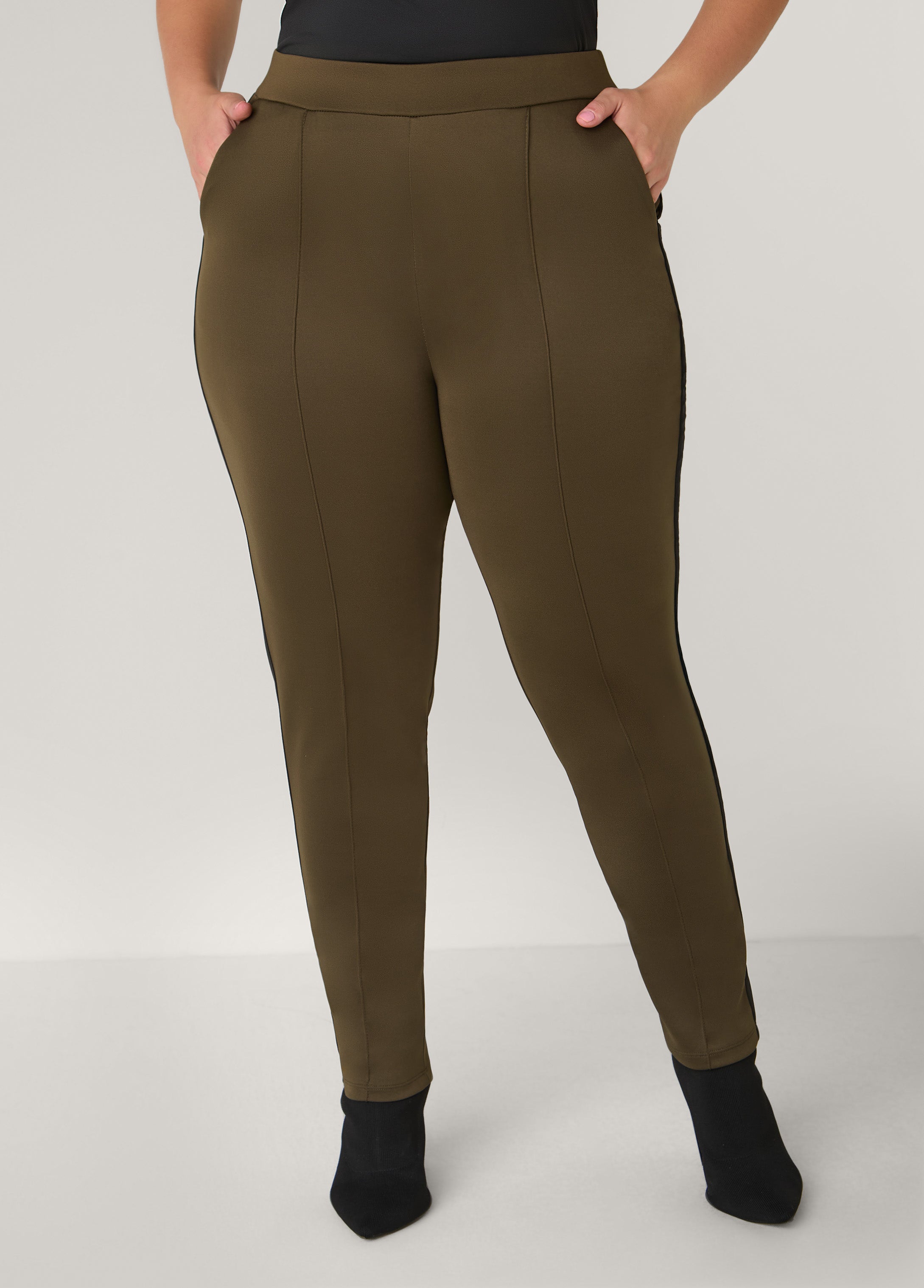 Stripes and pintucks bring style to these stretch-knit leggings, complete with slant pockets, an elasticized waistband, and ankle cuffs. Pair them with the matching jacket for a polished, off-duty look.