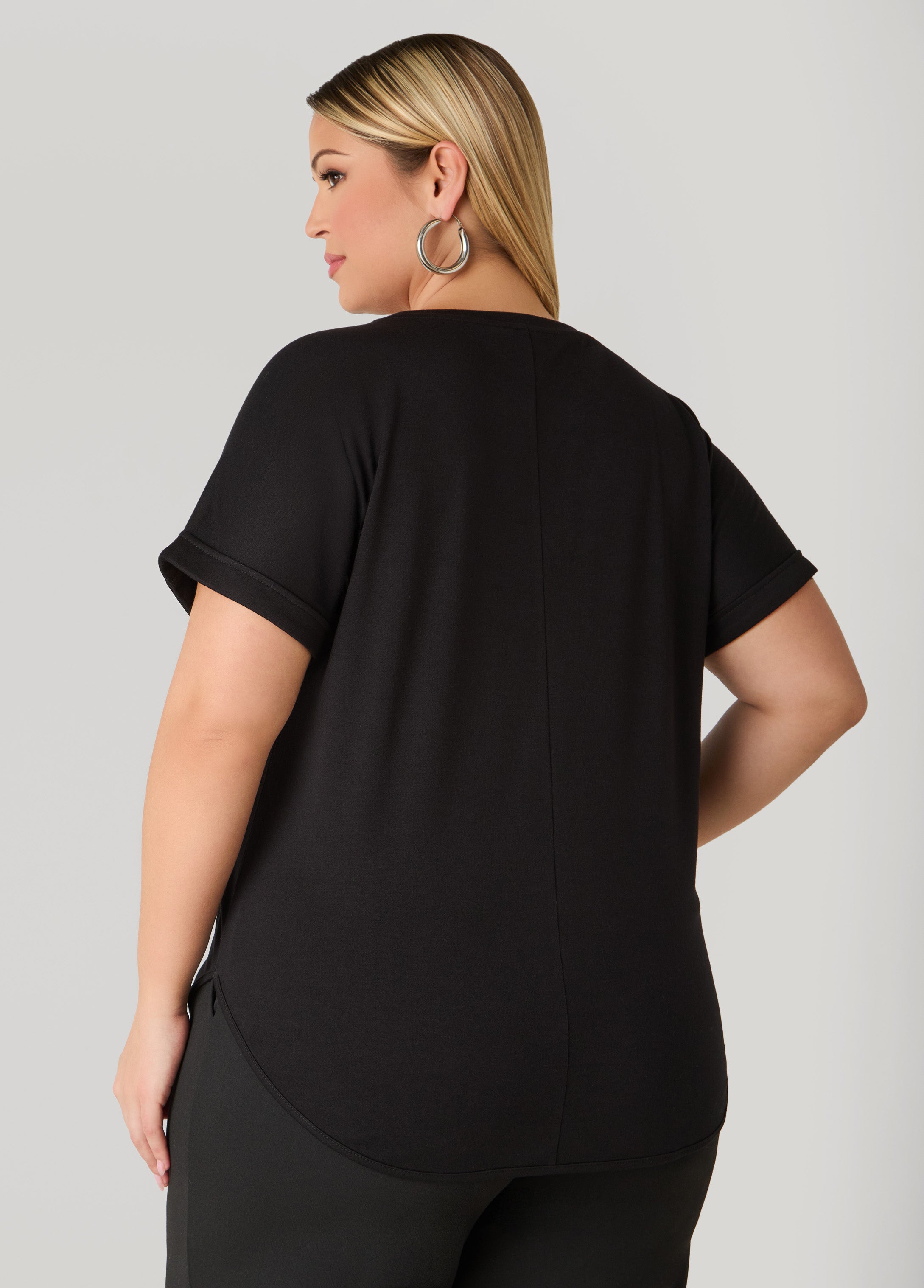 Comfy gets a glow-up in soft French terry with a little sparkle on top. Glittering crystals play peekaboo in the light, a patch pocket adds charm and cuffed sleeves keep it cute and casual.