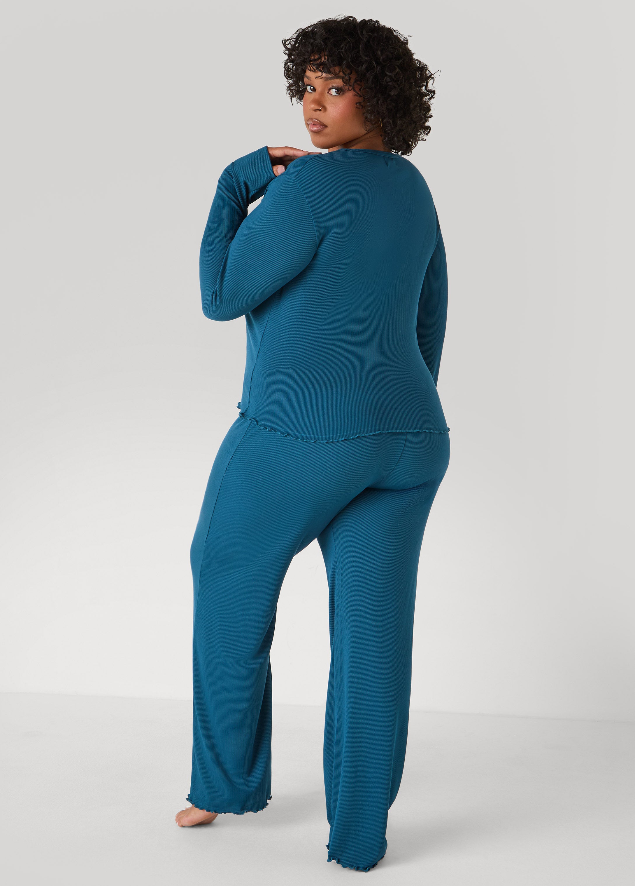 Experience the ultimate in bedtime comfort with our Love To Sleep pajamas set. Designed for those blissful moments before sleep, this set features a soft ribbed-knit top that slips on effortlessly, complemented by matching pull-on pants with a shirred waistband for a perfect fit.