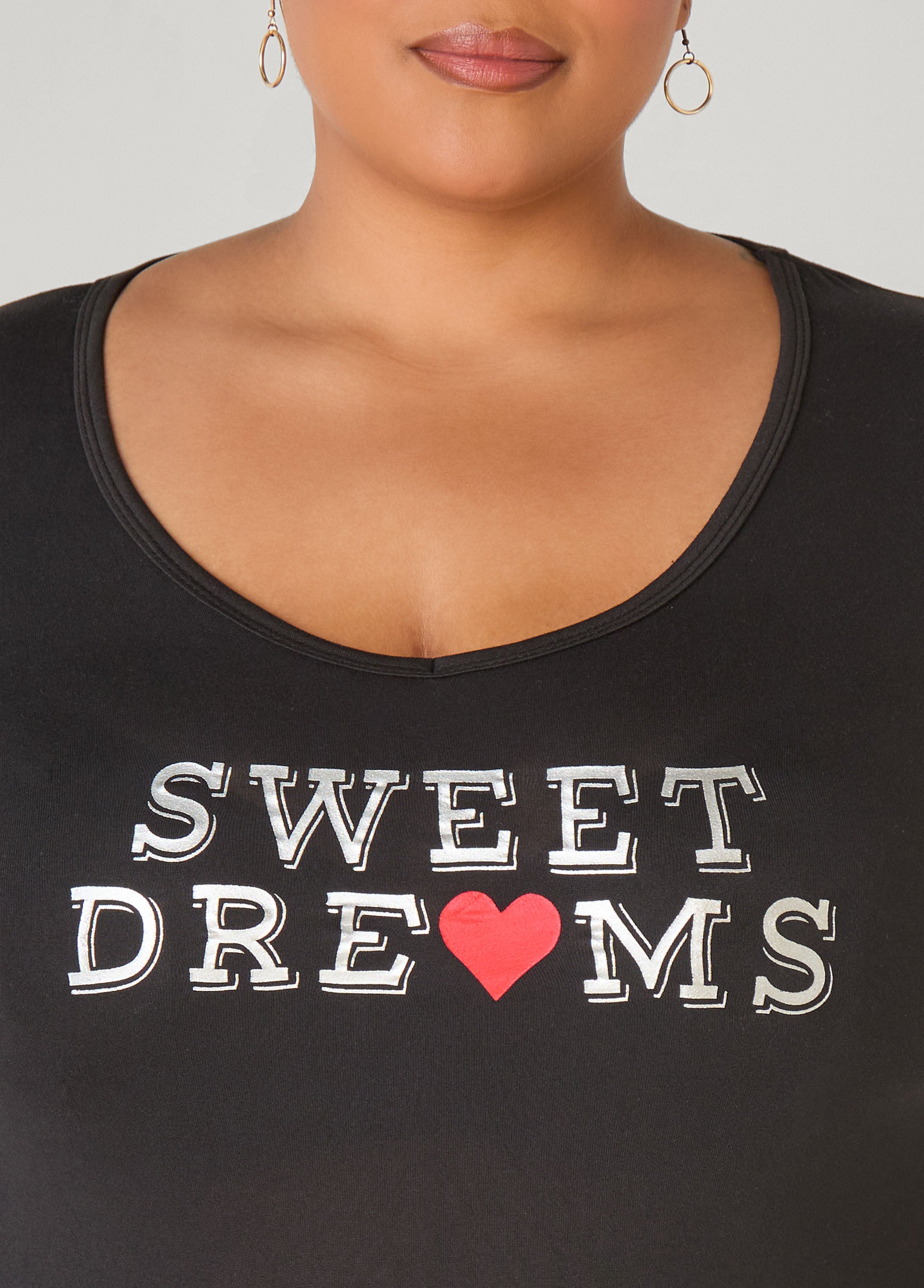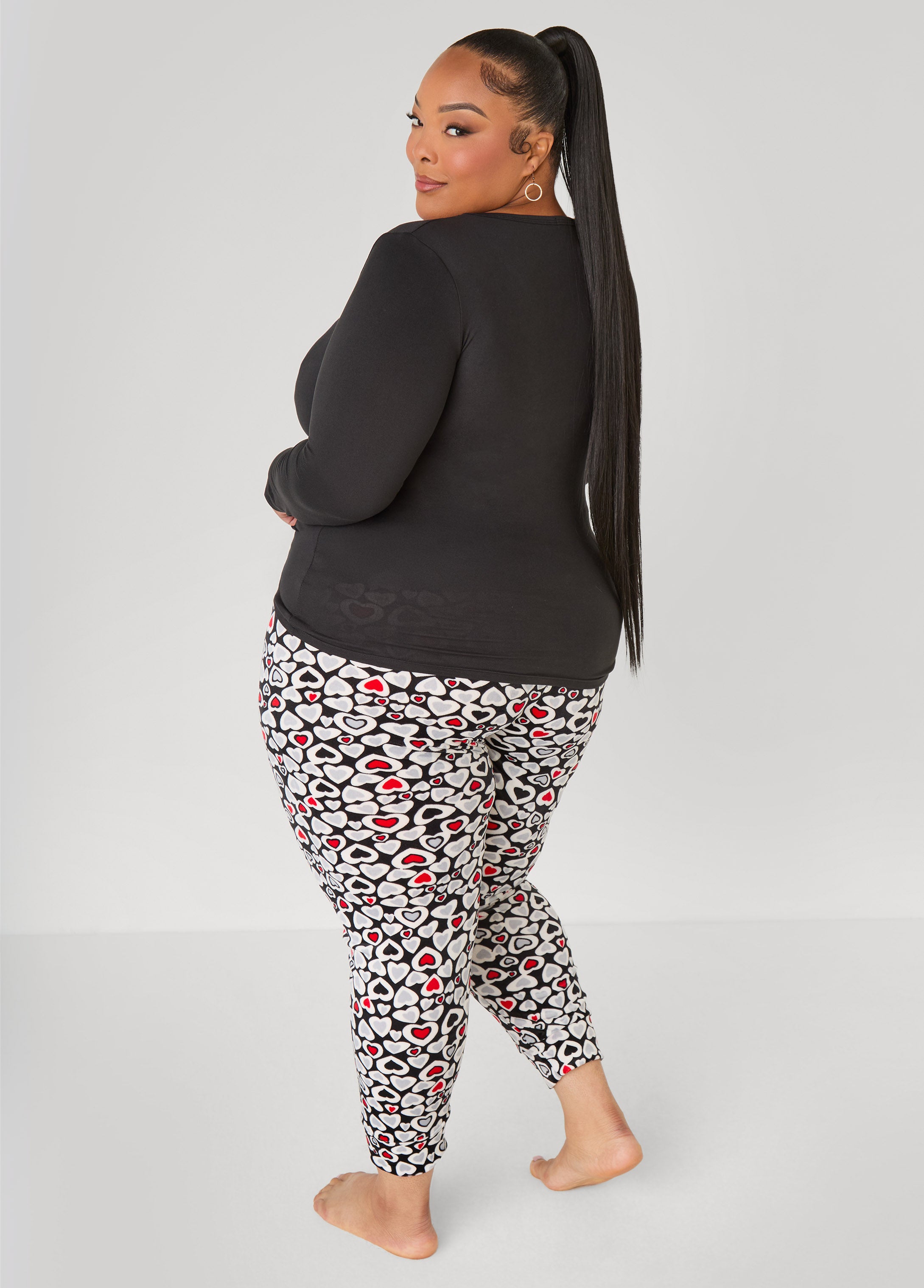 Love To Sleep in style with this ‘Sweet Dreams’ jersey top. Slip it on, slide into the matching heart-print velour pants and let your nightwear do the flirting while you snooze.