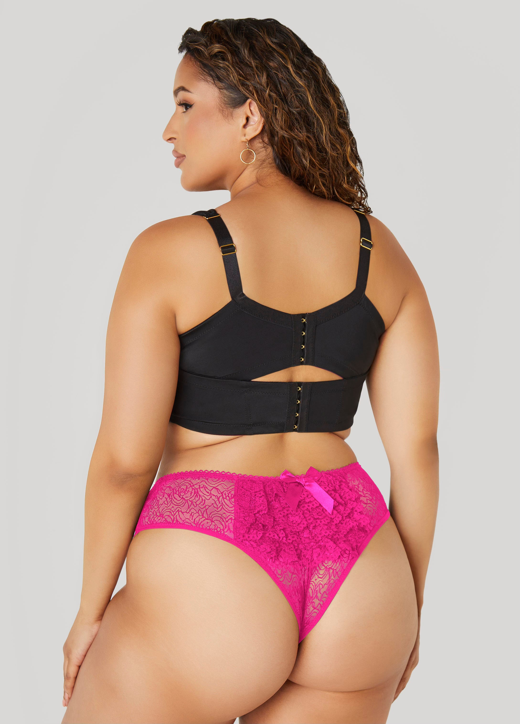 These lace crotchless hipsters are all frill and no chill with a sweet little bow, base cutout and ruffles that are all naughty but look nice.