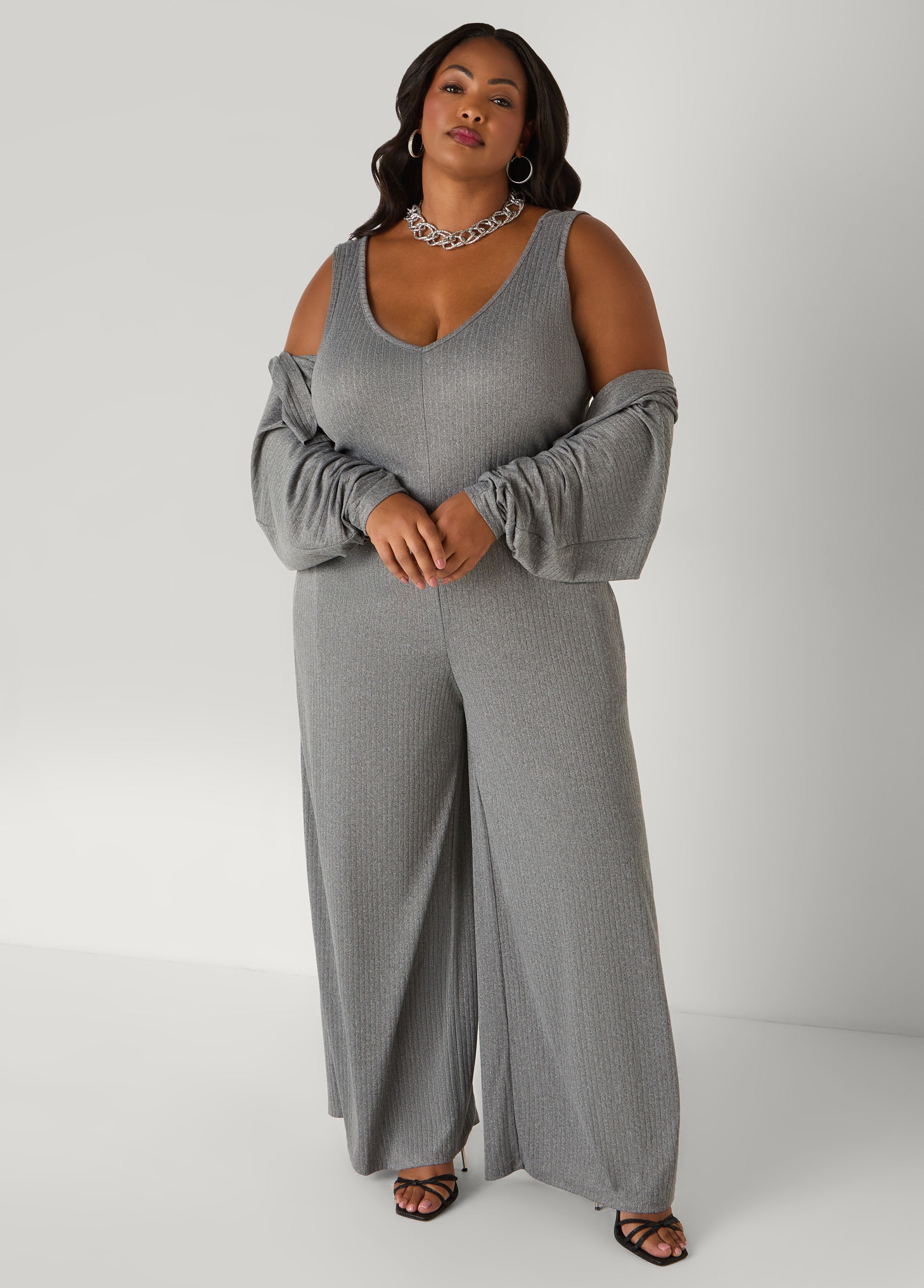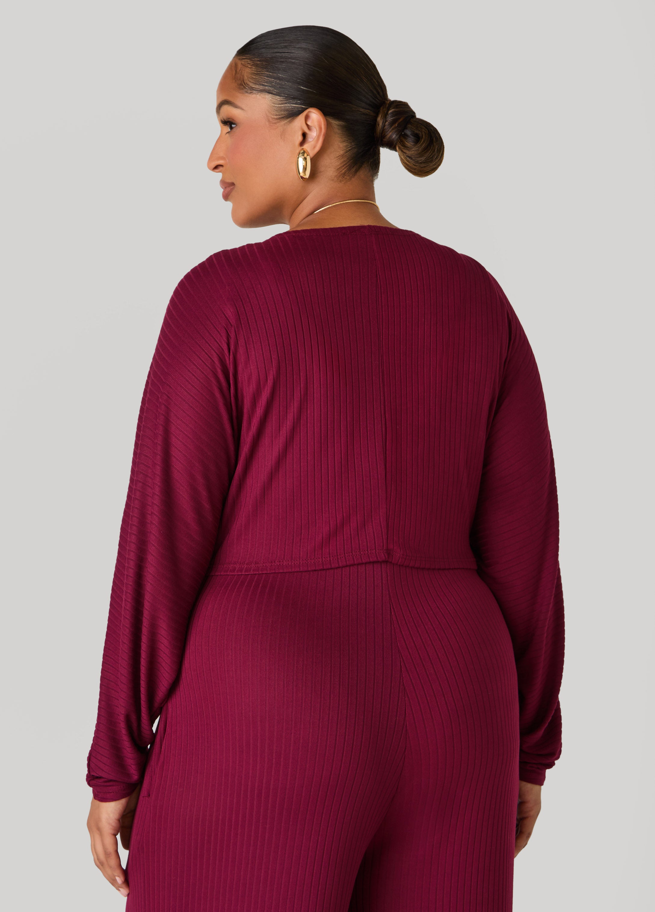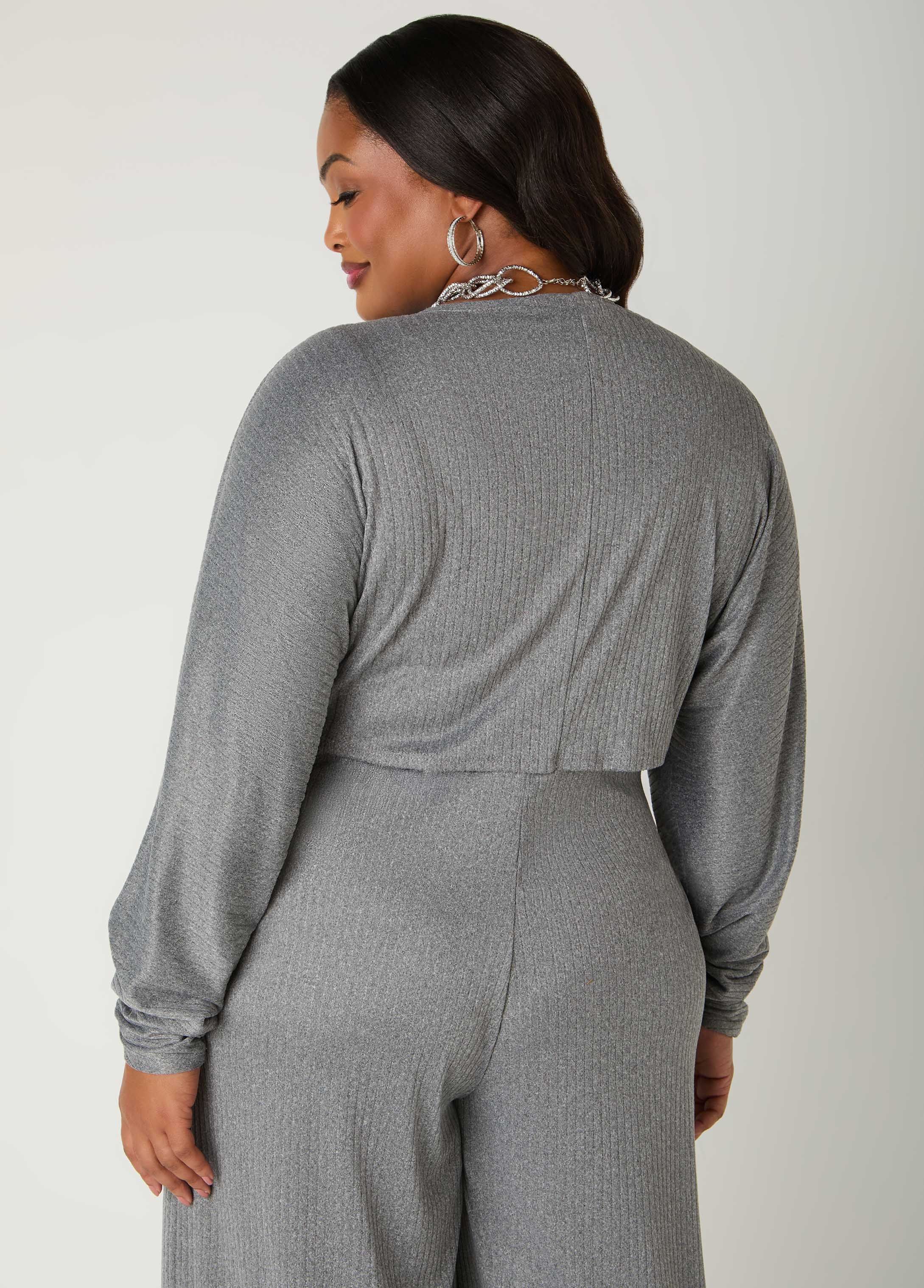 Slip on this ribbed-knit bolero with an open front and instantly elevate the matching jumpsuit into a polished two-piece set.
