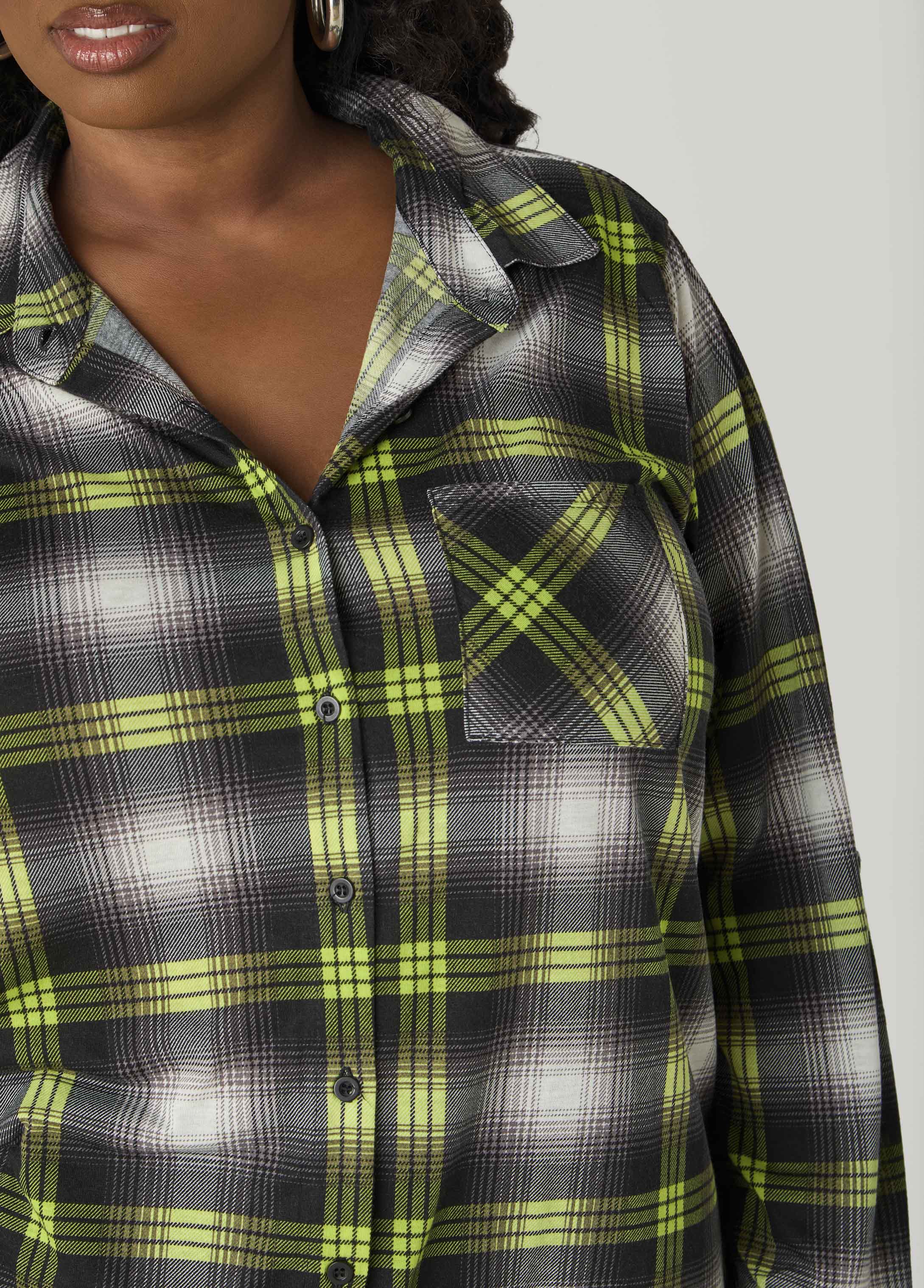 Lime green gets loud in this plaid stretch-knit shirt. Black and white checks keep it classic with the bust patch pocket for a sprinkle of utility. Bold, punchy and ready to shake up your shirt game.