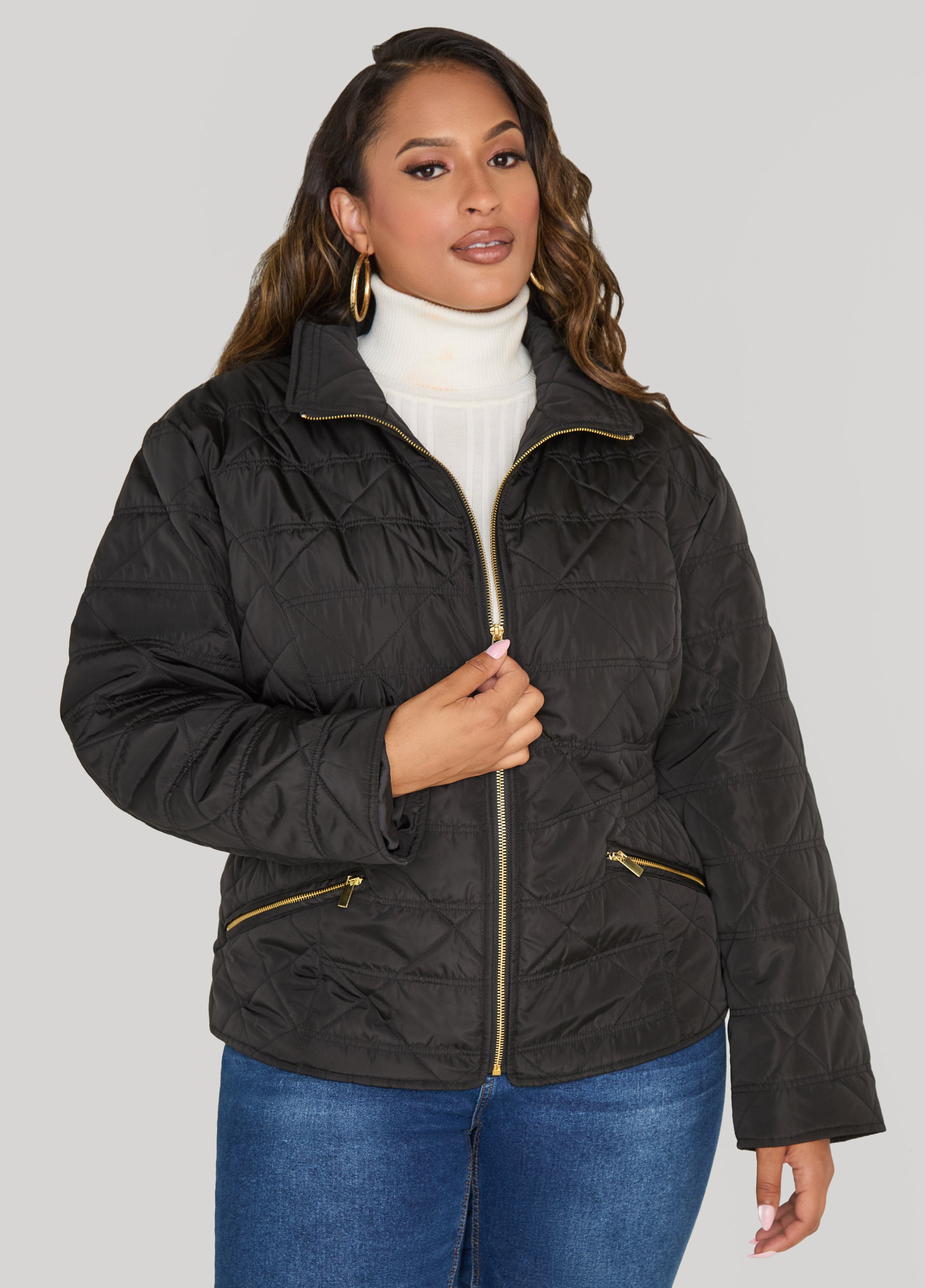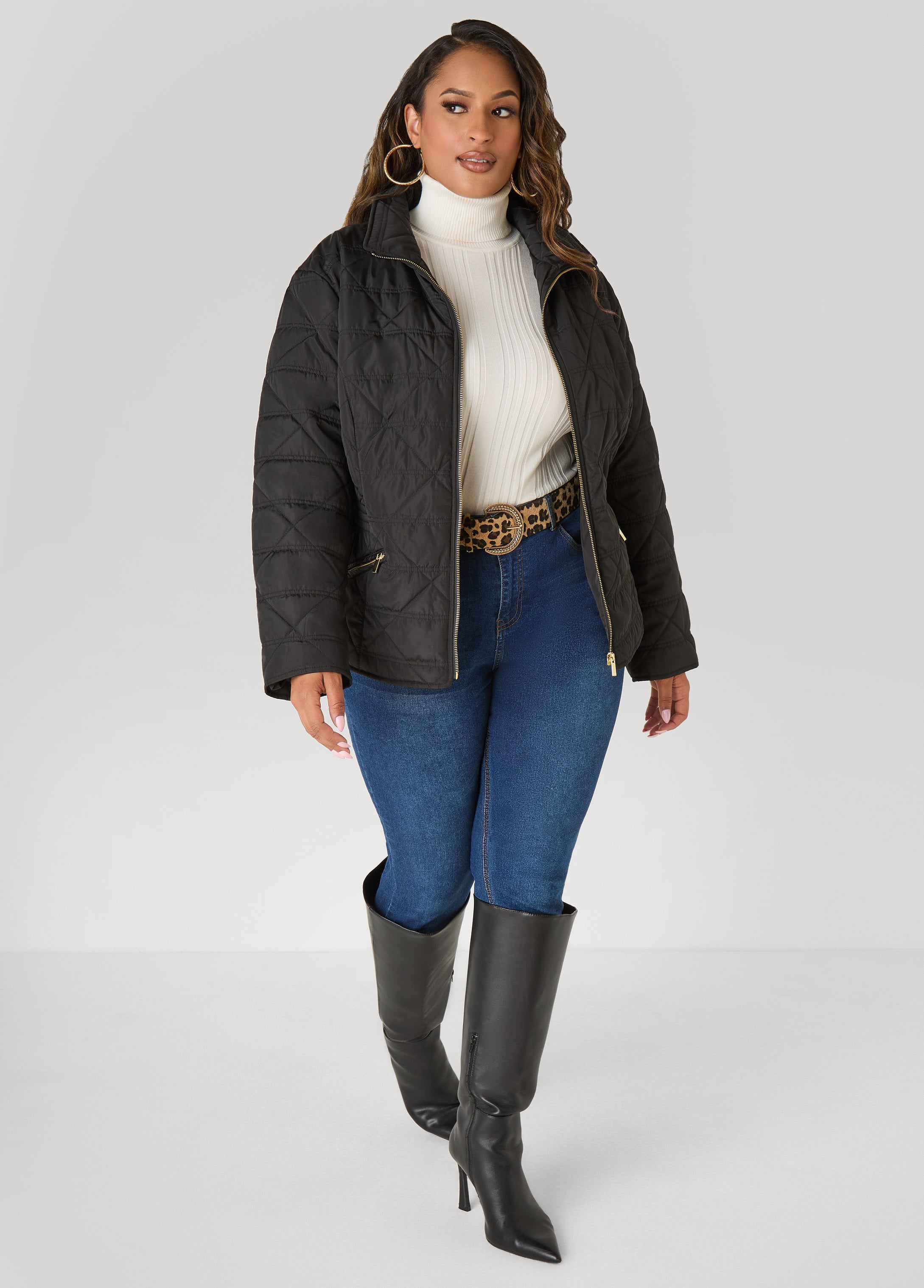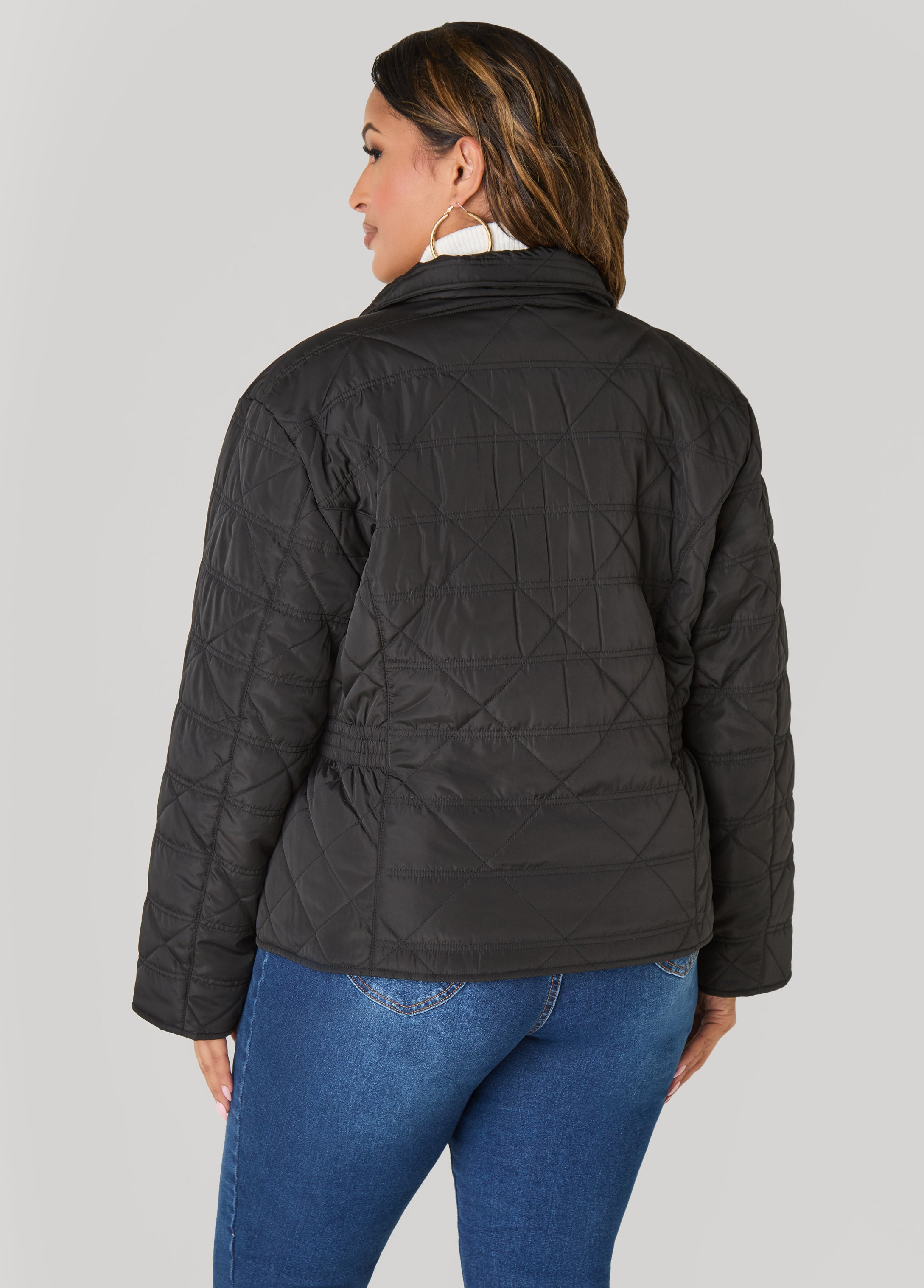 This woven jacket folds and flows over the frame. The waistband cinches the look and keeps it ready to style with everything.
