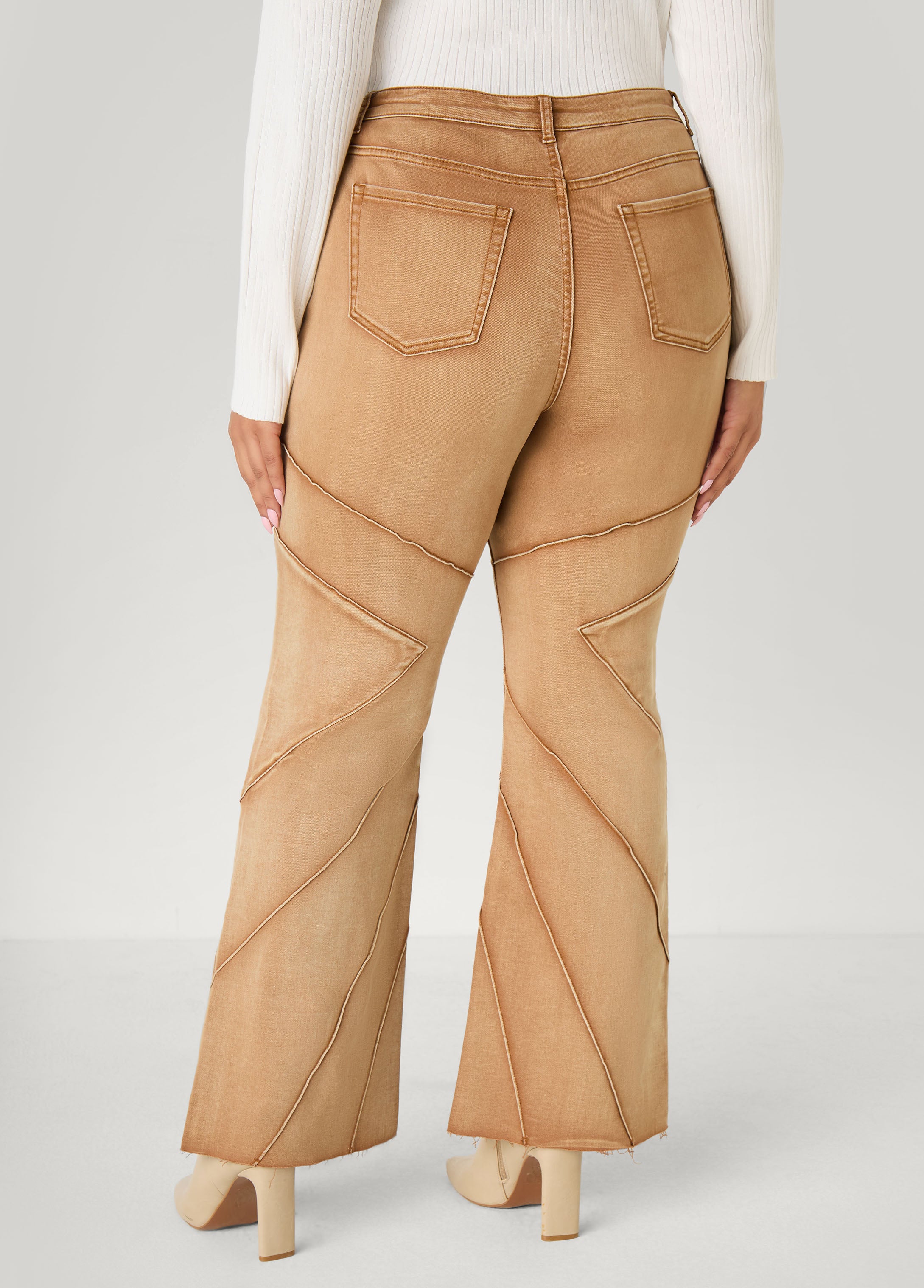 High rise and ready to play it long. These colored denim flares stack up with seam detailing and raw trims that keep the overall look fun, fresh & current.