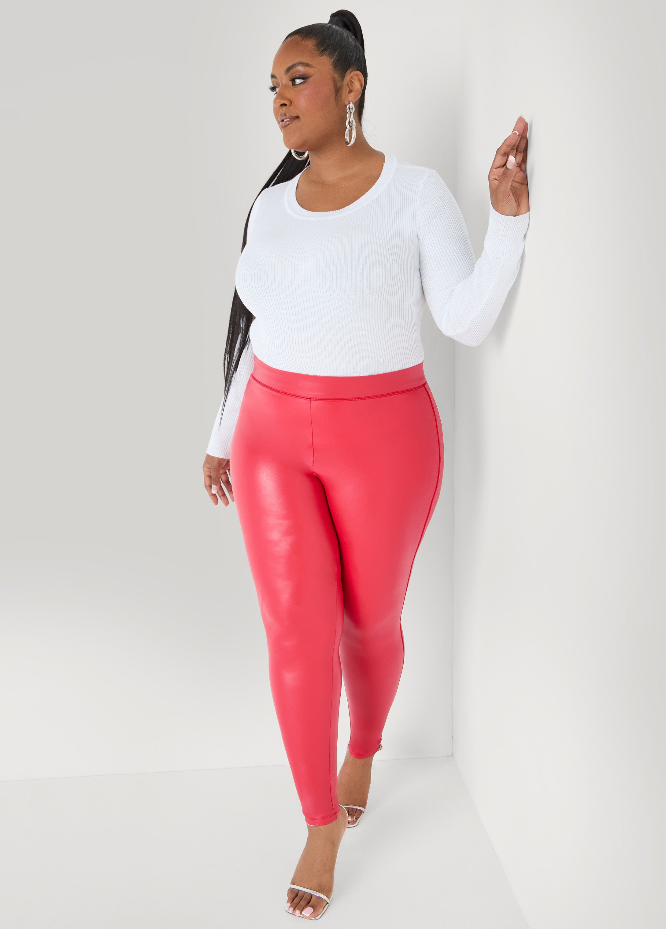 Hop on this season's hottest trend with these chic faux leather leggings. The high-rise fit & supple stretchy fabric will make your curves look super sexy.
