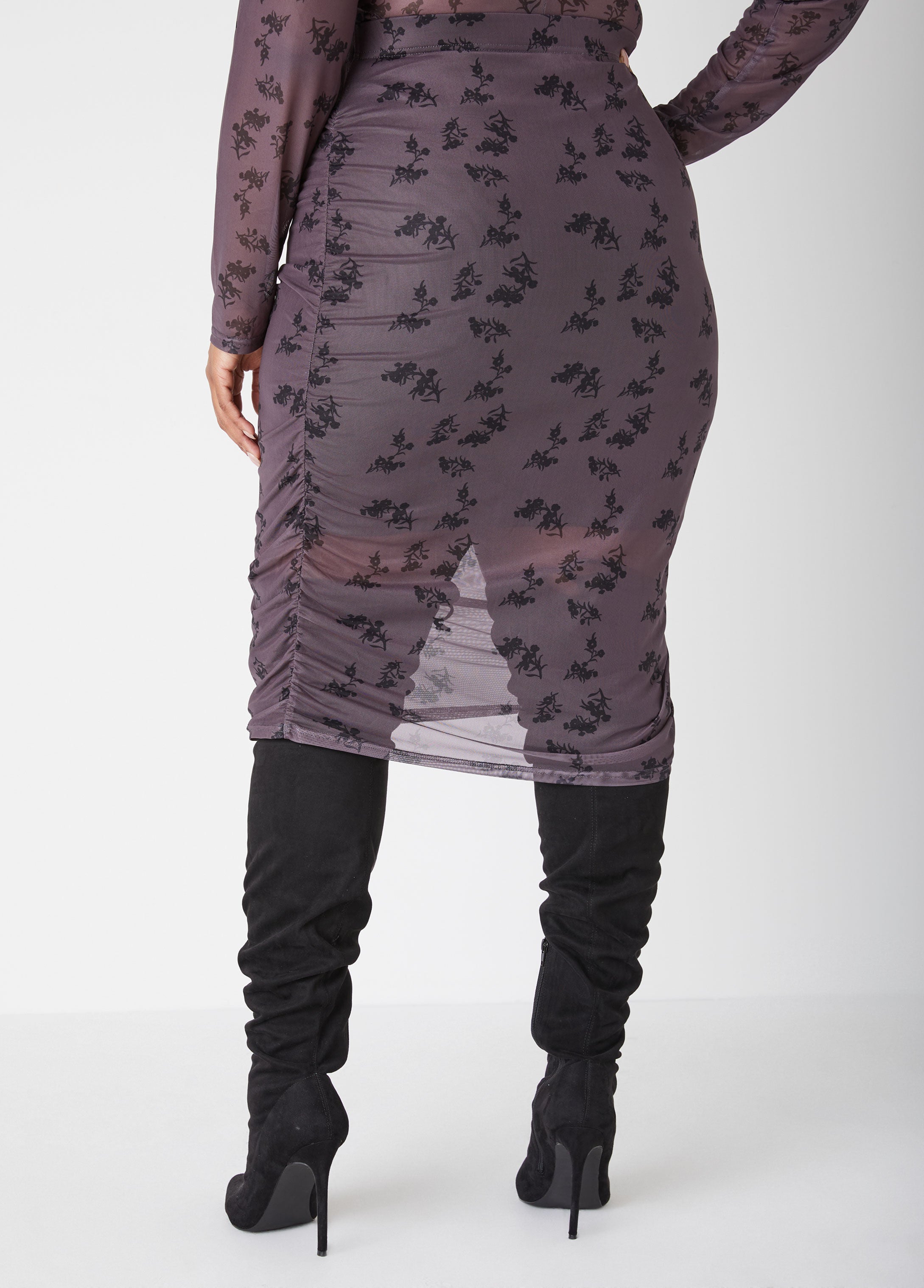 Make a statement this season with this floral print stretch-mesh skirt, featuring elegant side ruching and a comfortable elasticized waistband. The partially lined stretch-knit design offers just the right amount of coverage, while the slip-on style makes it an effortless choice for any festive occasion. Pair it with a sleek top for a look that’s both chic and celebratory.
