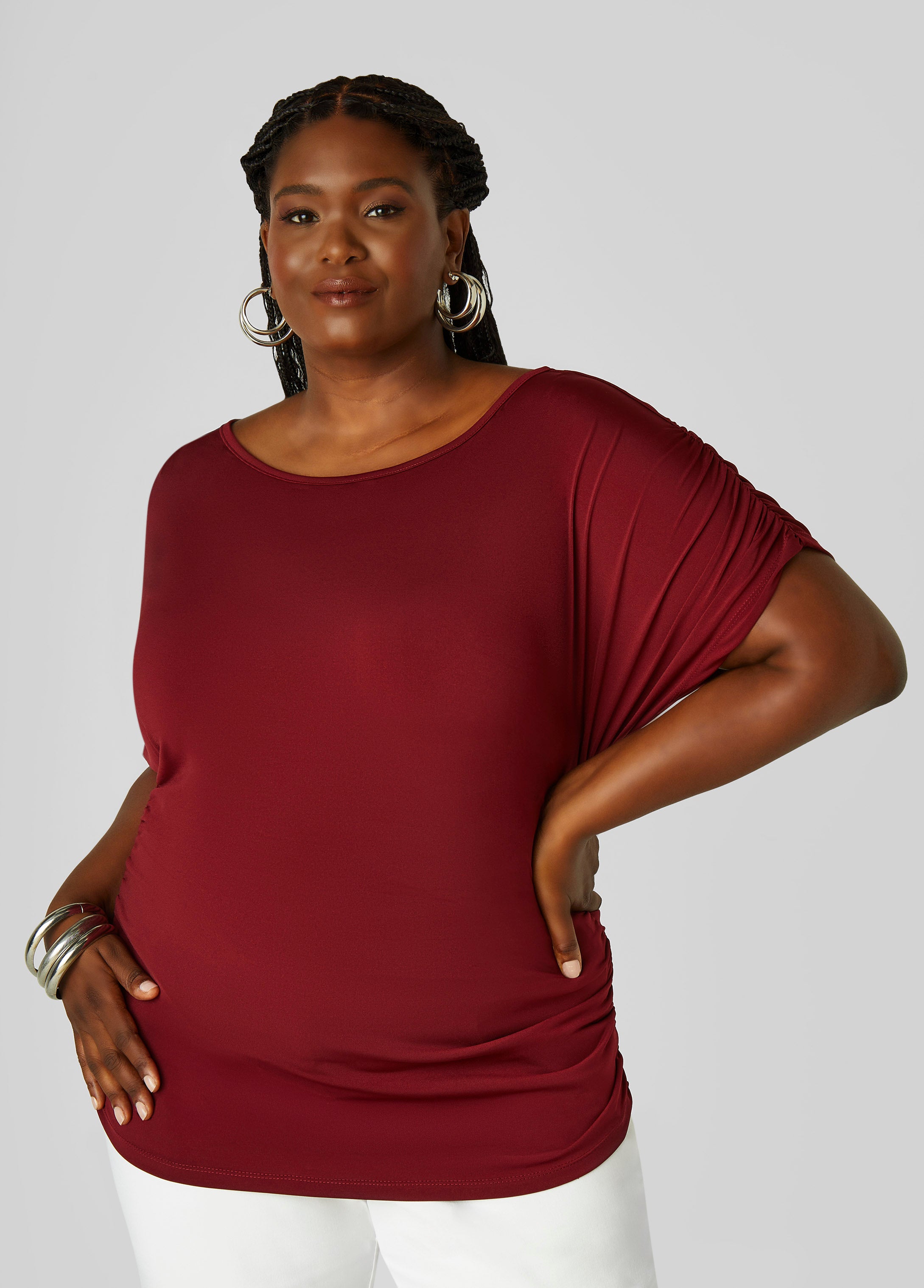 This stretch-knit top hugs you just right with ruched details running down the sides and sleeves. It’s soft, slinky and knows how to keep things snug in all the right places.