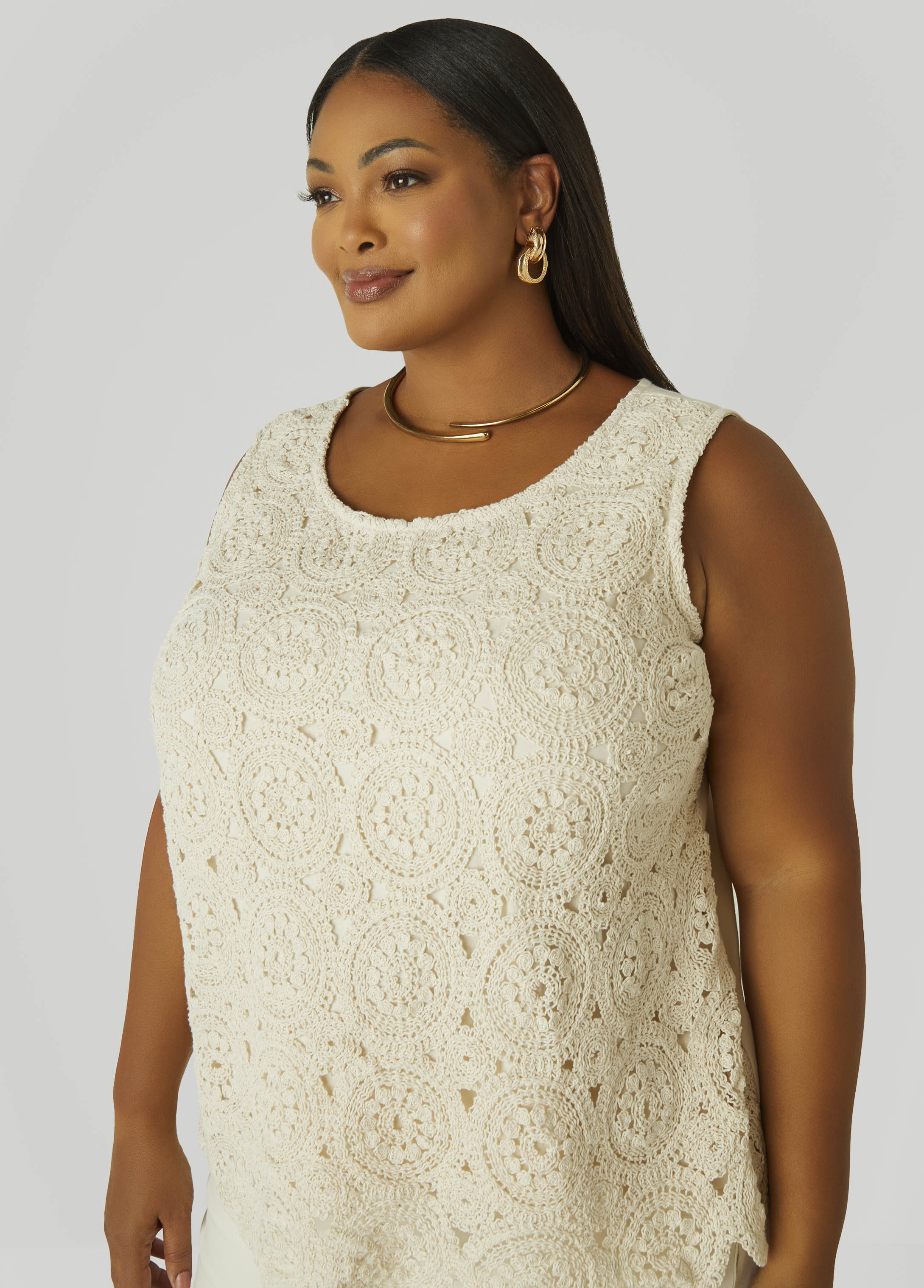 Plus Size Crochet Paneled Jersey Tank