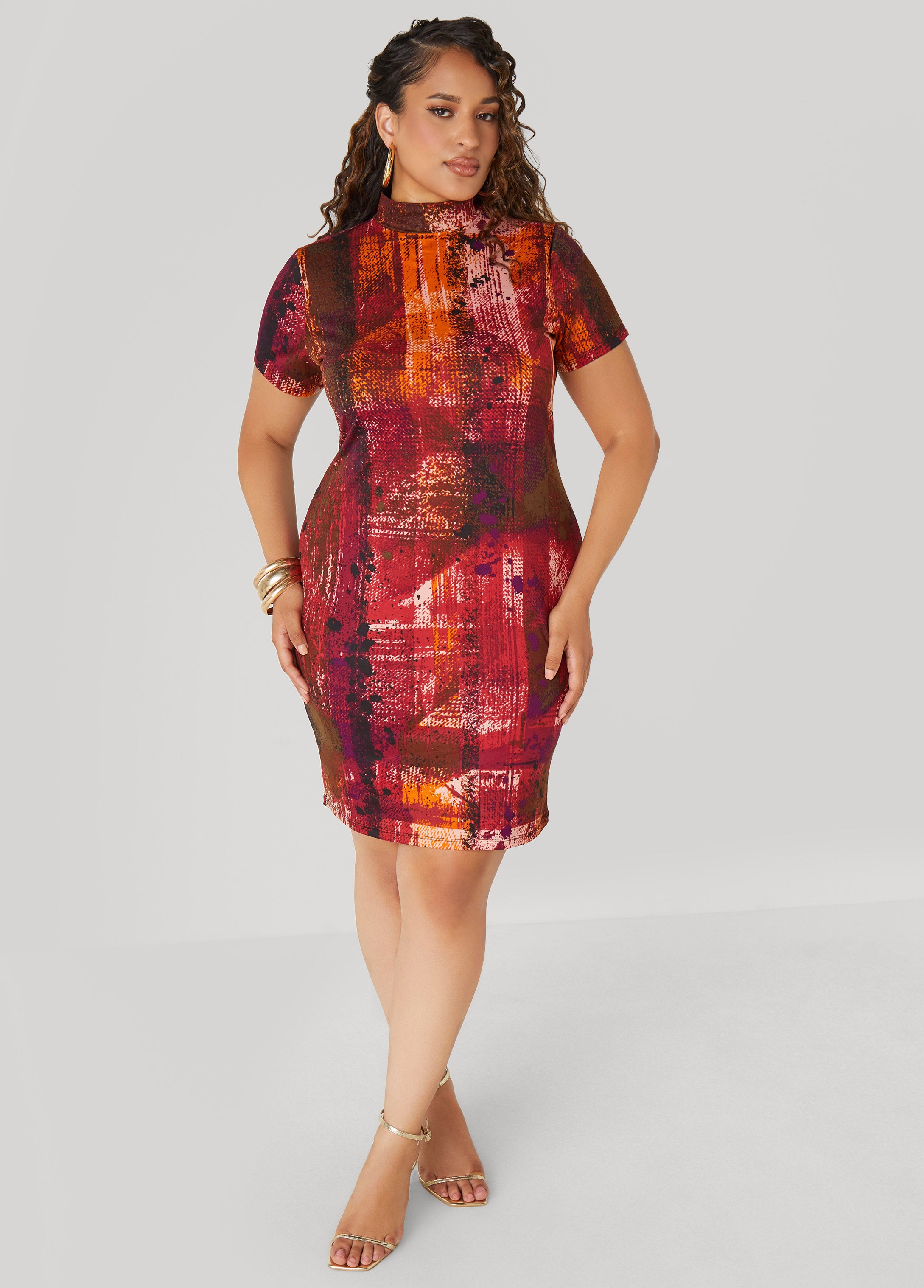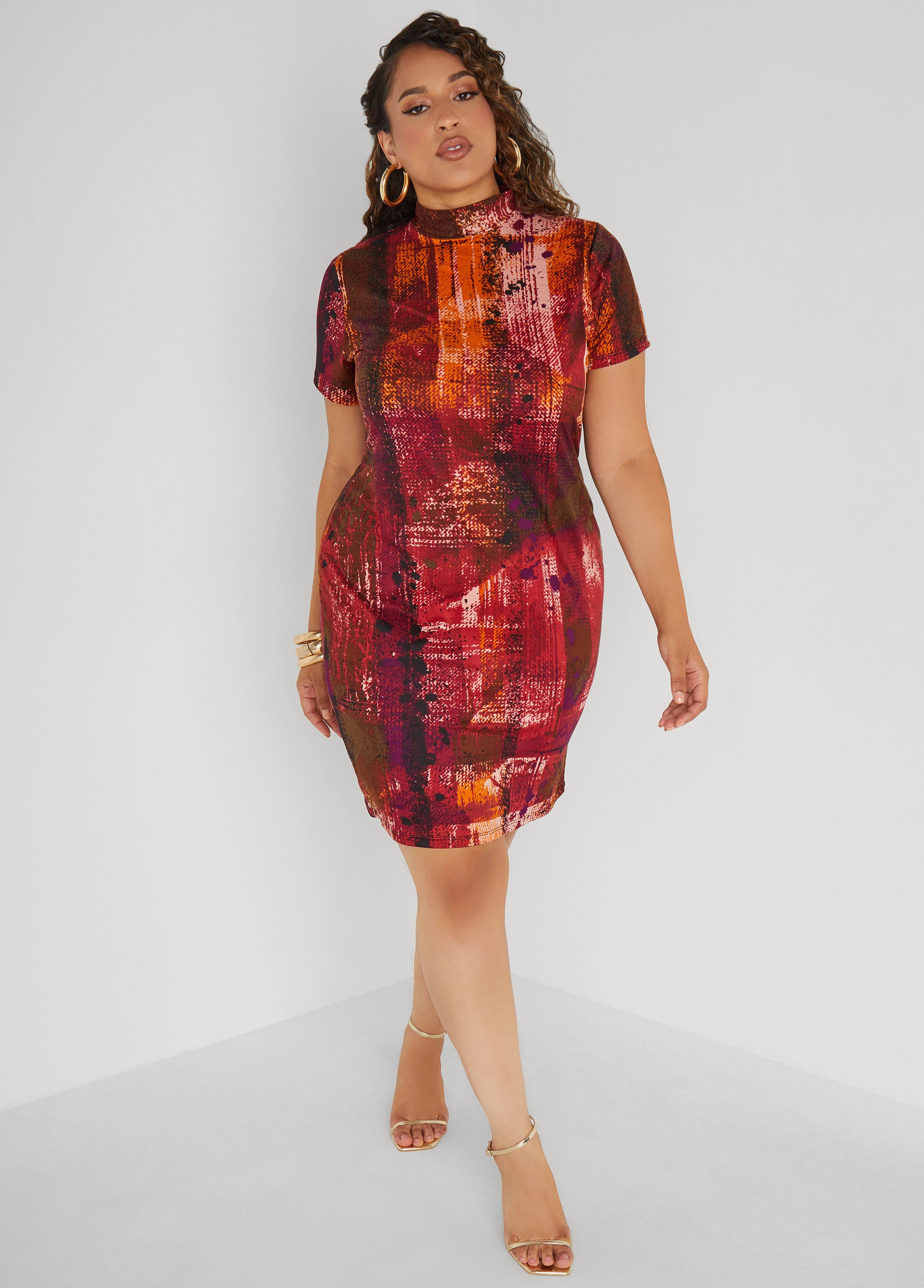 This printed stretch-knit bodycon hugs like it means it. The mock neck keeps things sleek up top while the curve-loving fit brings the heat from every angle.