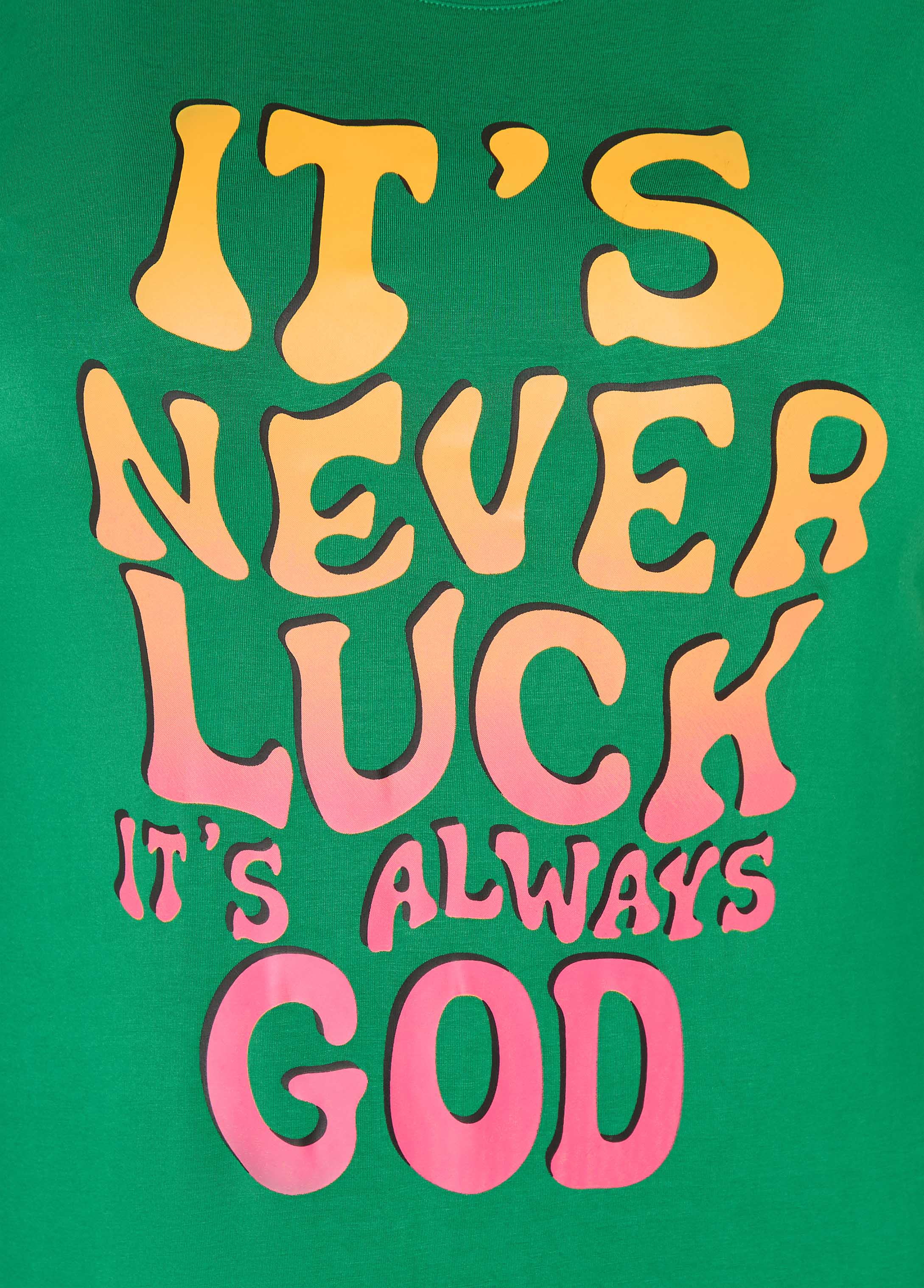 Plus Size Never Luck Always God Green Short Sleeve Maxi T Shirt Dress