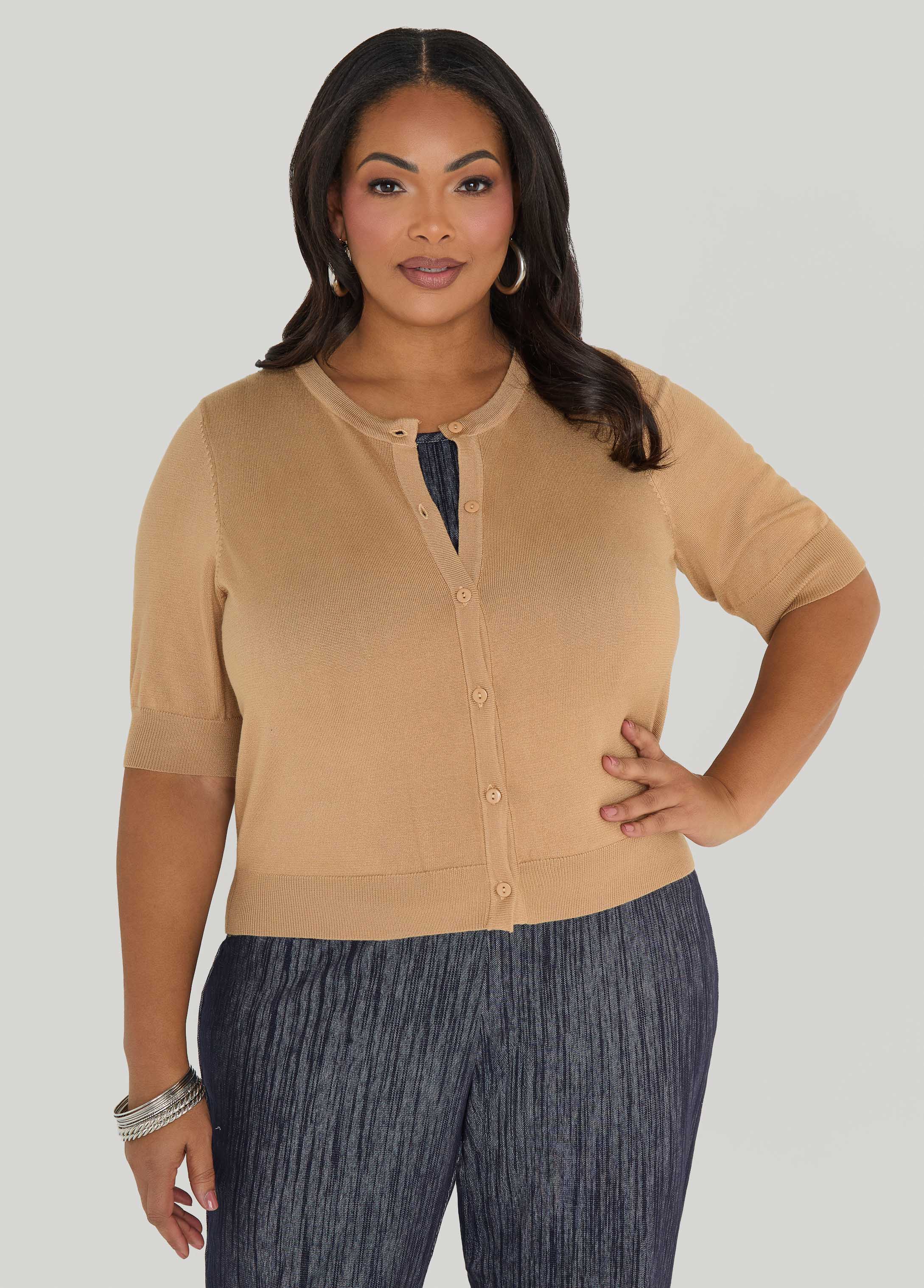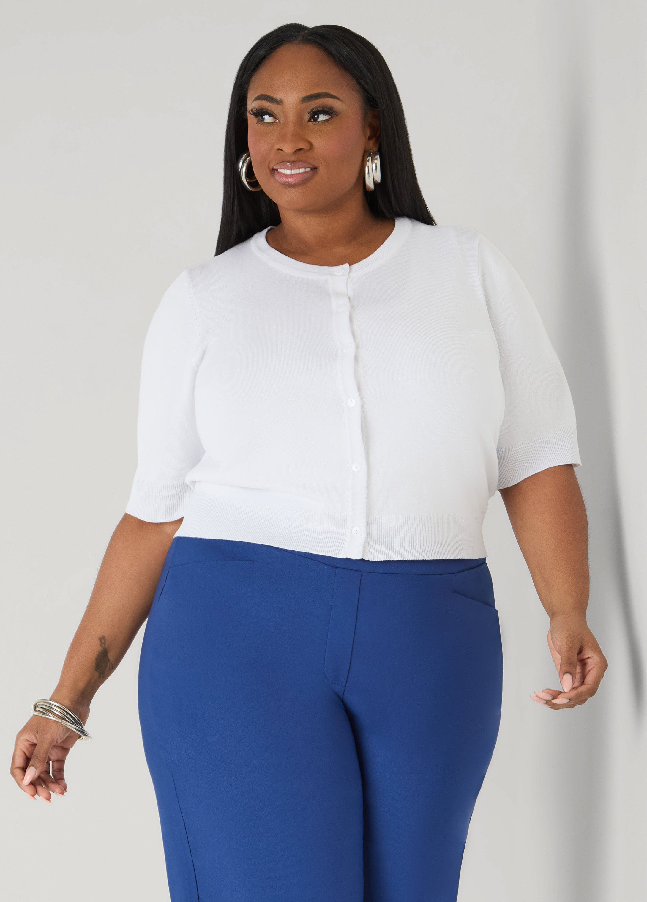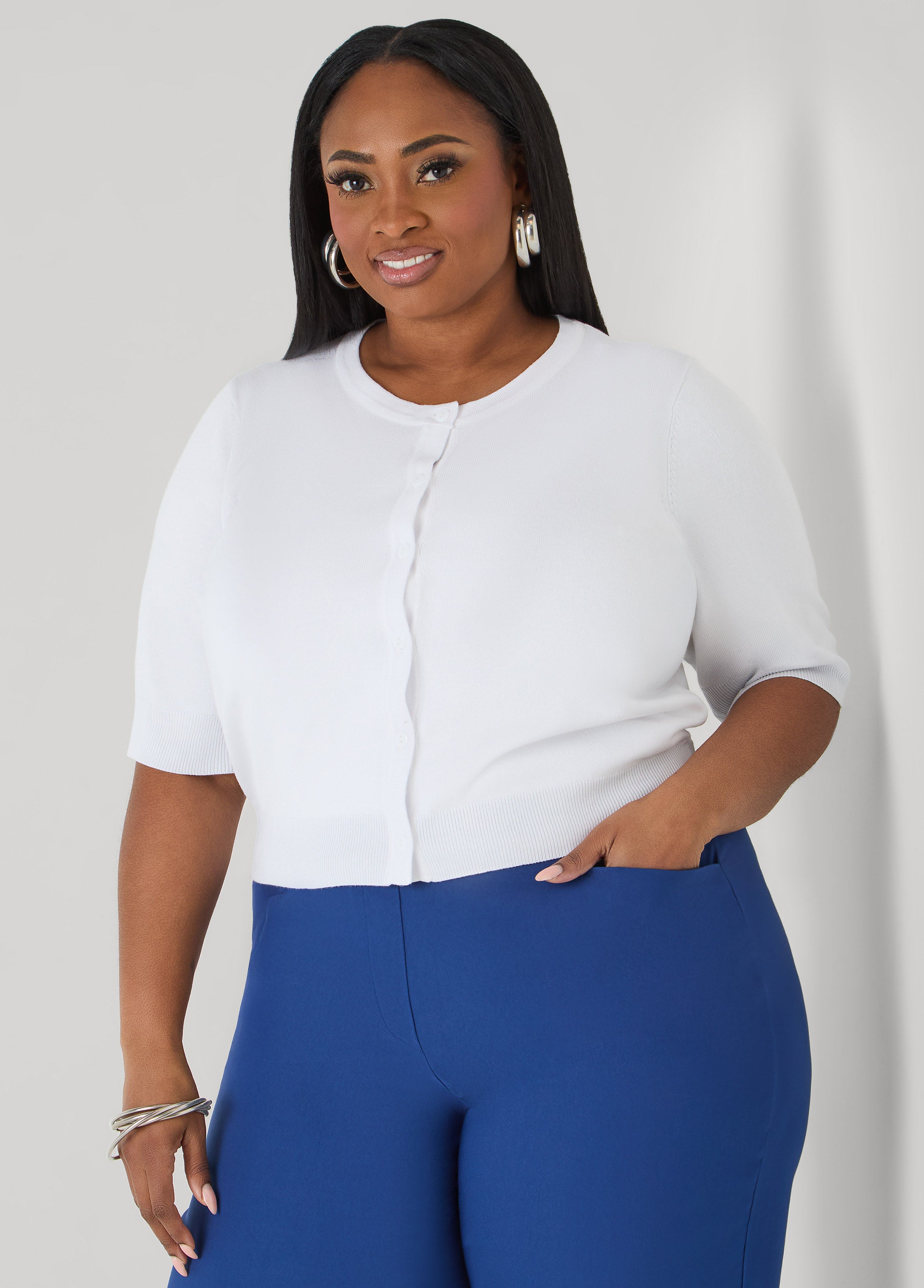 You're a chic cutie in our cropped cardigan designed from stretch knit in a range of easy-to-style colors.