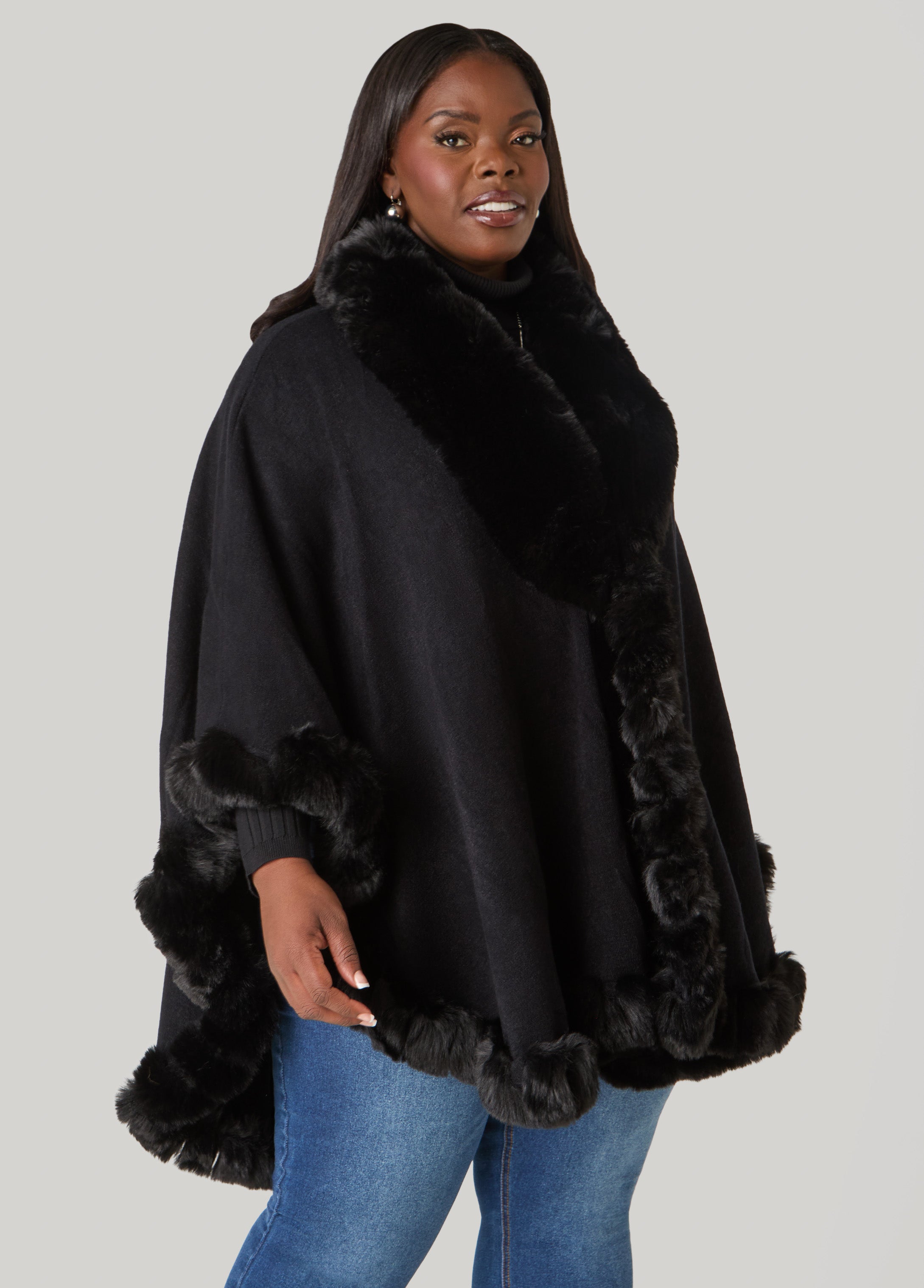 Wrap yourself in indulgent style with the Max Studio knitted ruana. Accented with plush faux fur trims, this piece exudes warmth and elegance. Perfect for layering, it’s a luxurious addition to any cold-weather wardrobe.