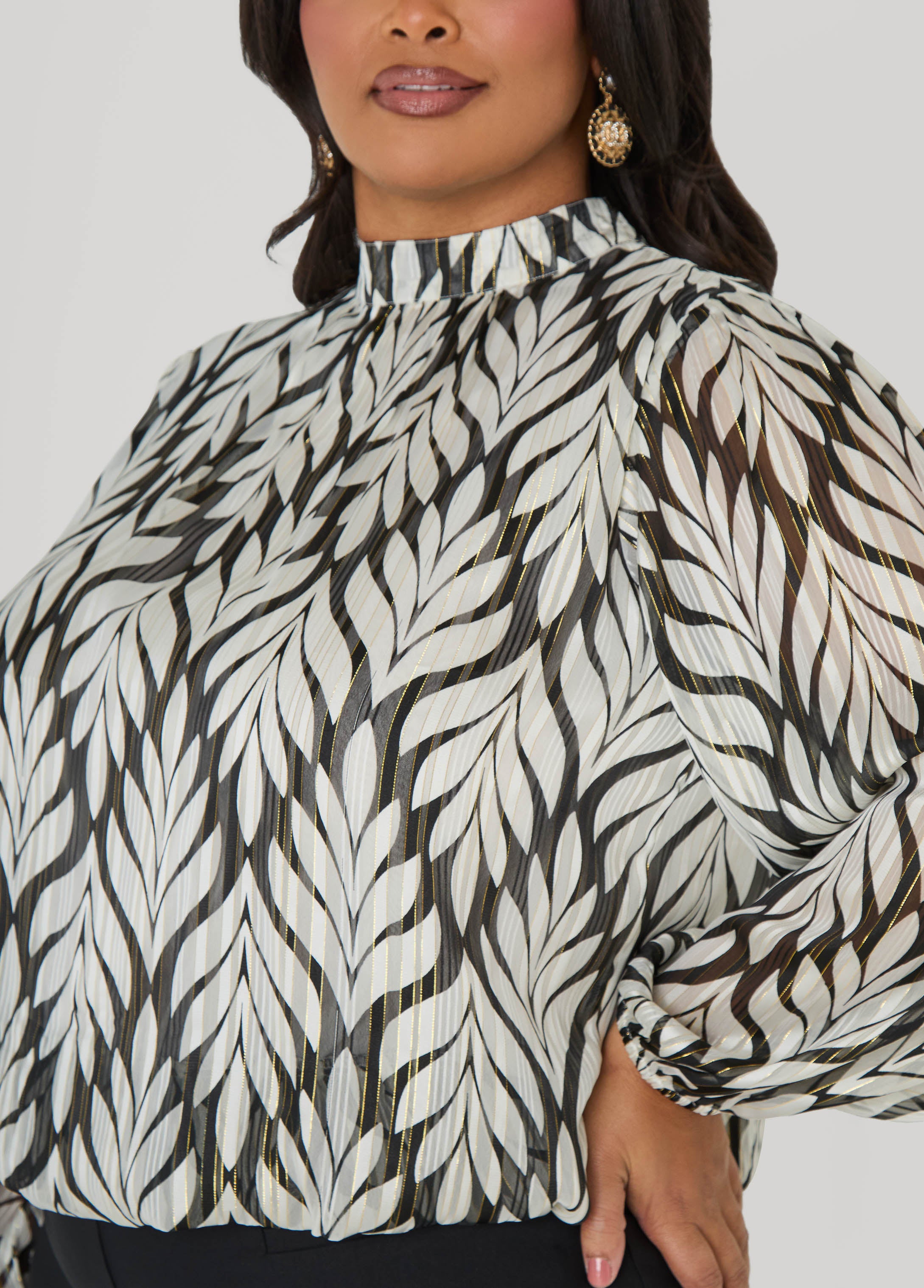 A sophisticated blend of chiffon and satin-twill with eye-catching metallic threading. The elasticized cuffs and waistband create a flattering silhouette, while the partially lined interior ensures all-day comfort.