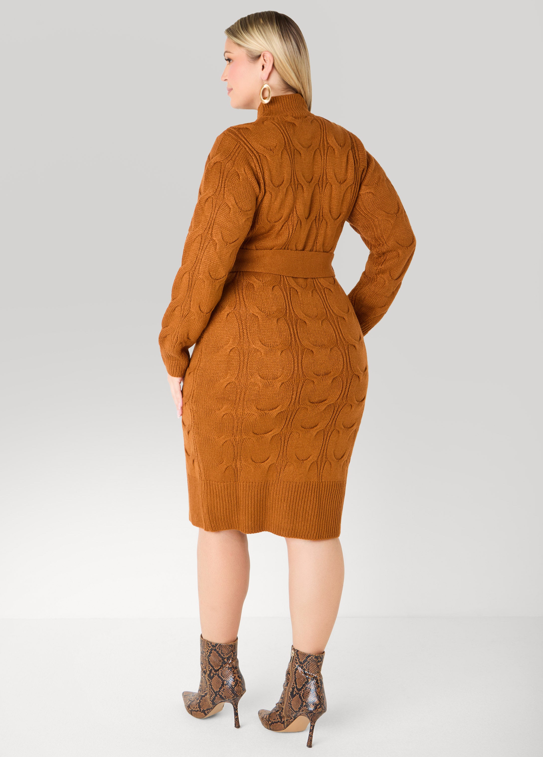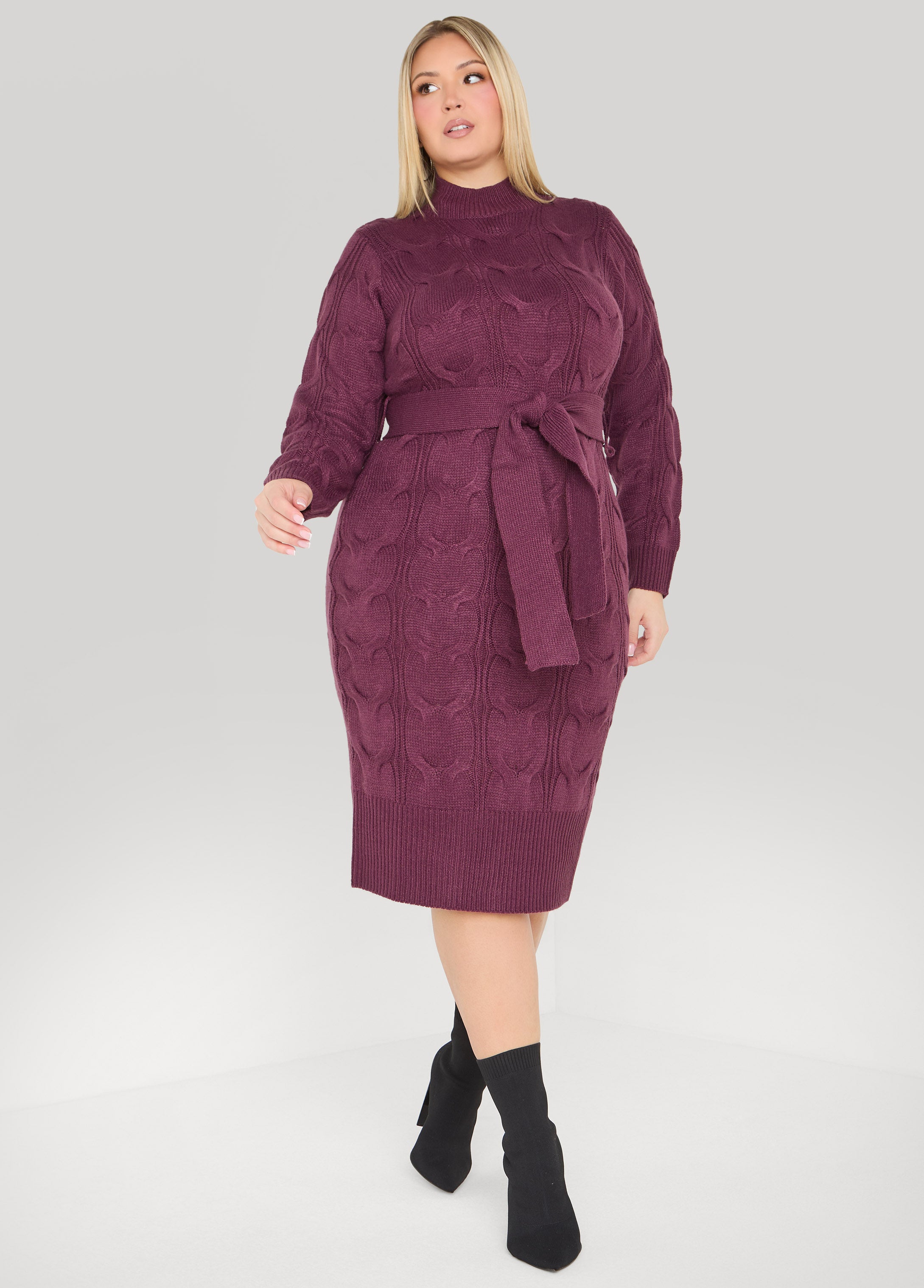 Welcome #sweaterszn in style thanks to our cable knit sweater dress designed with a waist-cinching belt.