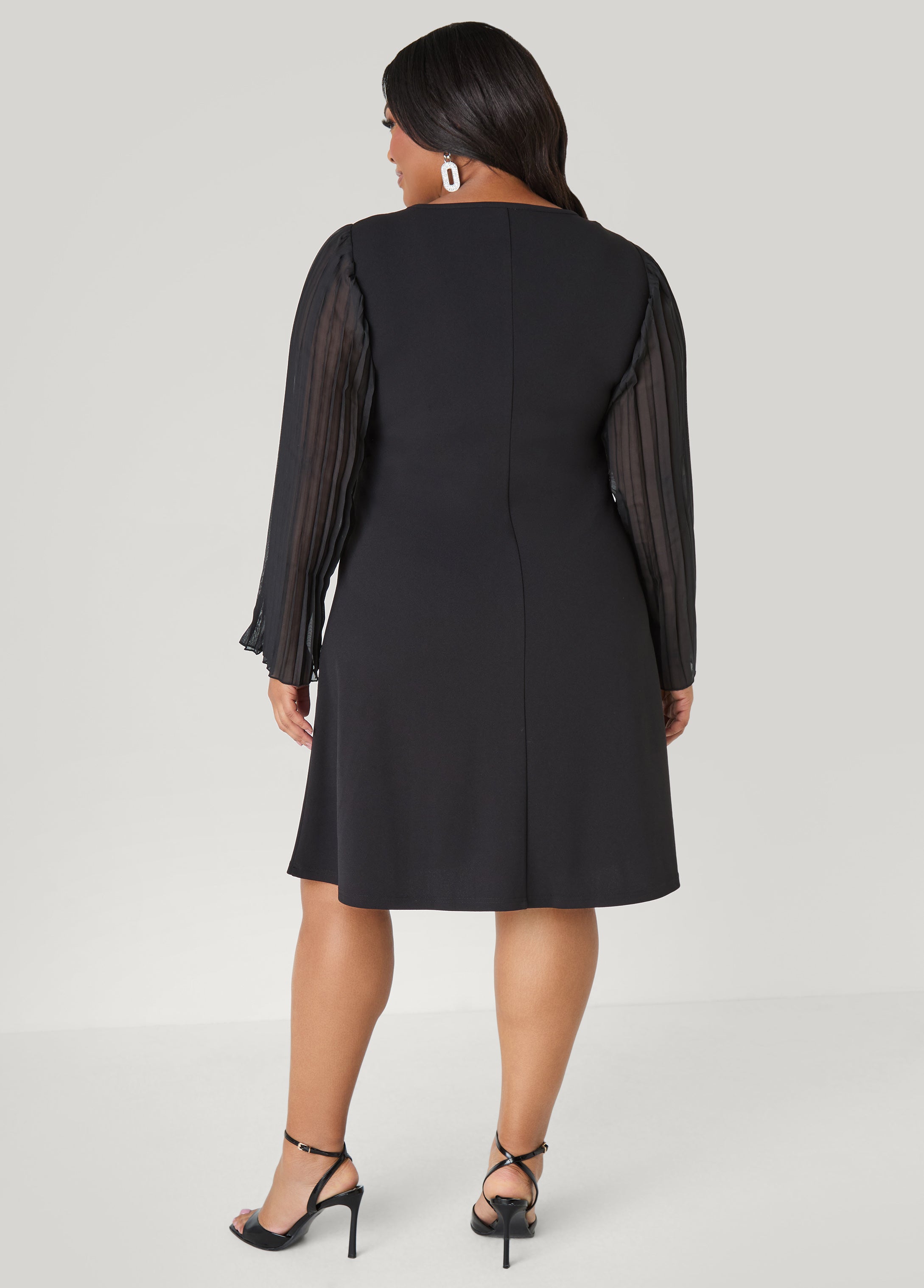 A little flounce & a little flirt, this stretch-crepe dress with pleated georgette sleeves and an A-line skirt was made for party season.