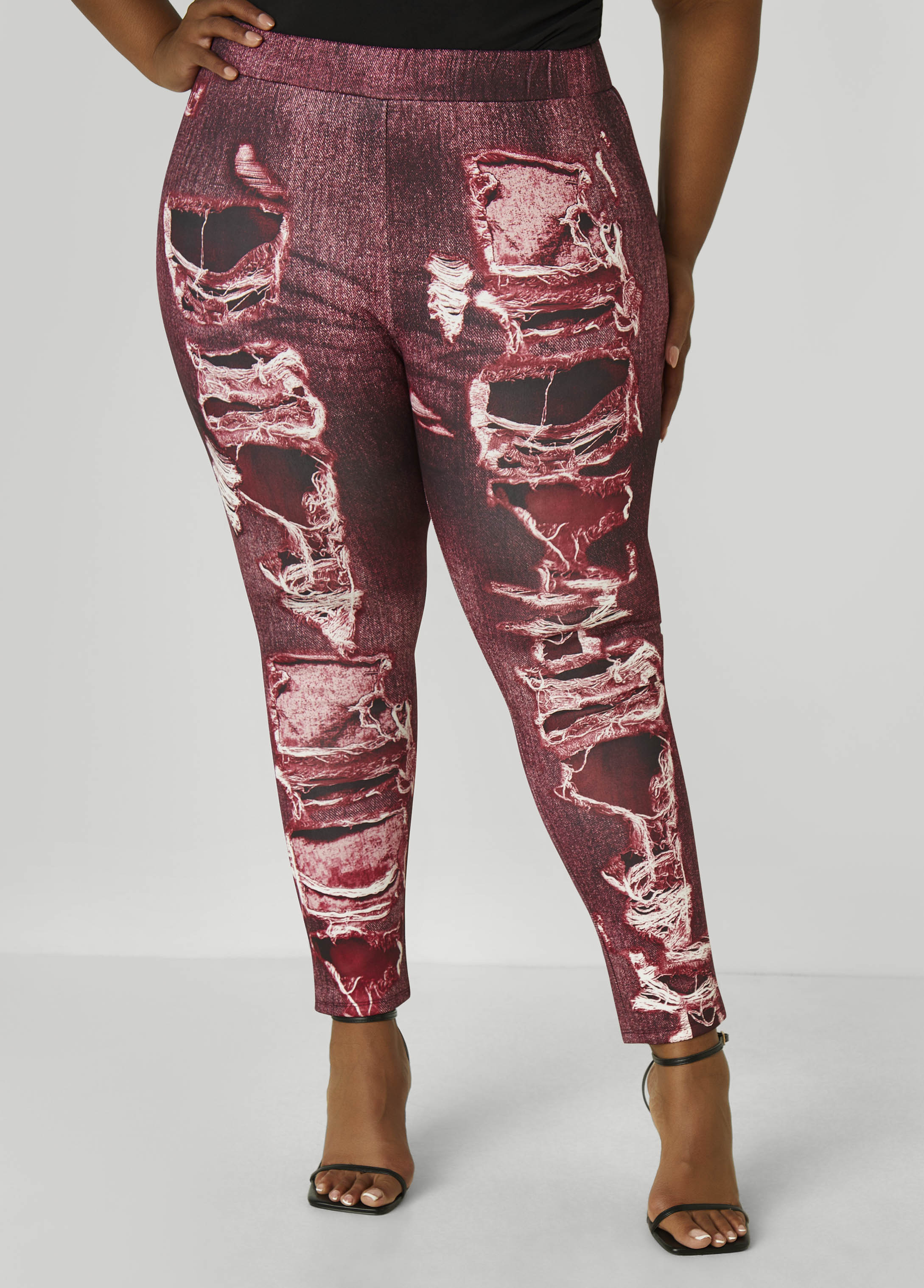 These denim print leggings bring the jean look without the button struggle. Stretch-knit keeps it comfy, the mid-rise fit hits just right and the pull-on style means you're out the door fast. Pair with the matching shirt and fake the fit like a pro.