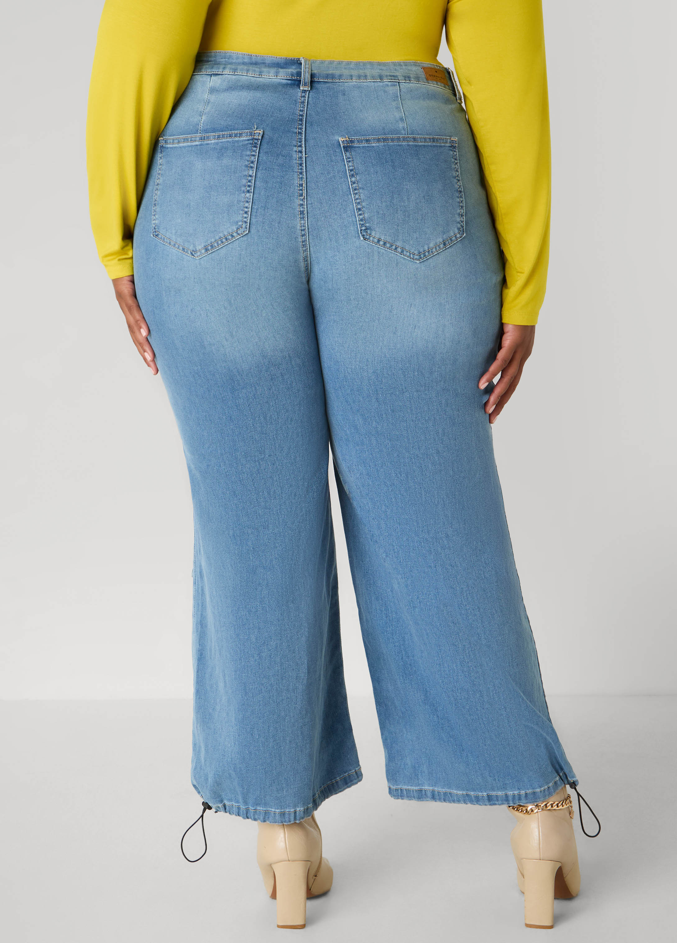 From wide-leg to joggers & back again, enjoy two ways to wear in these high-rise wide-leg jeans outfitted with drawstring ankle cuffs that offers tons of styling options because your clothes she be as versatile as you!