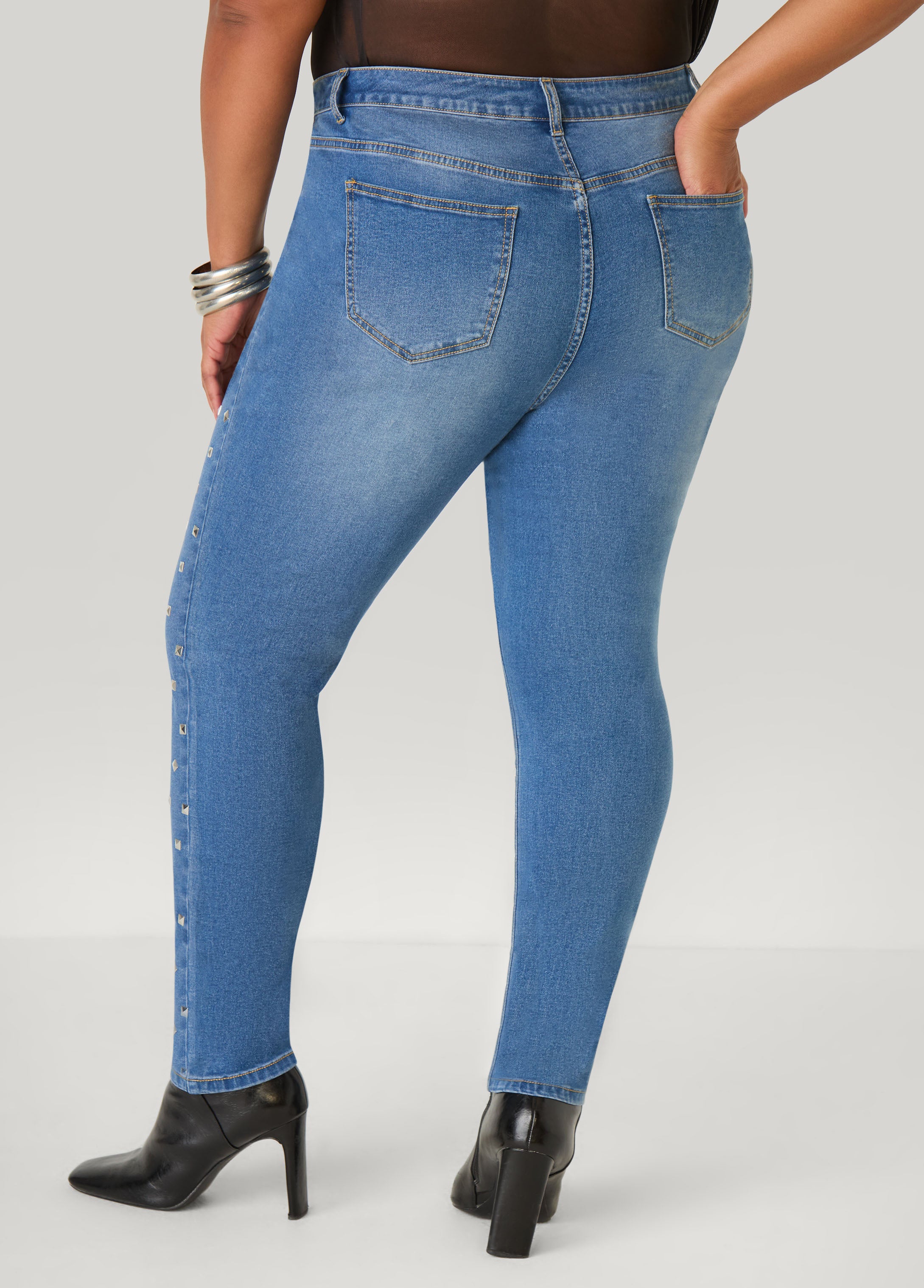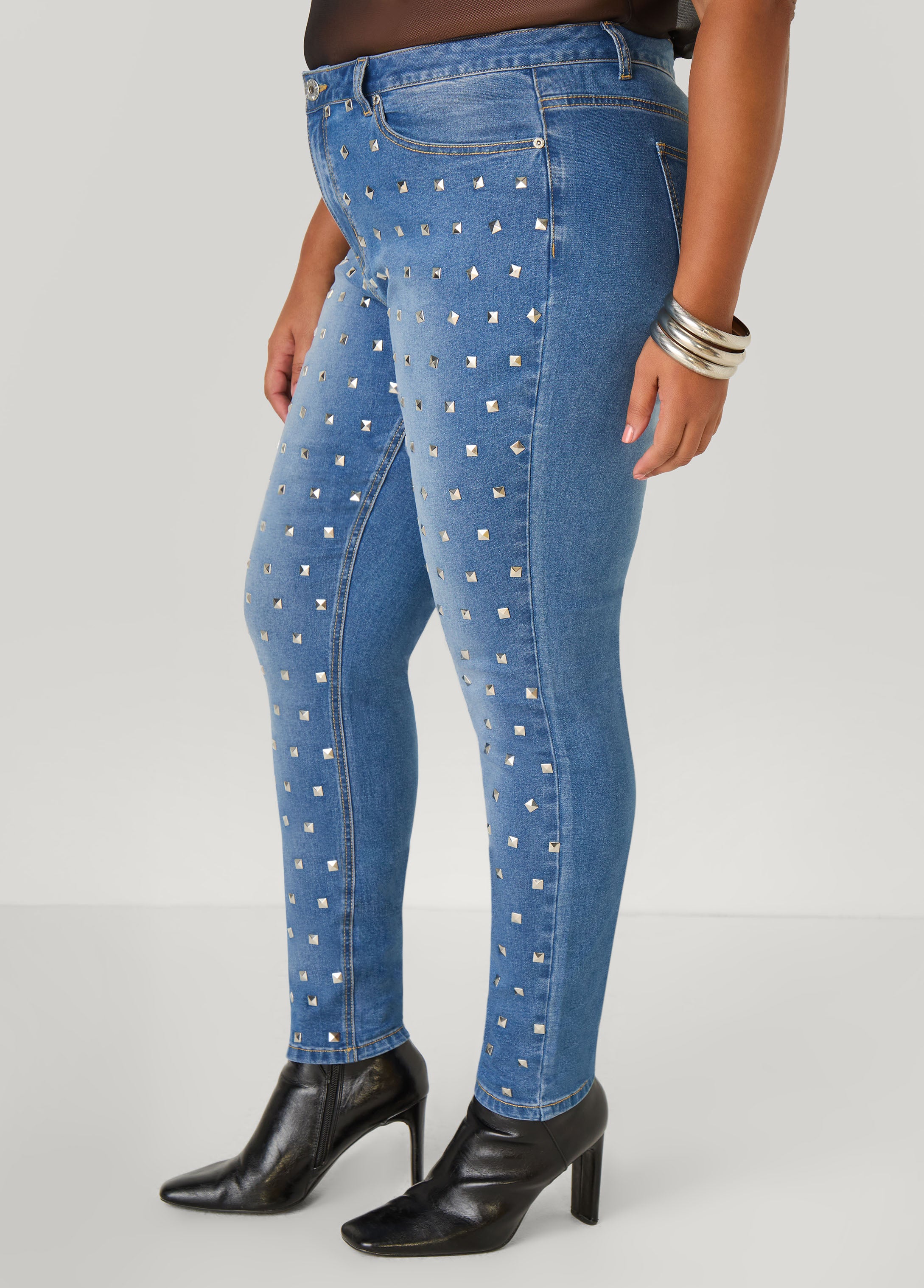 High-rise skinny jeans with studs that turn everyday into a little thrill.