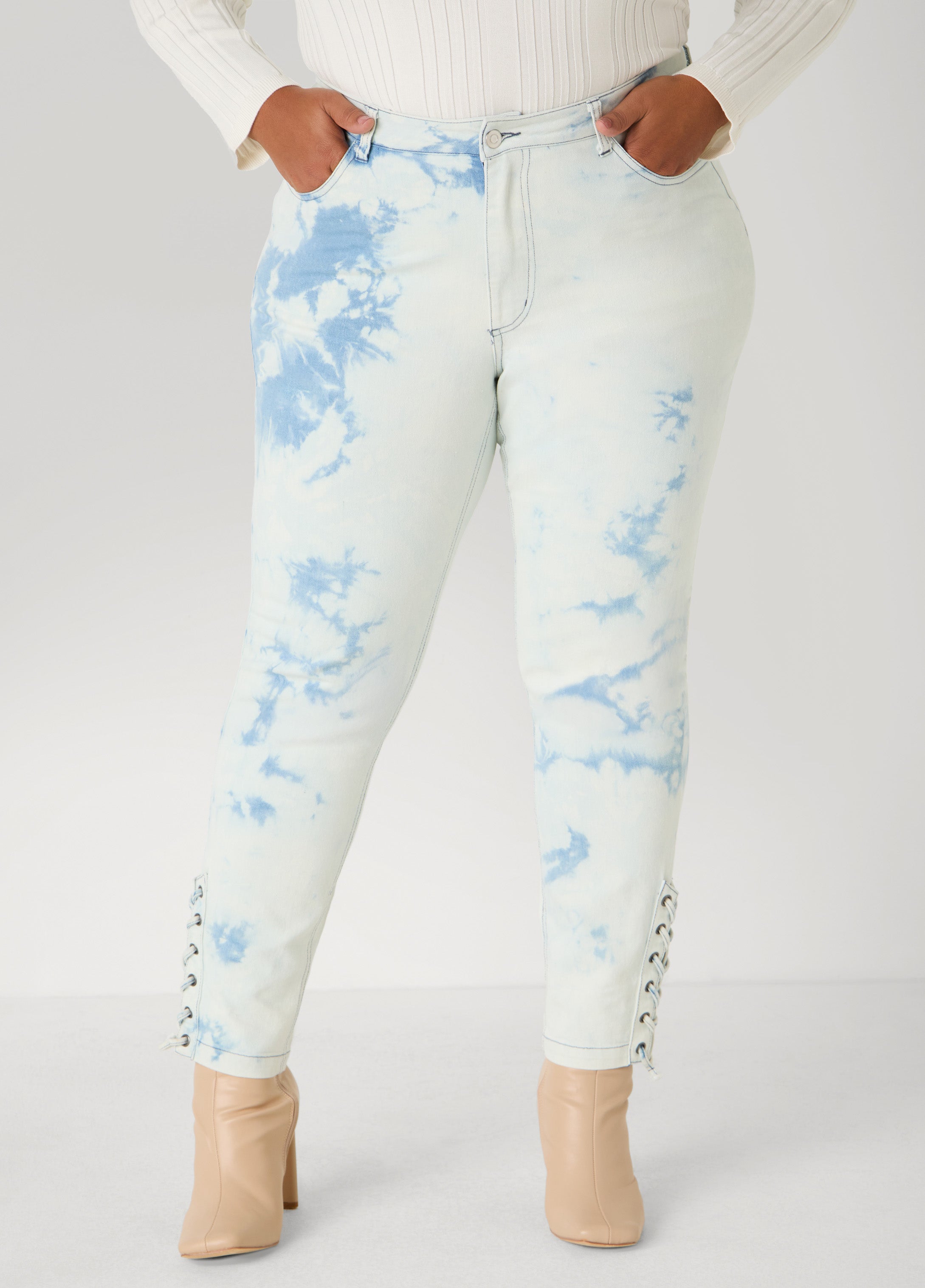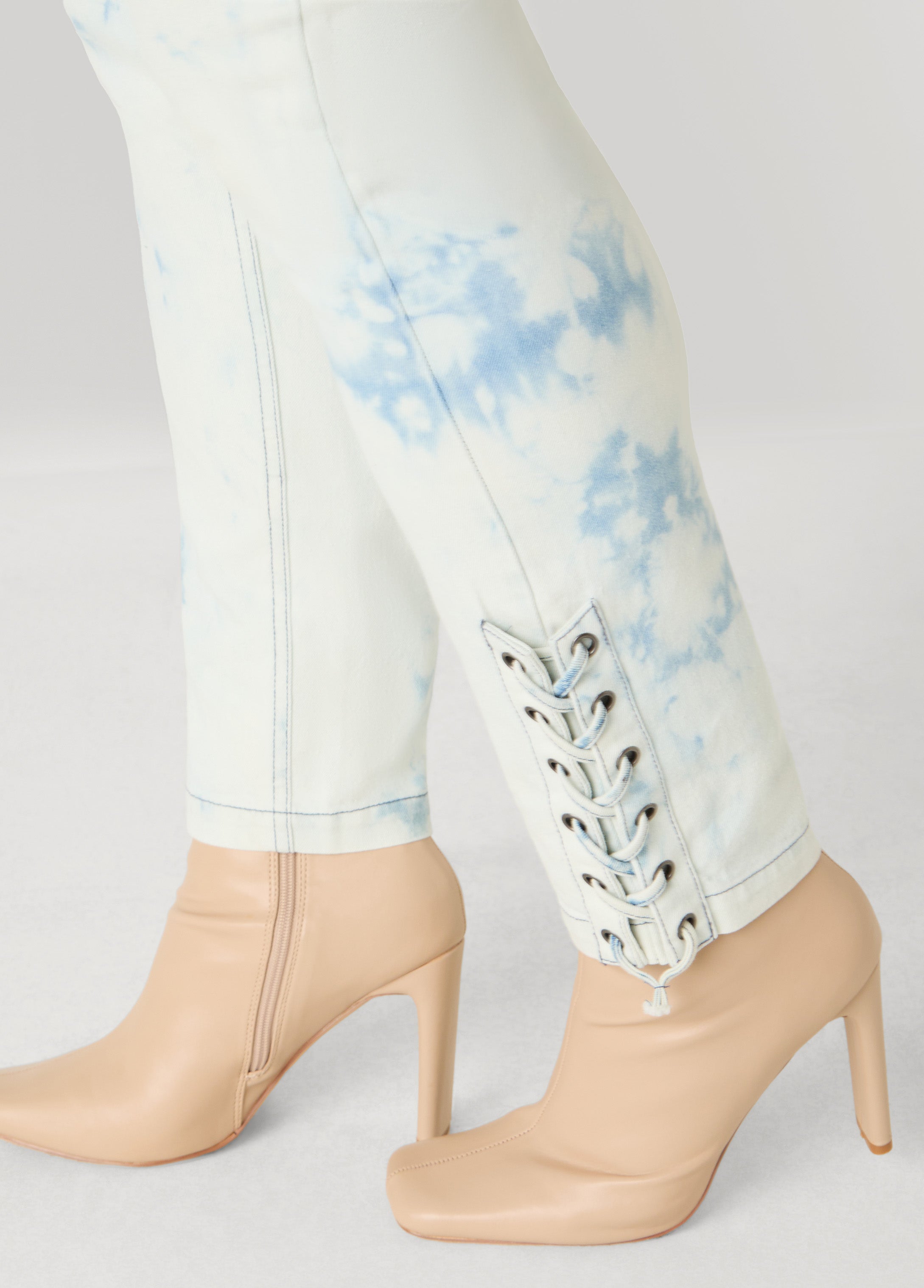 These acid wash skinny jeans lace up at the ankles and hug you like they know you run the show. Slip them on and suddenly every step is flexed, every glance is caught and the world is just following your lead.