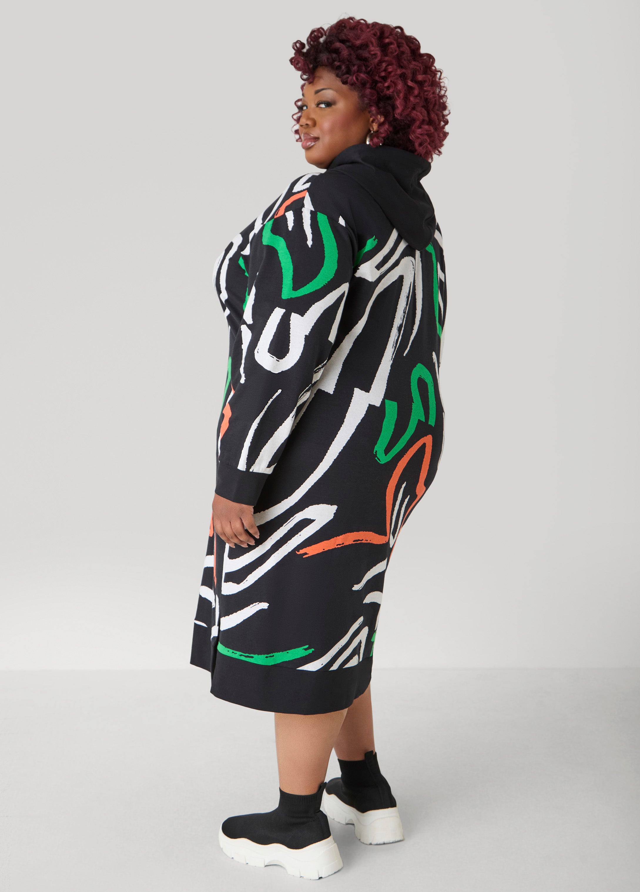 Arts-and-crafts meets off-duty cool. This brushstroke print French terry dress keeps it chill with a drawstring hood and side slits for extra ease.