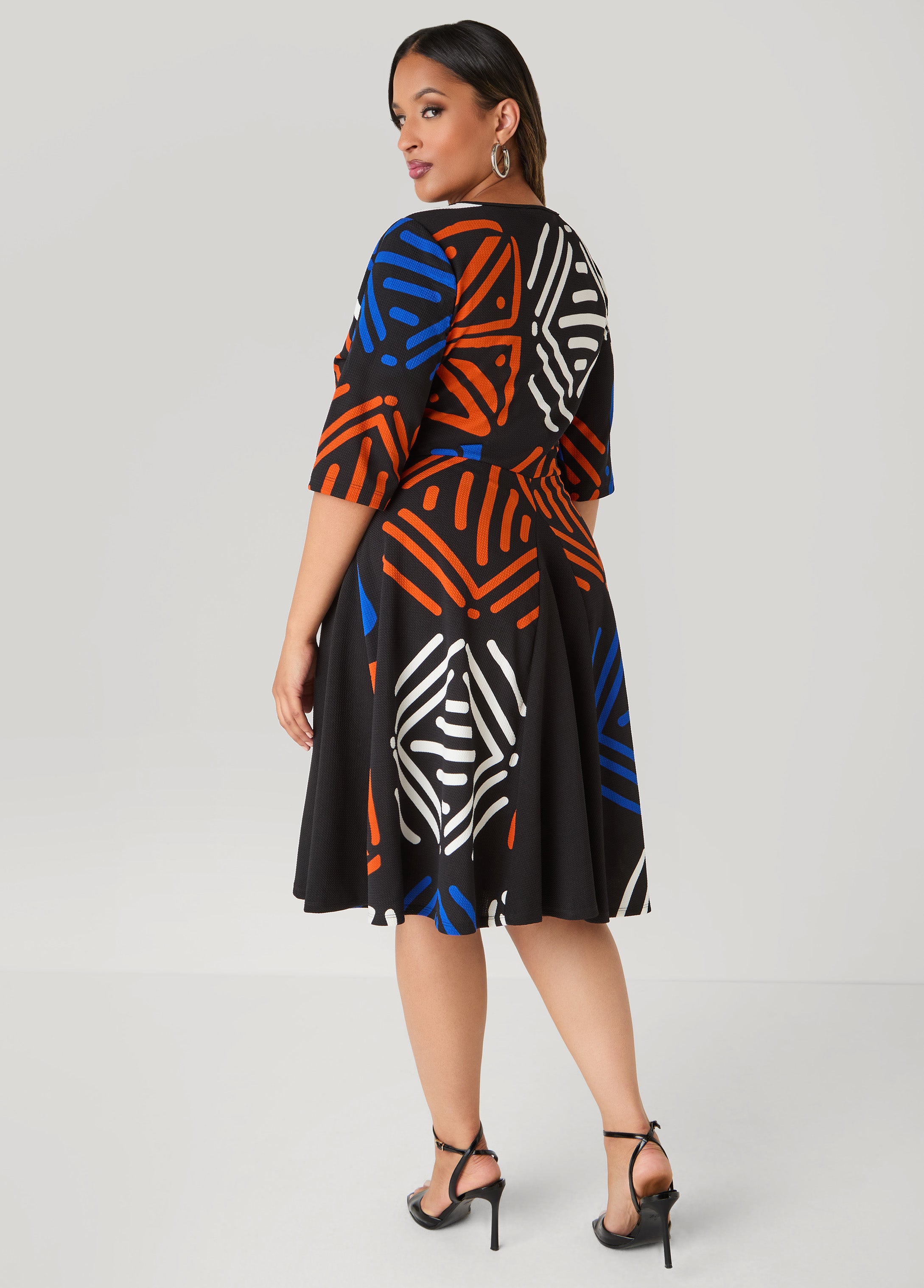 Abstract print, clearly fashionably fabulous, you are a vision in our textured-knit dress designed with a-line skirt & multi-colored pattern.