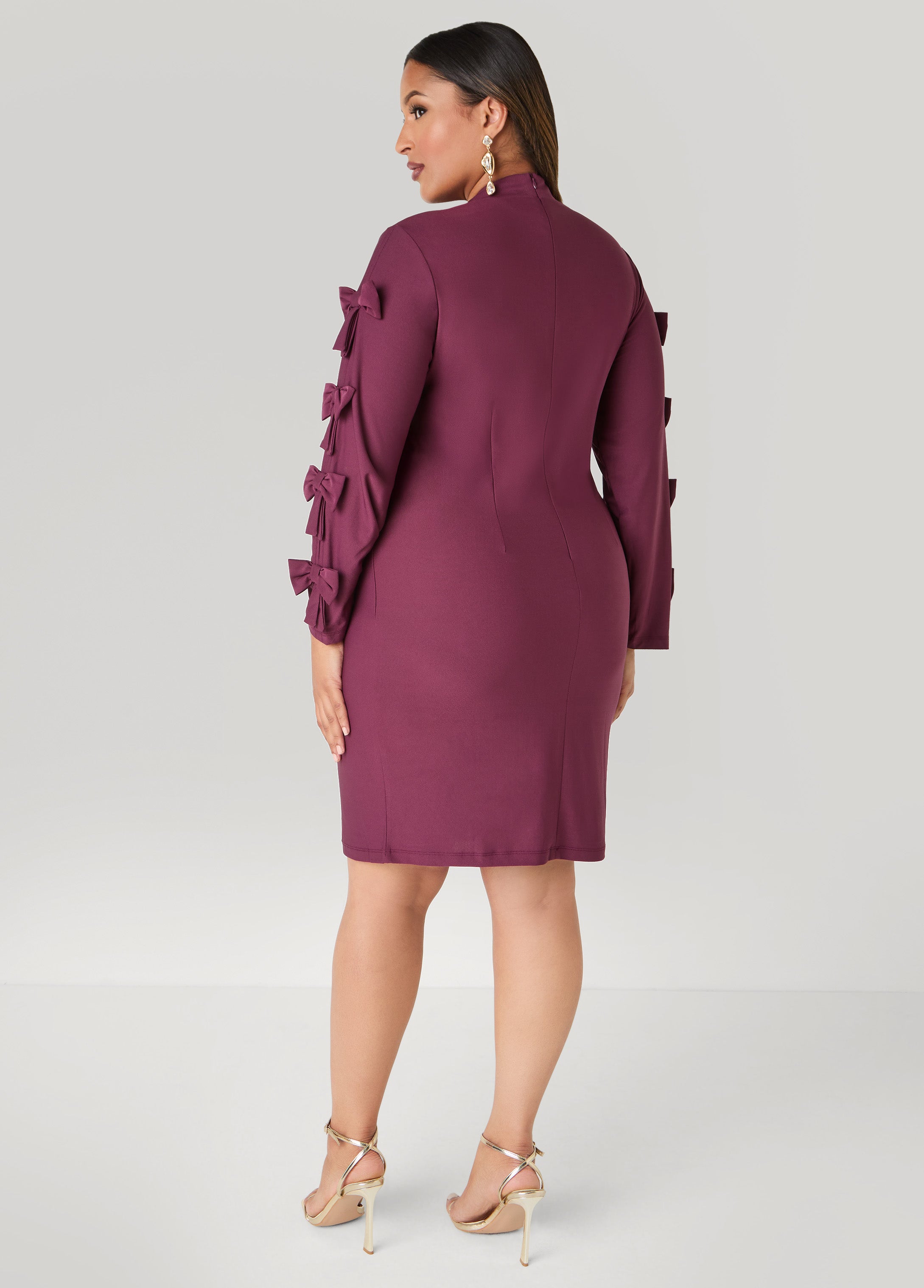Bows & cutouts play peek-at-you down the sleeves of this stretch-knit bodycon. The mock neckline keeps it cool as the fit shows off your moves and steals every spotlight in the room.