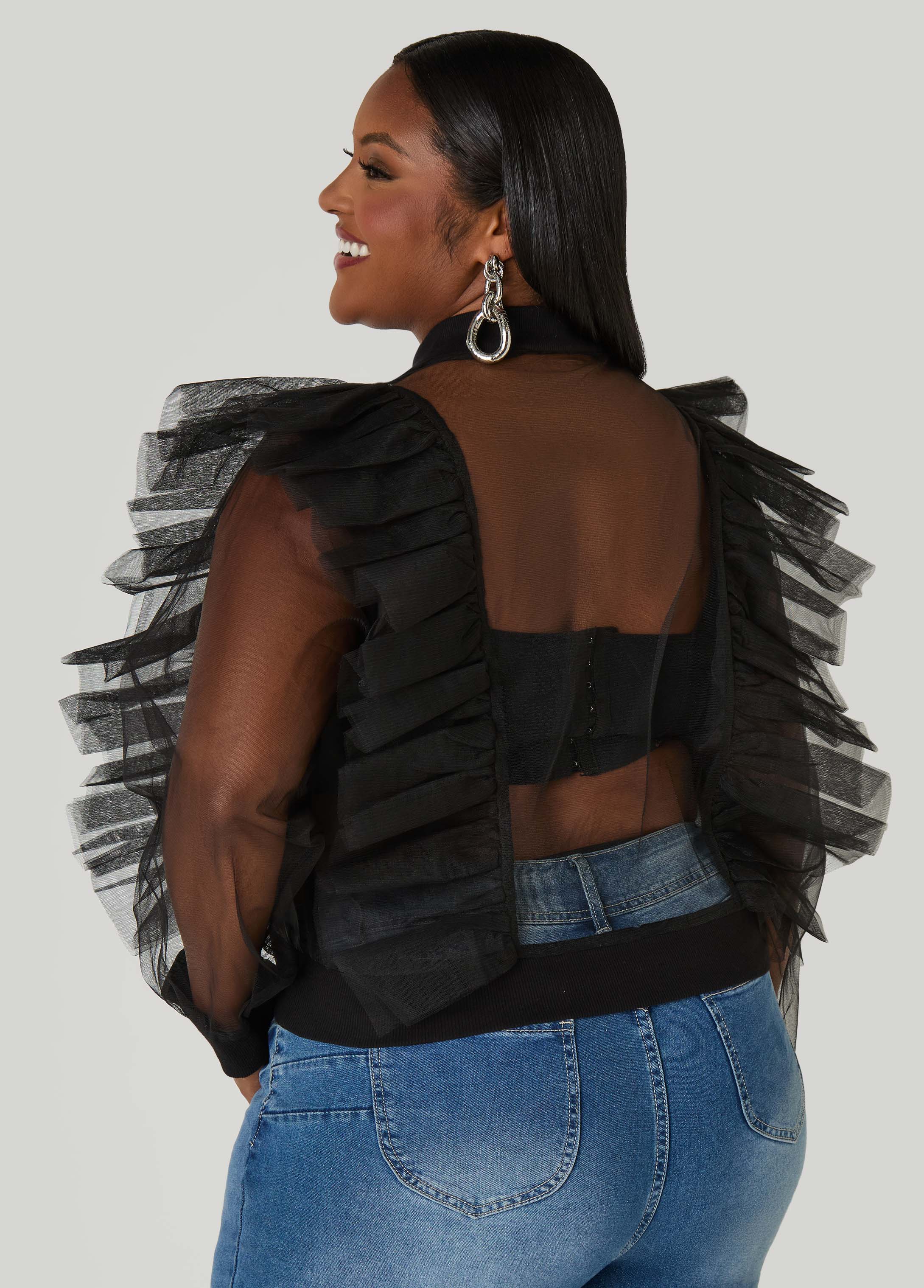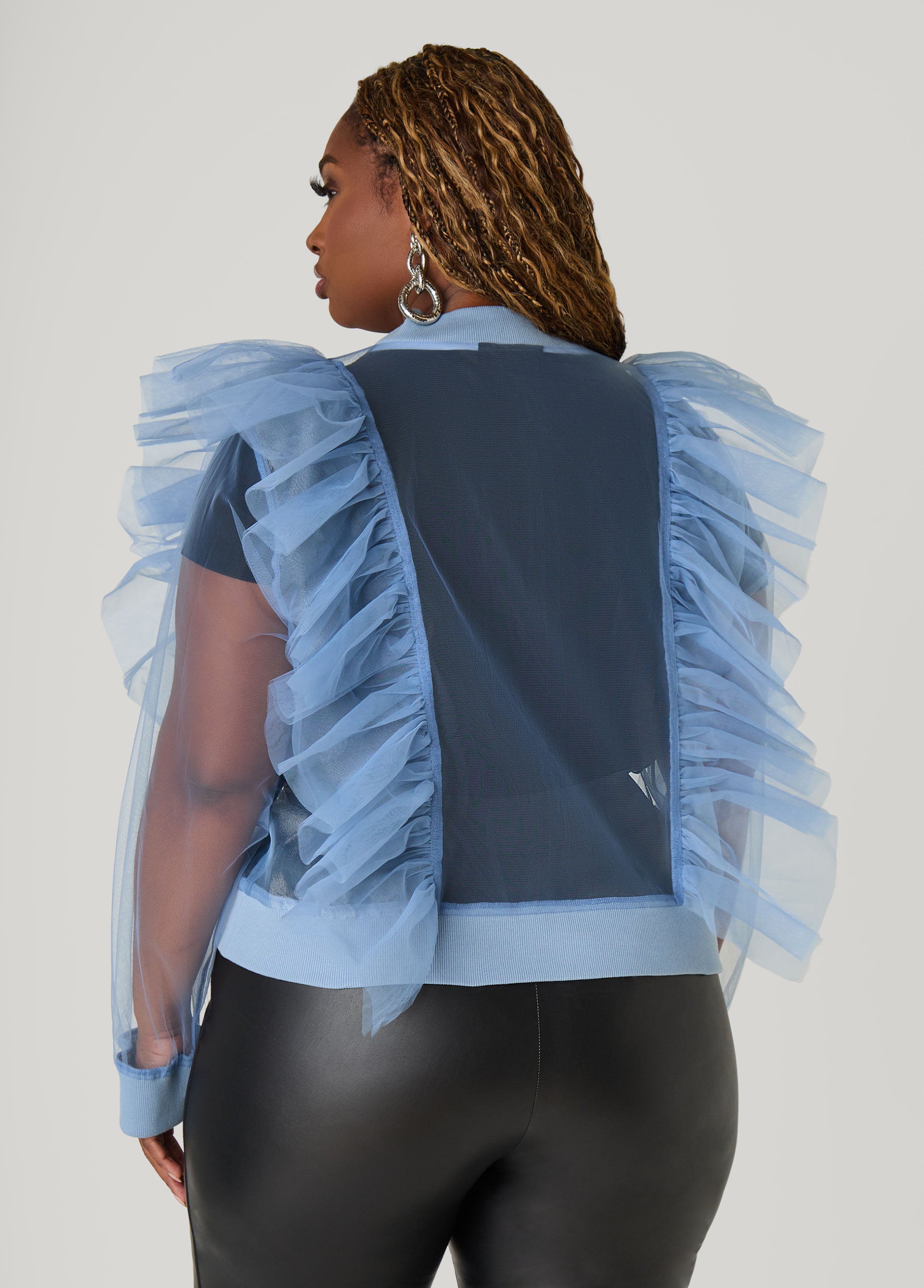 Tiers of tulle take over this sheer (& sexy) jacket designed to be worn however you desire.