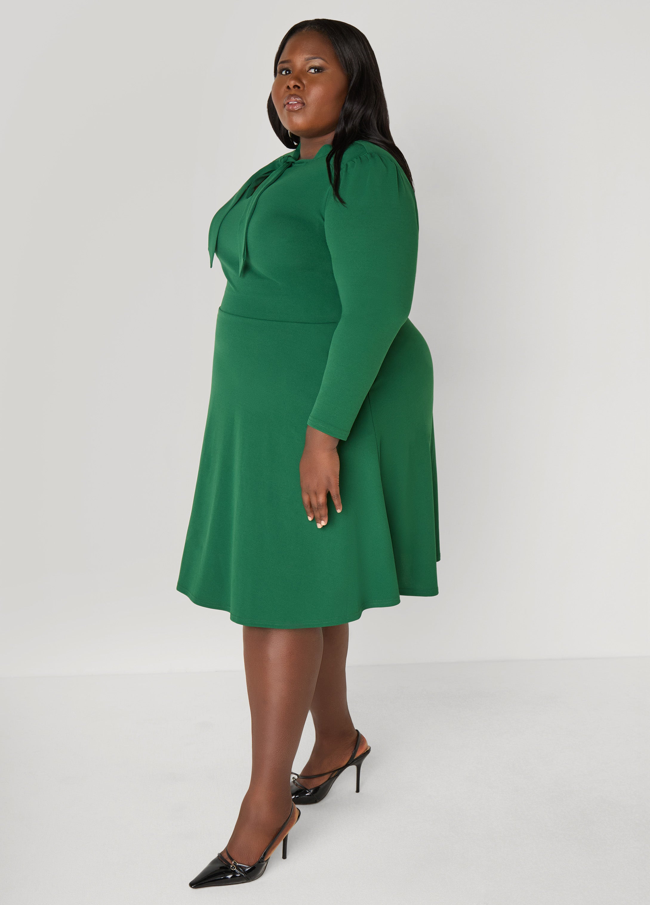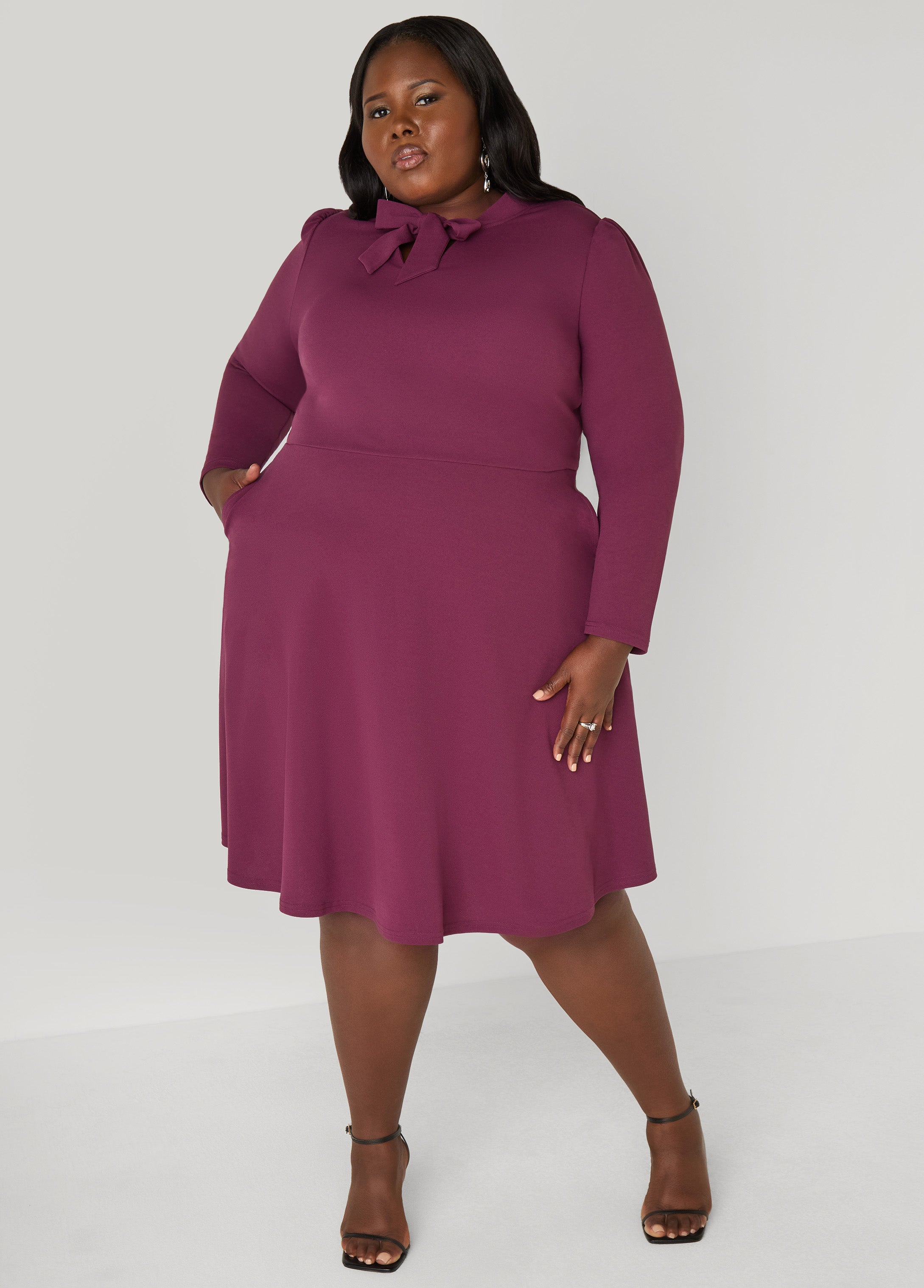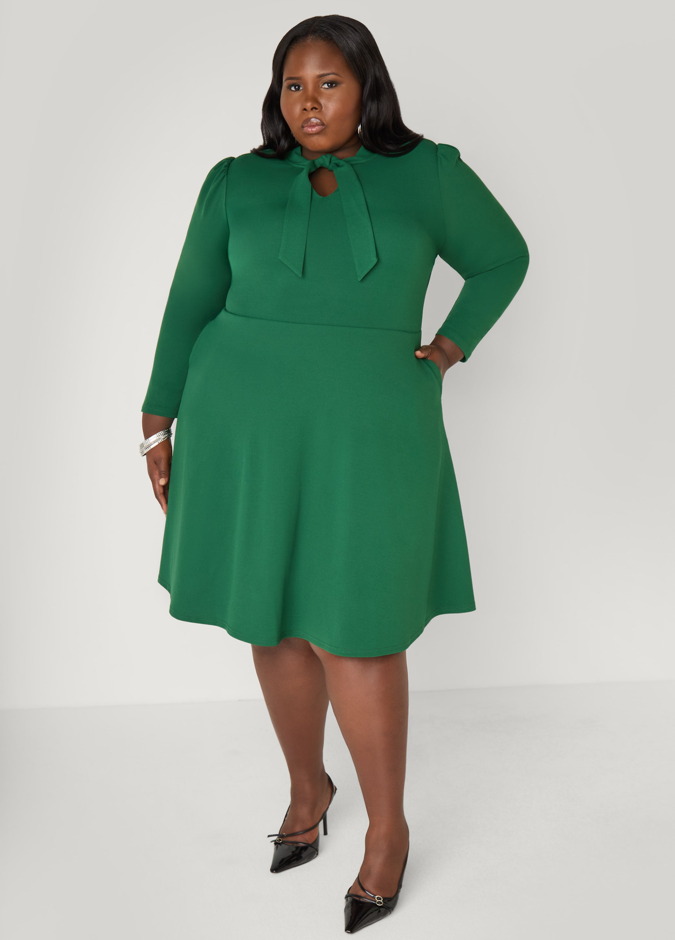 A cutesy cutout is tied into place for a wink of mischief while puffed sleeves add extra personality to this dress. Slip it on, tuck hands in the side pockets and let the A-line skirt do its twirl.