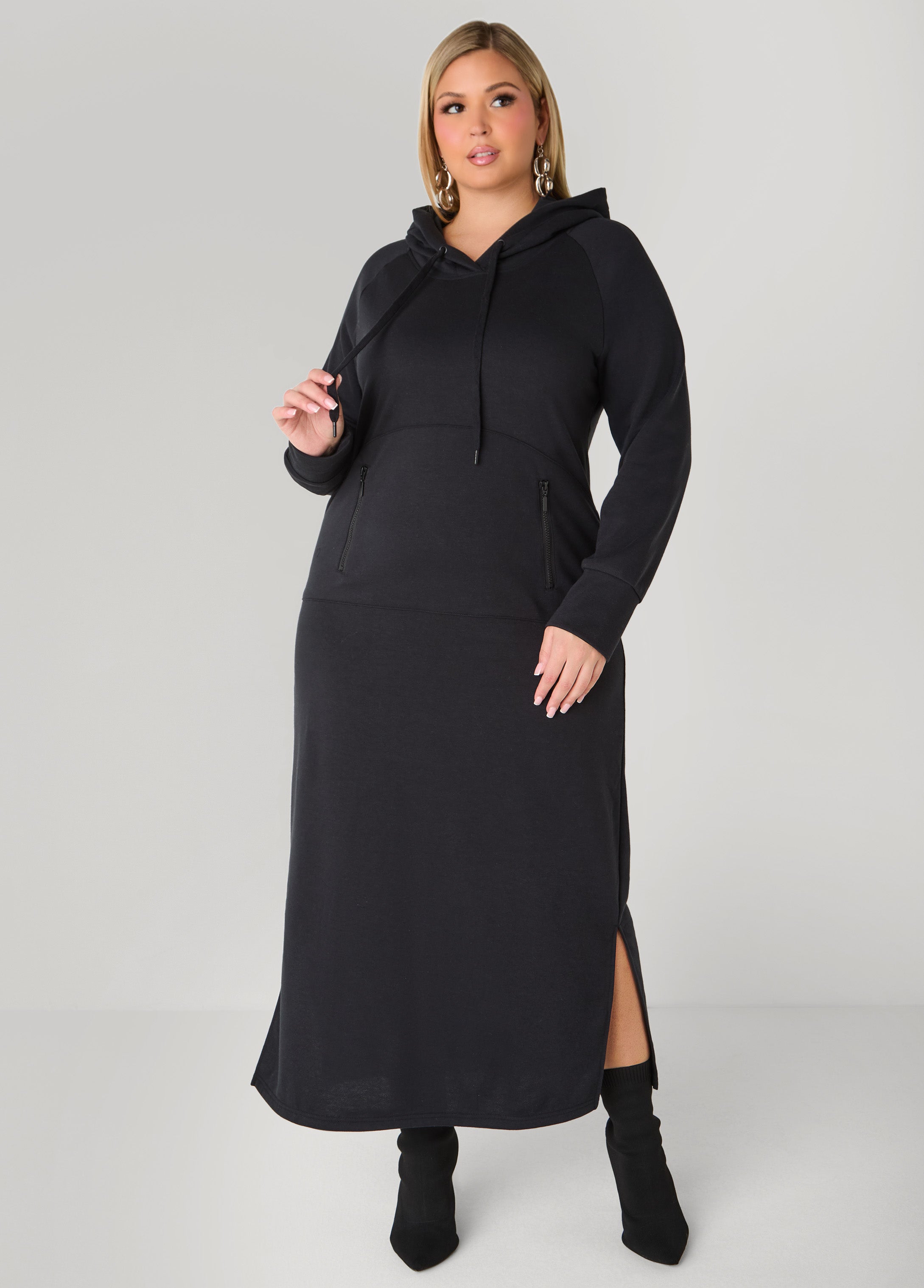 Laidback luxe is the name of the game on our French terry maxi dress. A drawstring hood, zip pocket and side splits bring just the right mix of chill and street-style aesthetic.