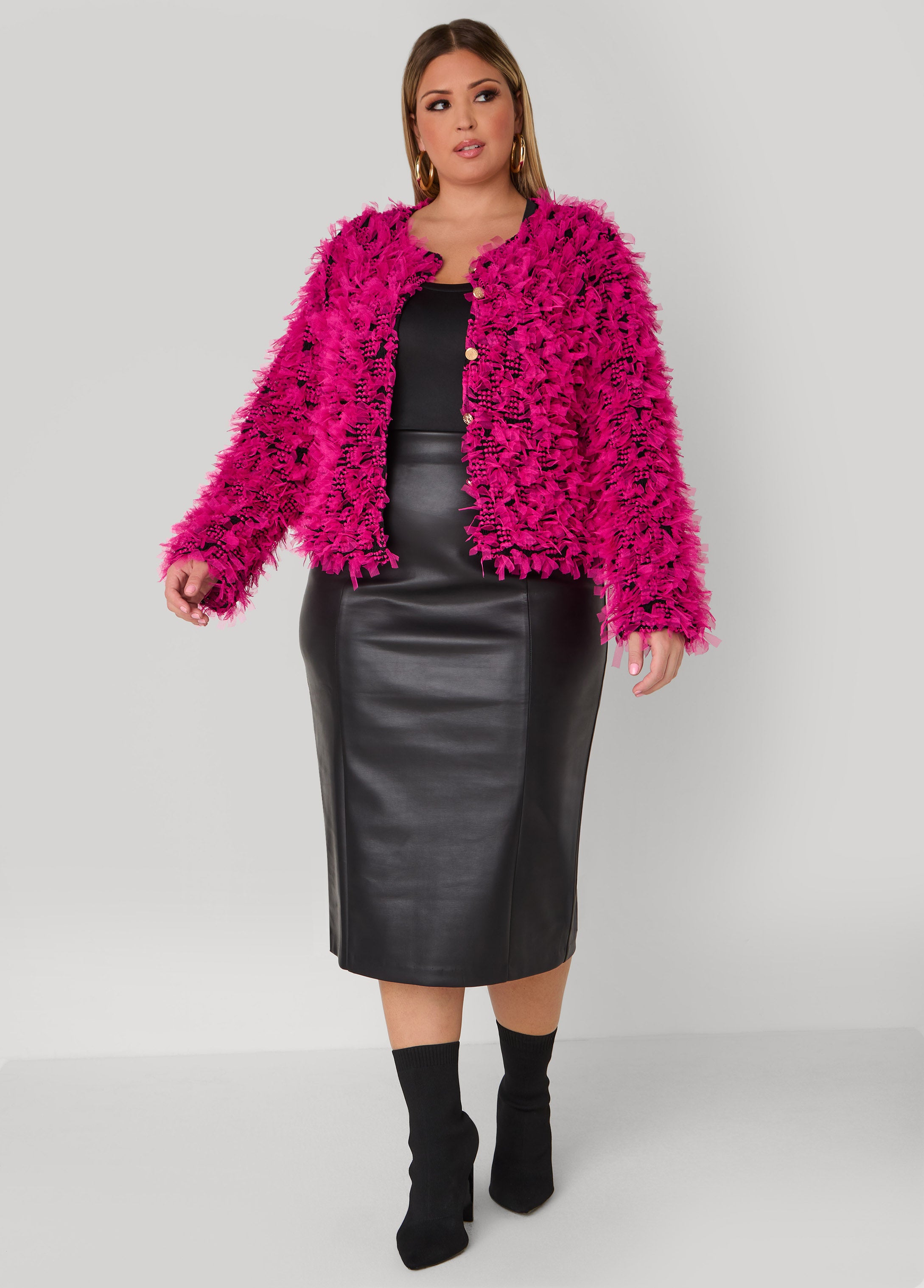 Edgy yet effortless, this mesh jacket brings texture and movement with fringed elements that are sure to catch a look (or 10!). Layer it over anything from sleek dresses to casual denim for a statement-making finish that’s equal parts bold and breezy.