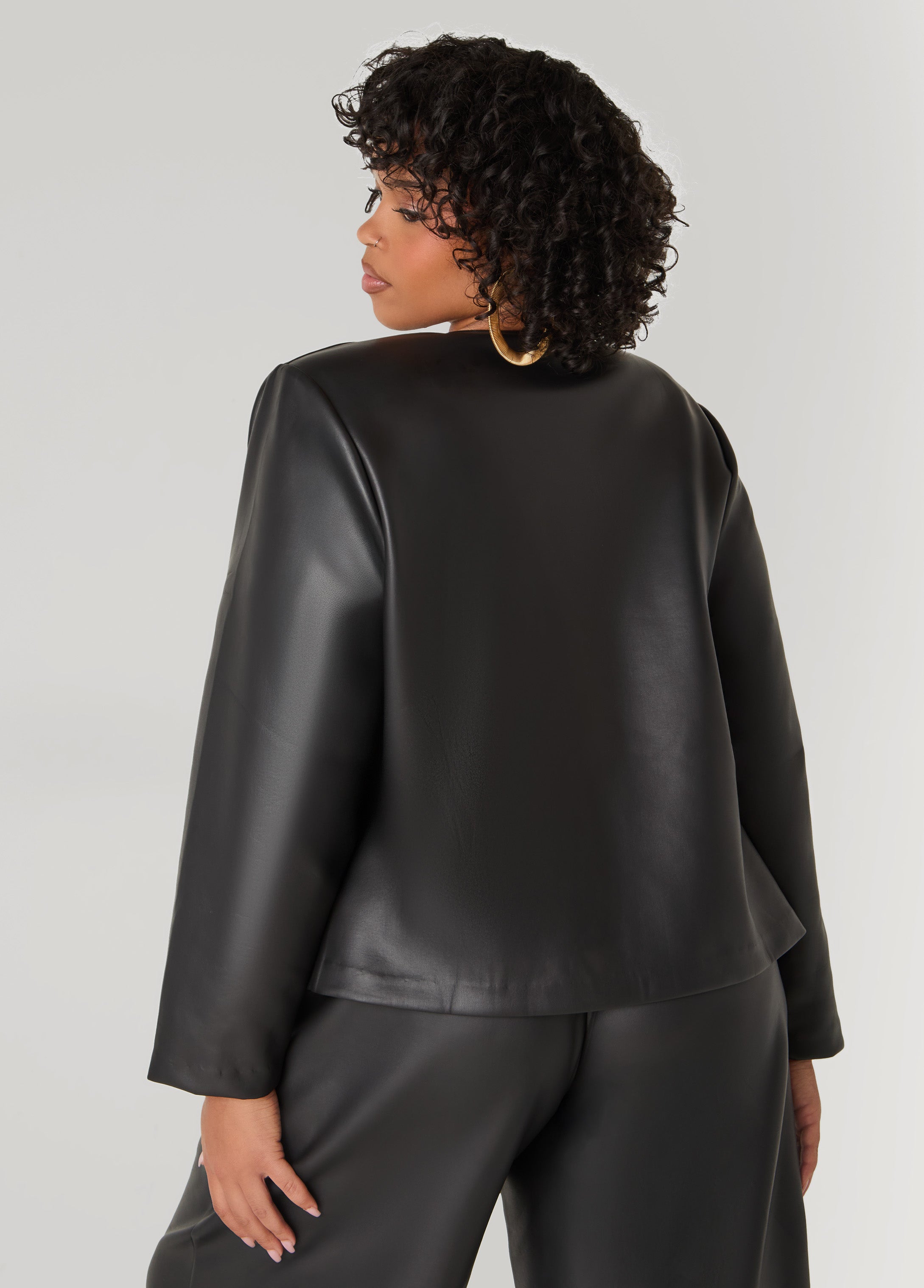 This structured faux leather jacket is designed with shoulder pads and gold buttons that don’t just fasten they flex. Pair with the matching shorts and suddenly your fit isn’t just seen it’s remembered.