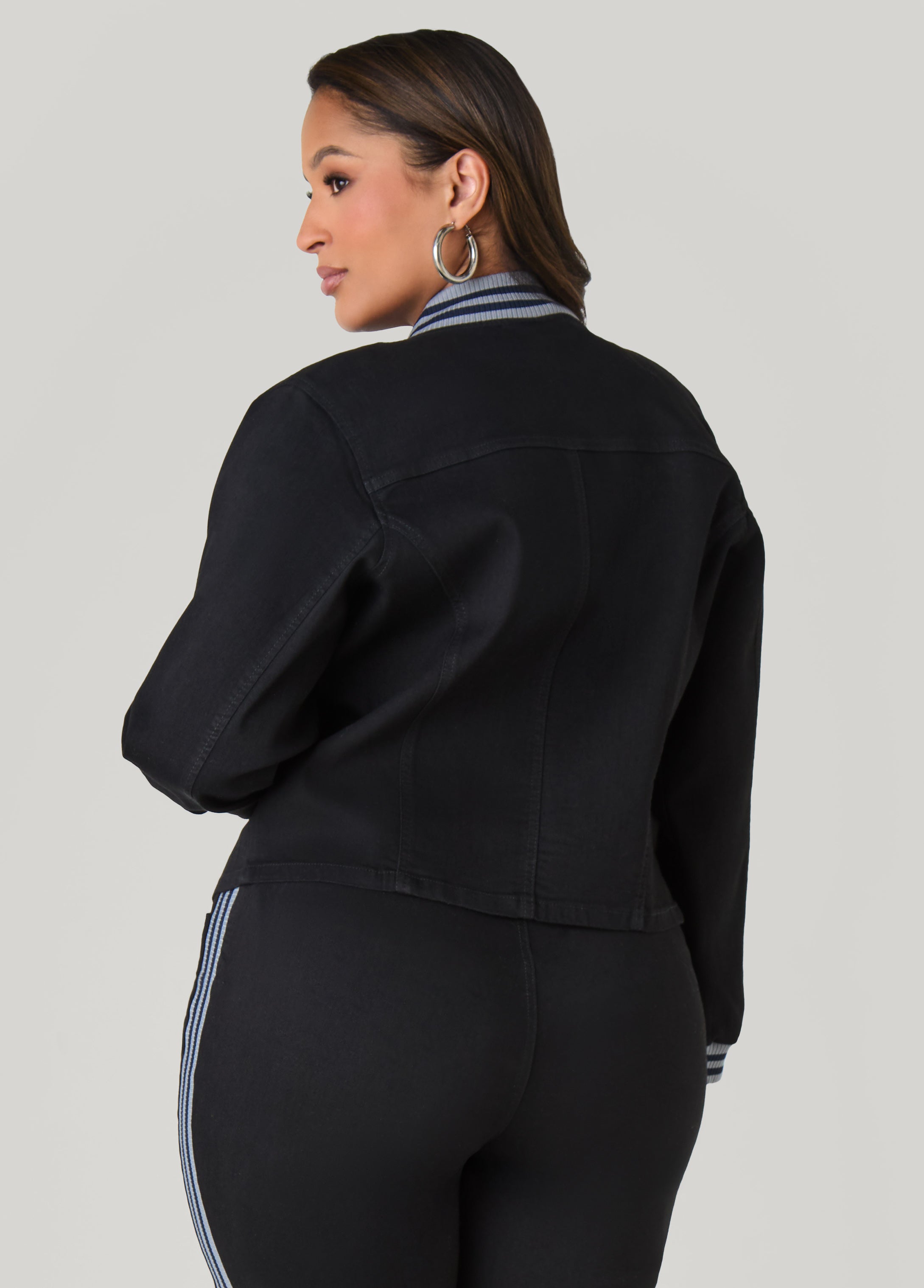 This denim jacket punches up your lineup with striped trims and a clean zip front. Pair it with the matching jeans for a trendy two-piece set.