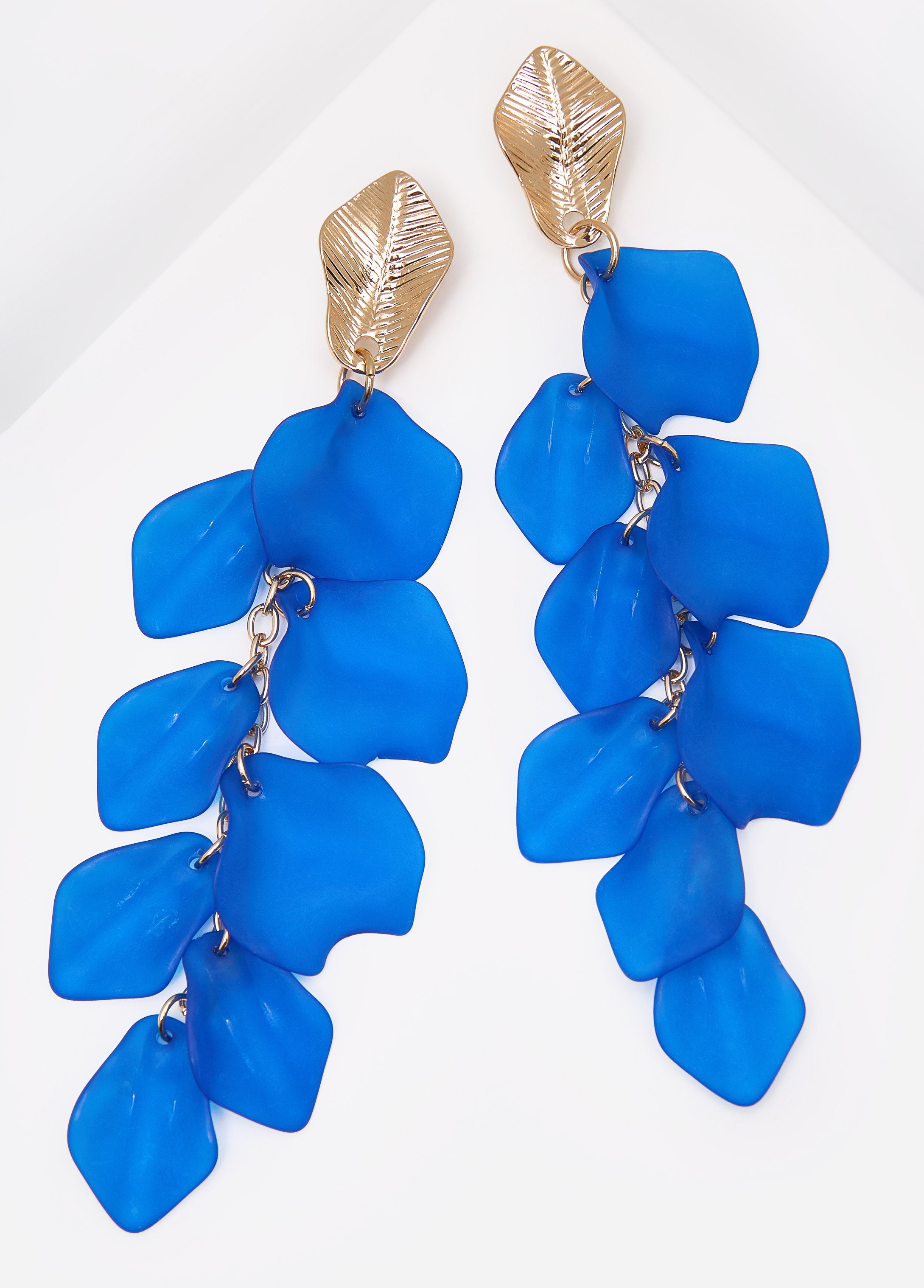 Matte petals meet textured gold-tone metal for earrings that swing, shine and are instant scene stealers.