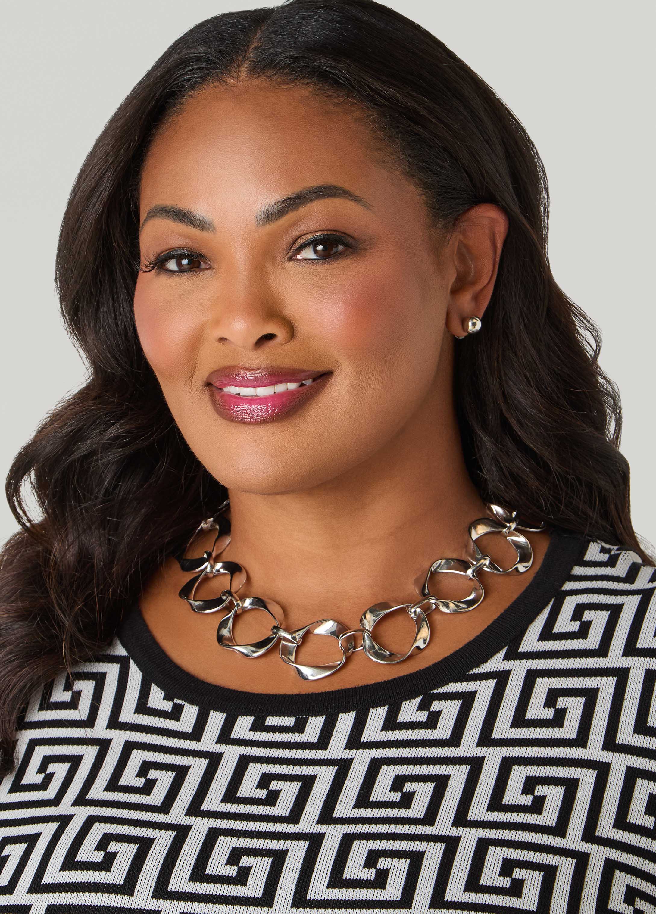 Sleek & sculptural, this twisted silver-tone chain link necklace adds a touch of luxe to any outfit.