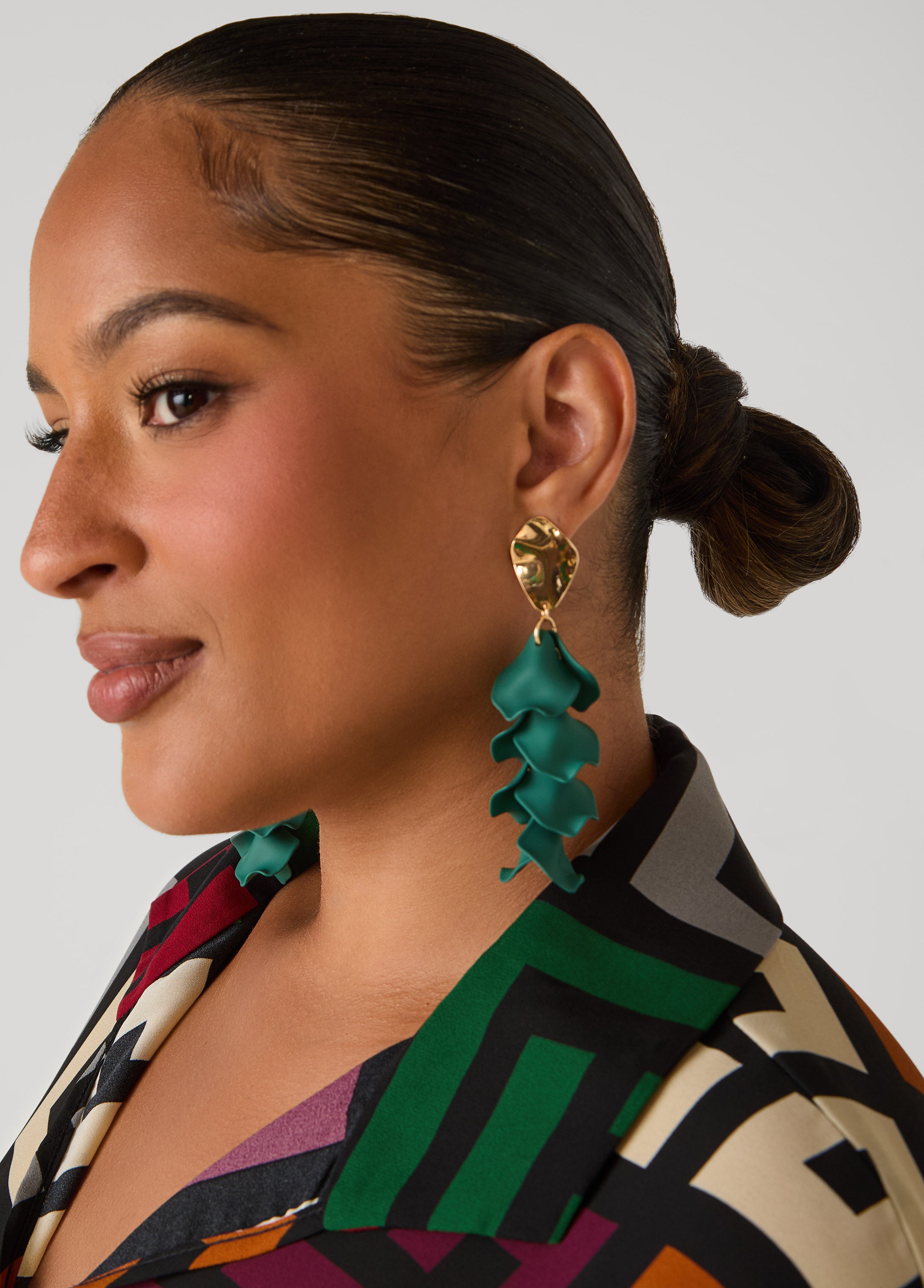 Matte petals meet hammered gold for earrings that swing, shine and are instant scene stealers.