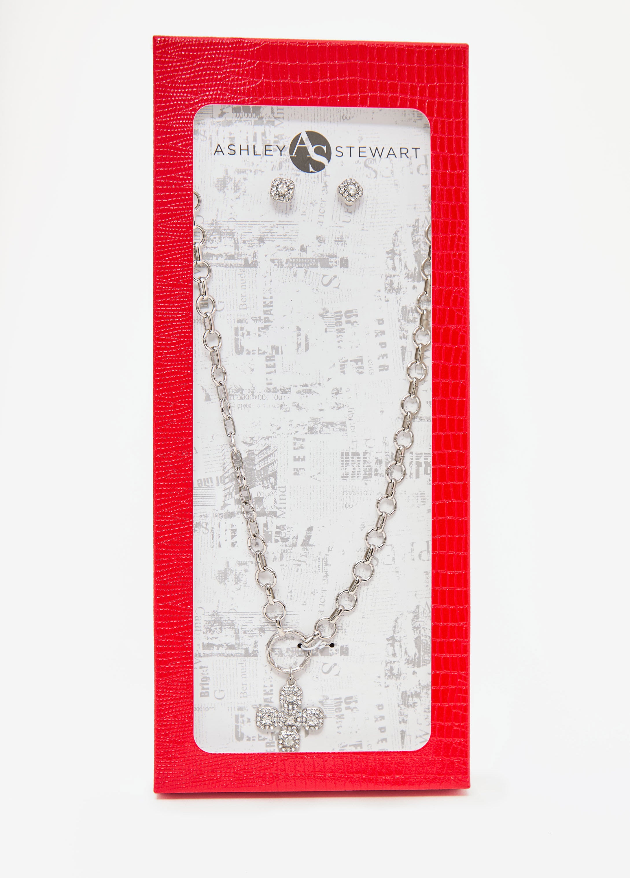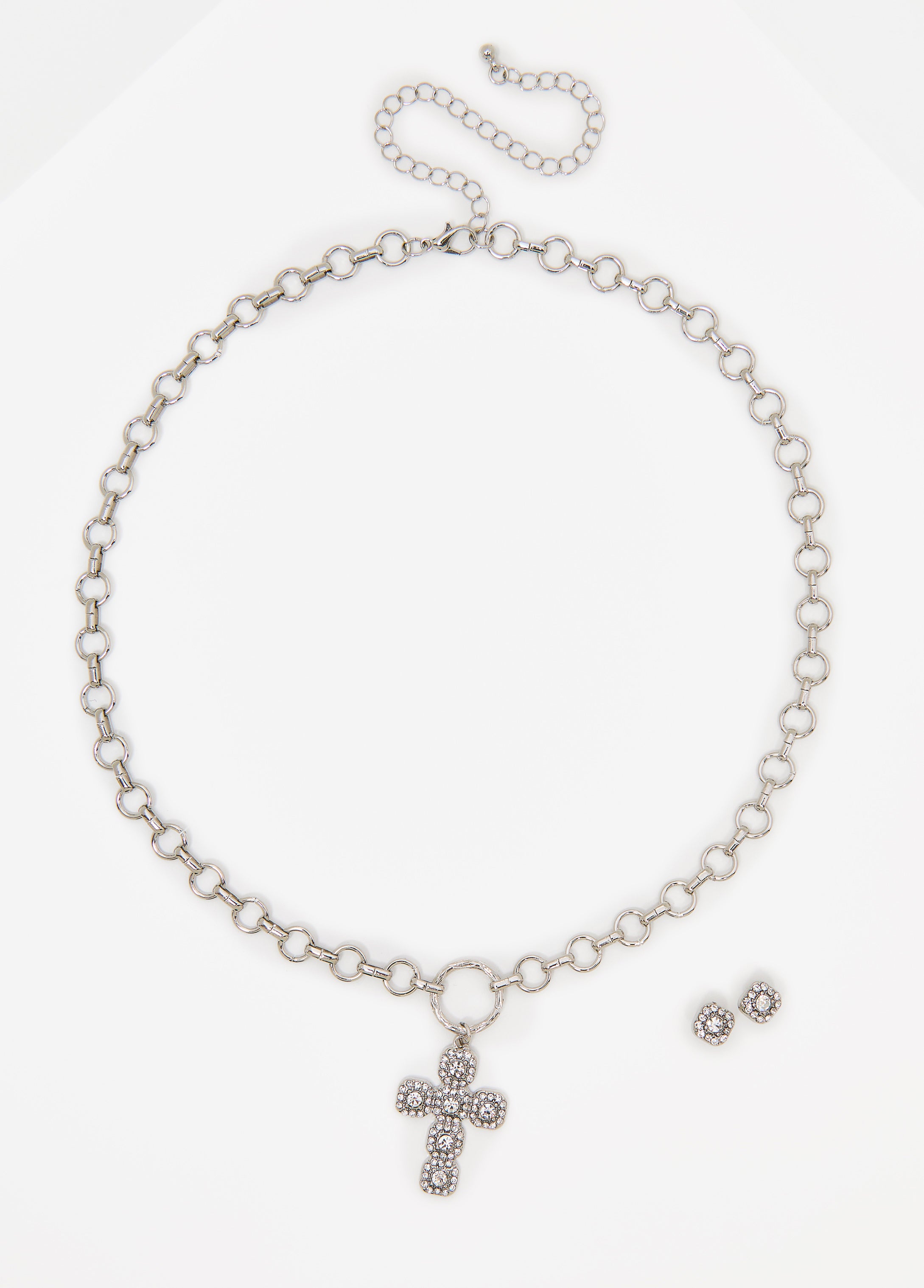 A little shimmer, a lot of presence. The cross pendant of our necklace catches the spotlight without trying thanks to pavé crystals that gleam. Match with the accompanying earrings or wear separately, the choice is yours.