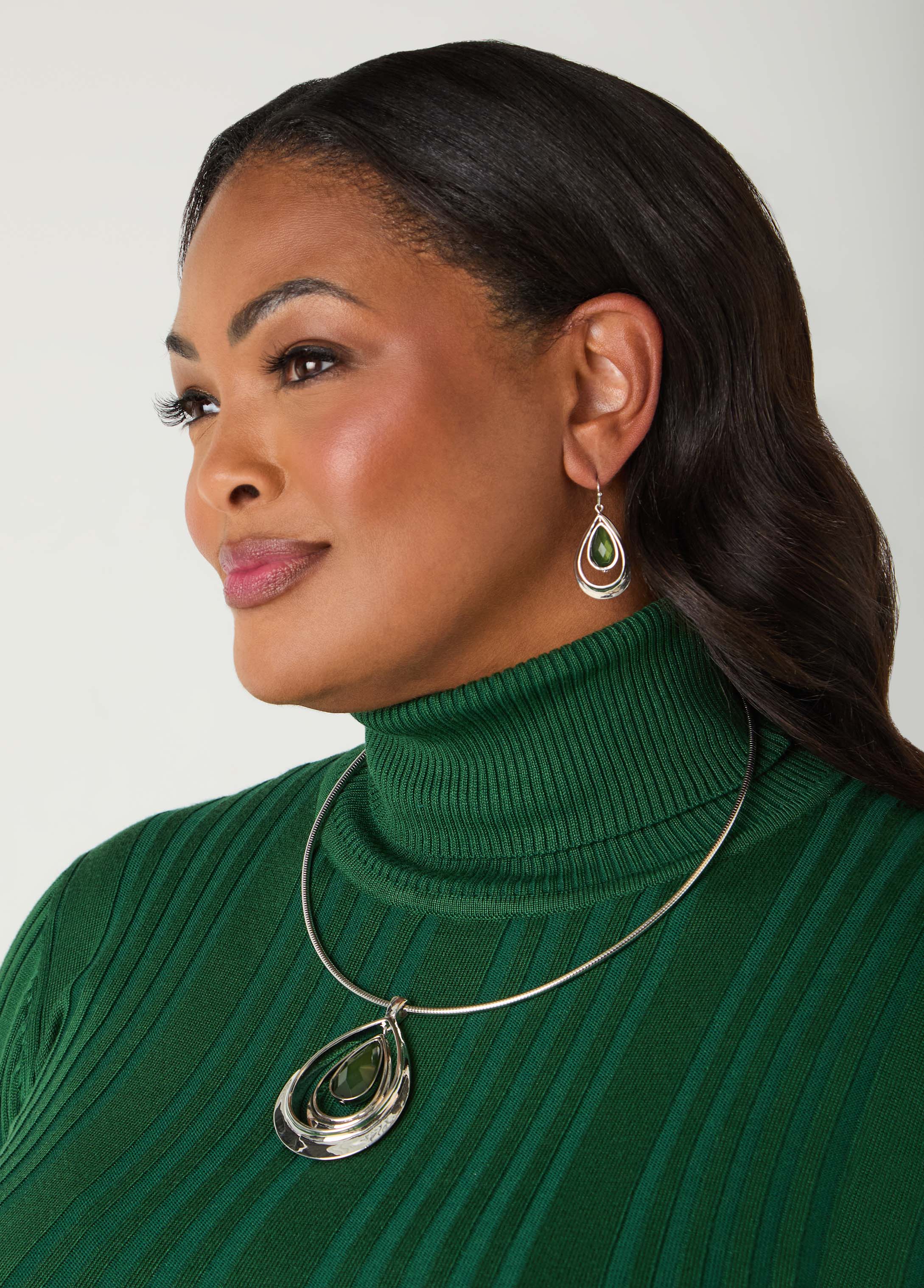 Statement Green Jewelry Teardrop Necklace Trendy Matching Silver Set