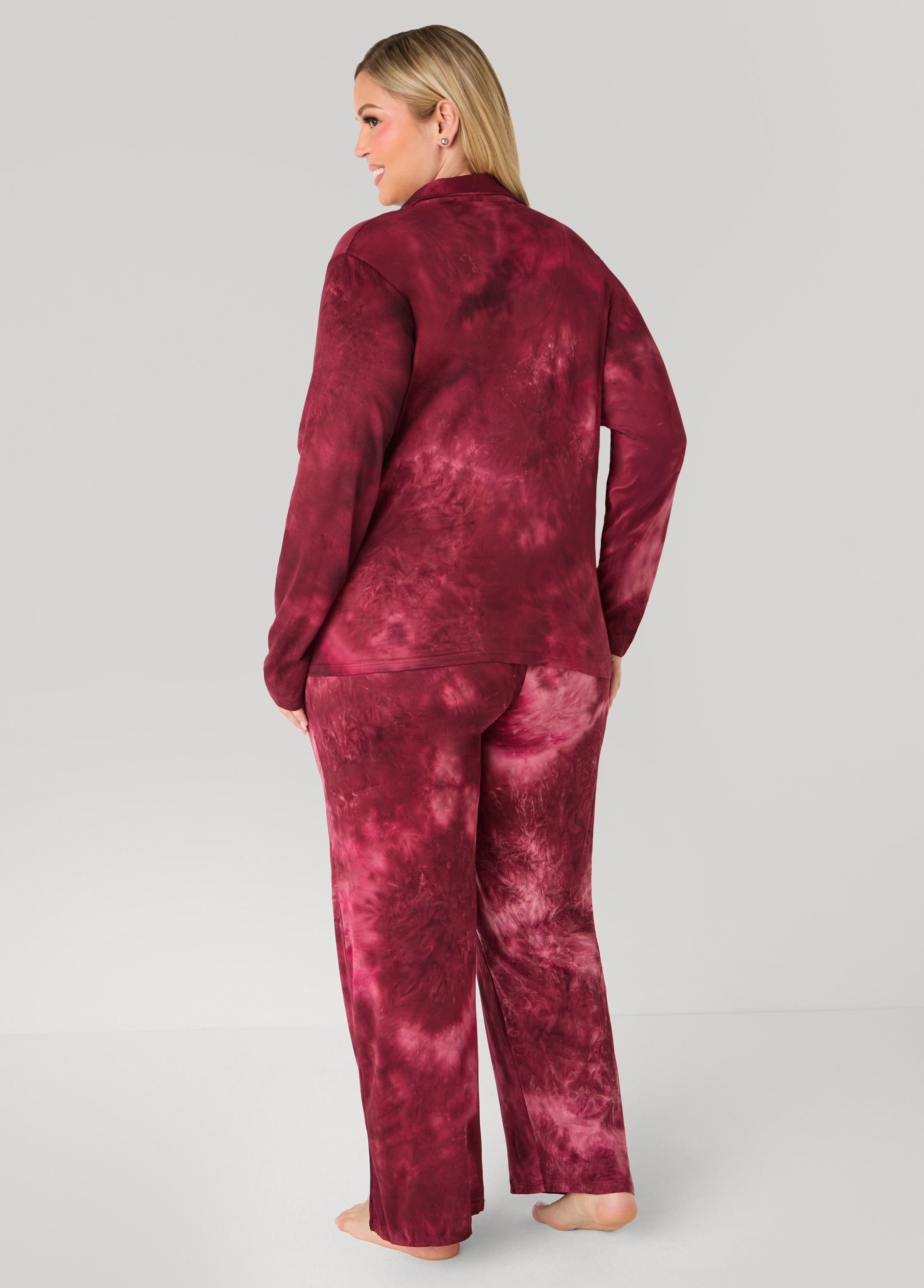 Unwind in vibrant style with the Emme Jordan tie-dyed jersey pajama set! Featuring a button-front top and matching pull-on pants, this cozy duo is all about effortless comfort. The faux drawstring and elasticized waistband add a playful touch to the relaxed fit. Perfect for lounging or catching up on beauty sleep, this set keeps your downtime as colorful as you are!