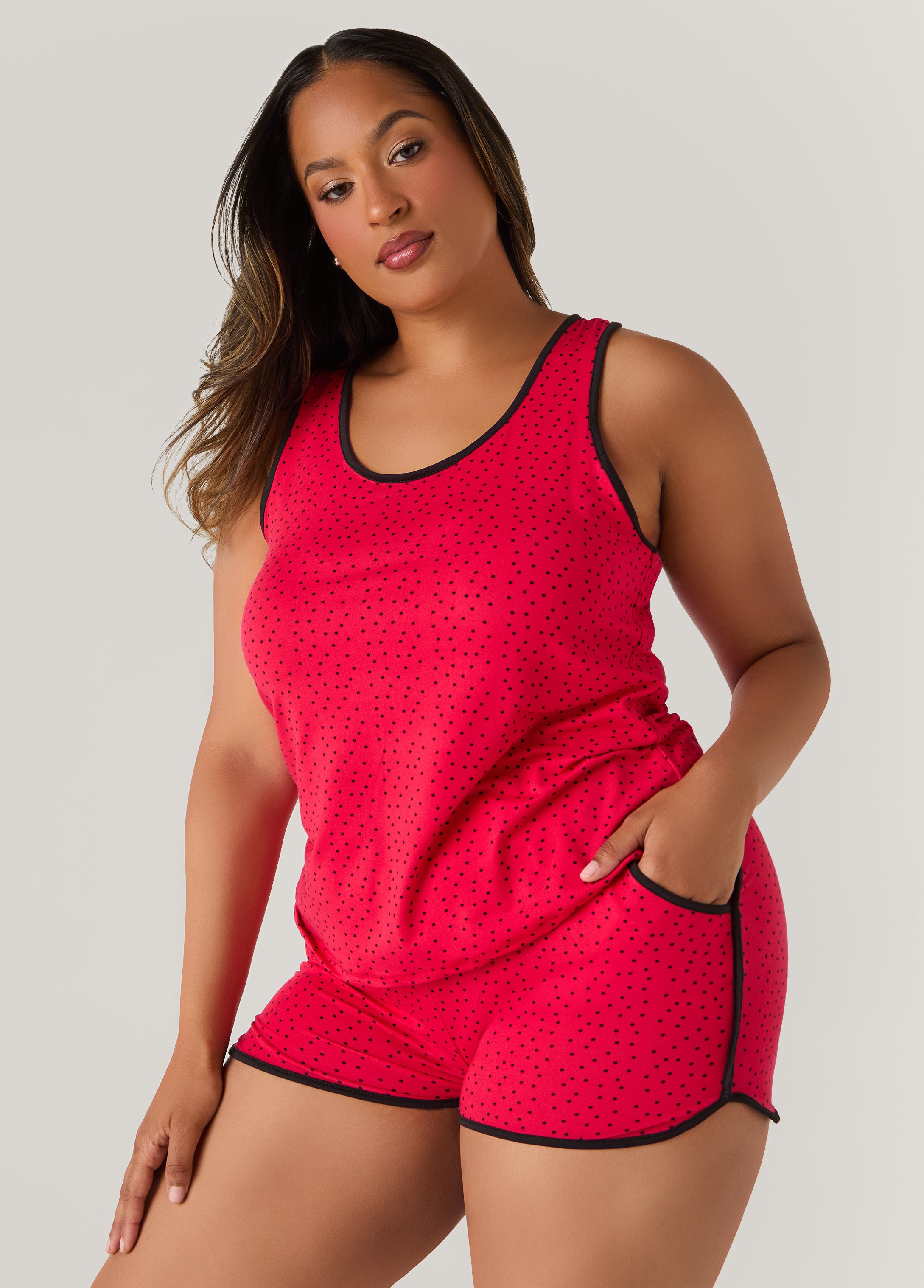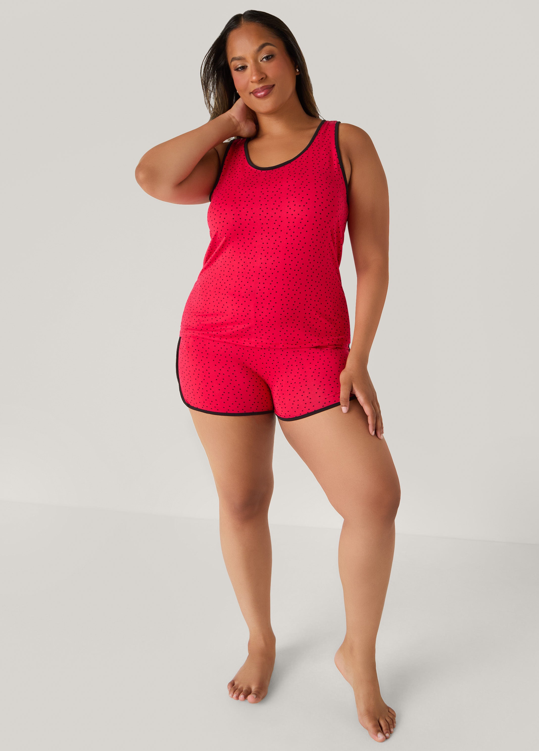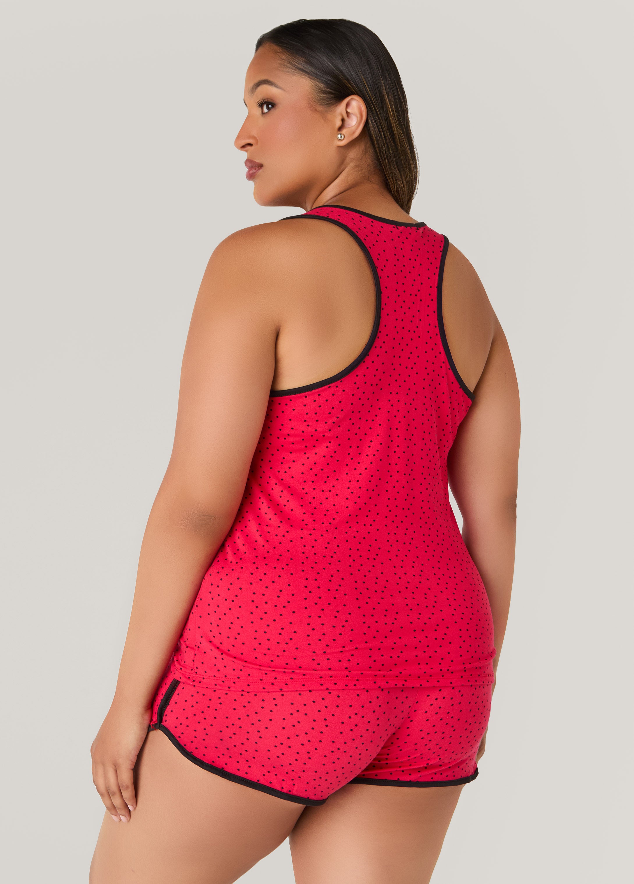 The Emme Jordan jersey set brings polka dots that play all night with a slip-on racerback tank and matching shorts finished with side pockets and a sweet bow at the waist.